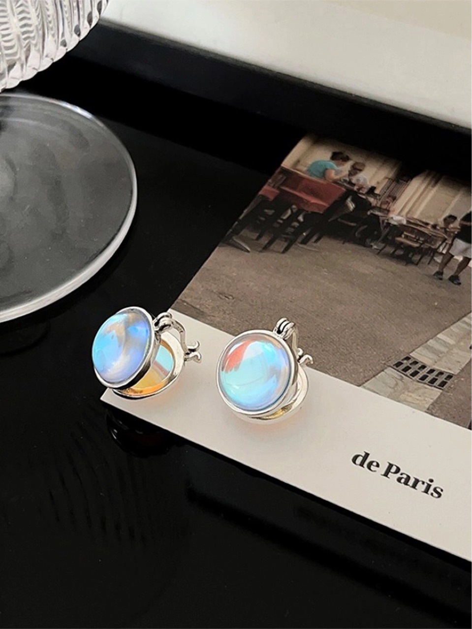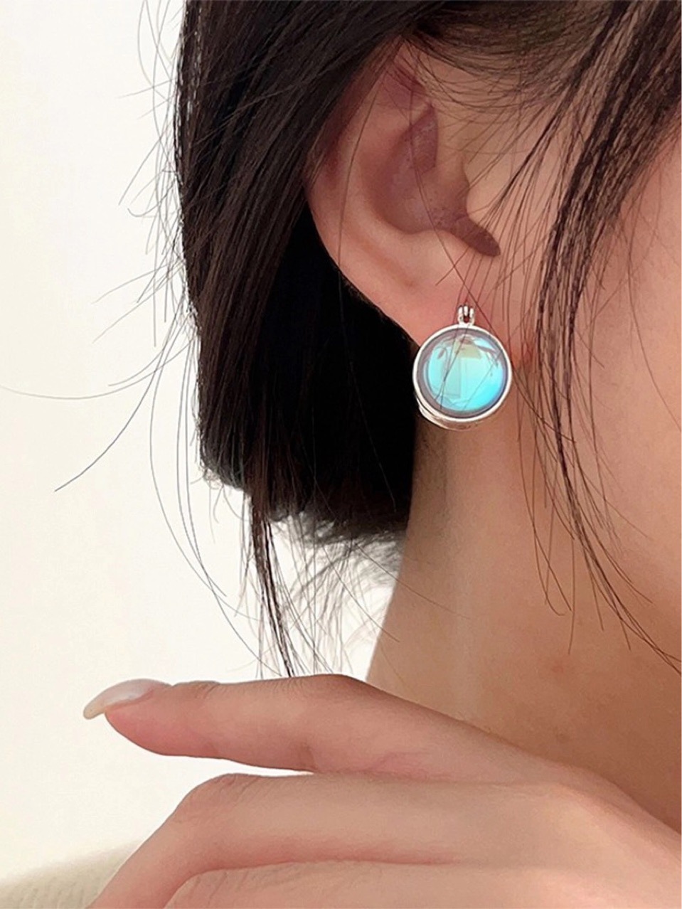 韩版S925纯银月光石耳环耳钉女夏轻奢小众优雅高级中性风高级超仙