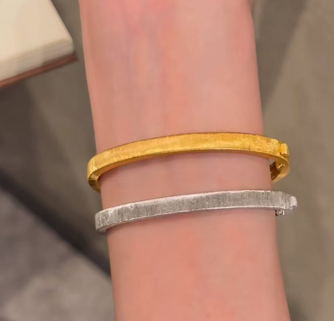 纯银S925拉丝工艺布家风素圈手镯轻奢高级感简约百搭气质手饰