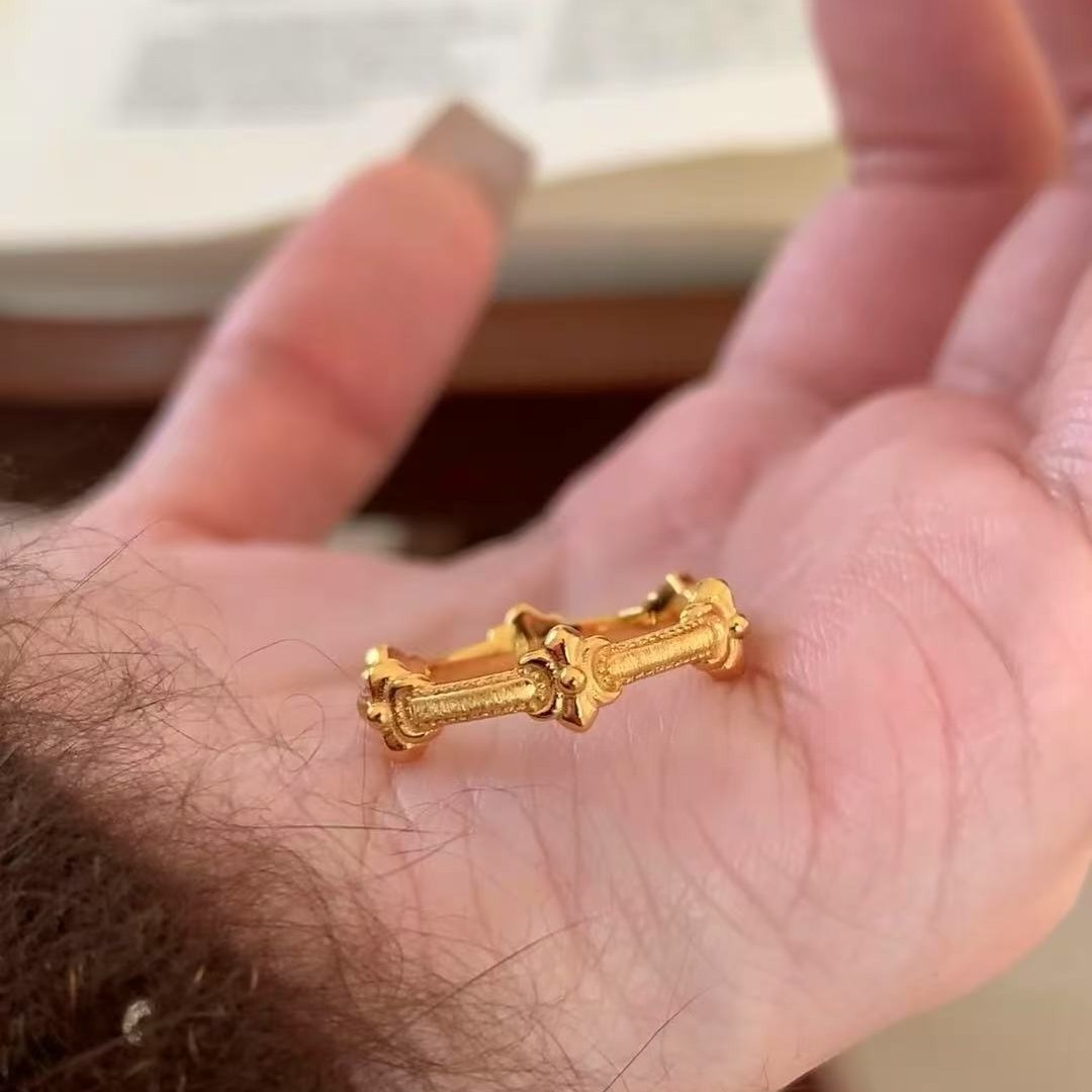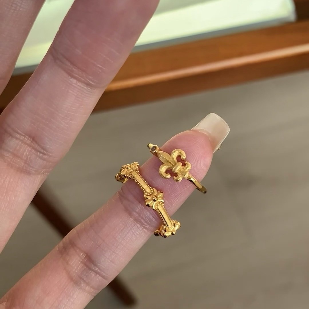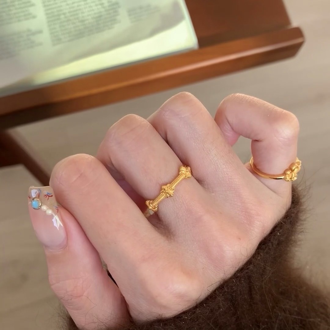 中古拉丝工艺高级感简约轻奢尾鸢花戒指叠戴小众设计