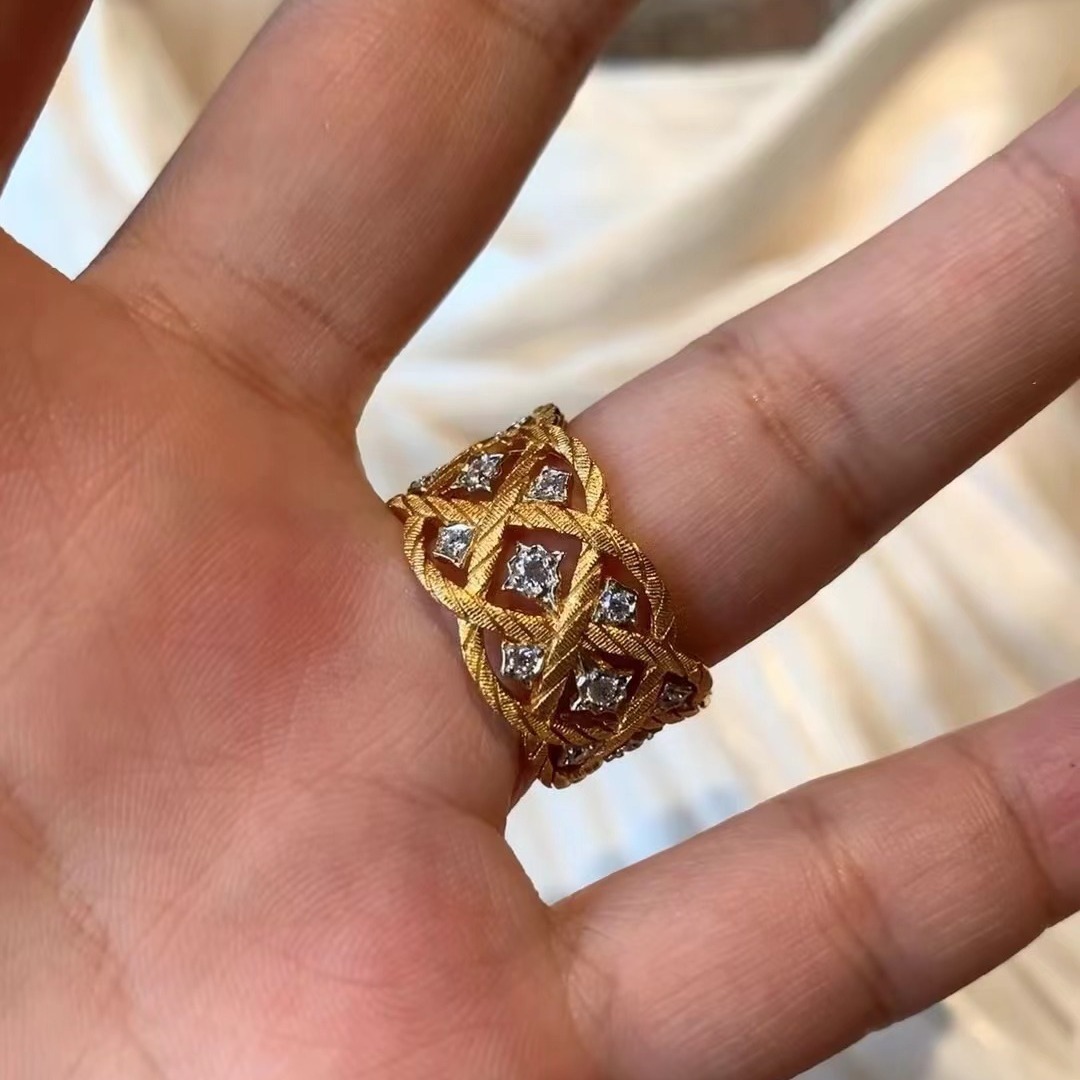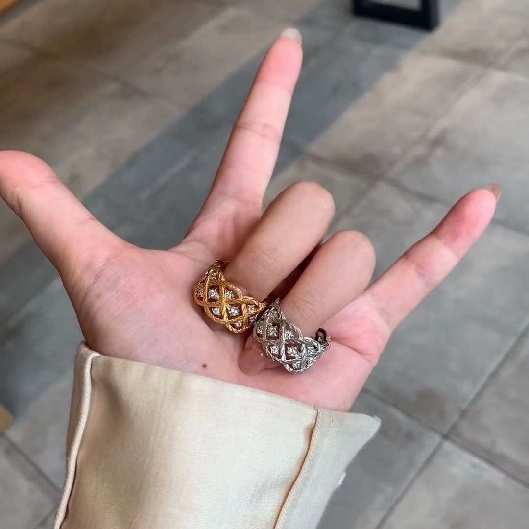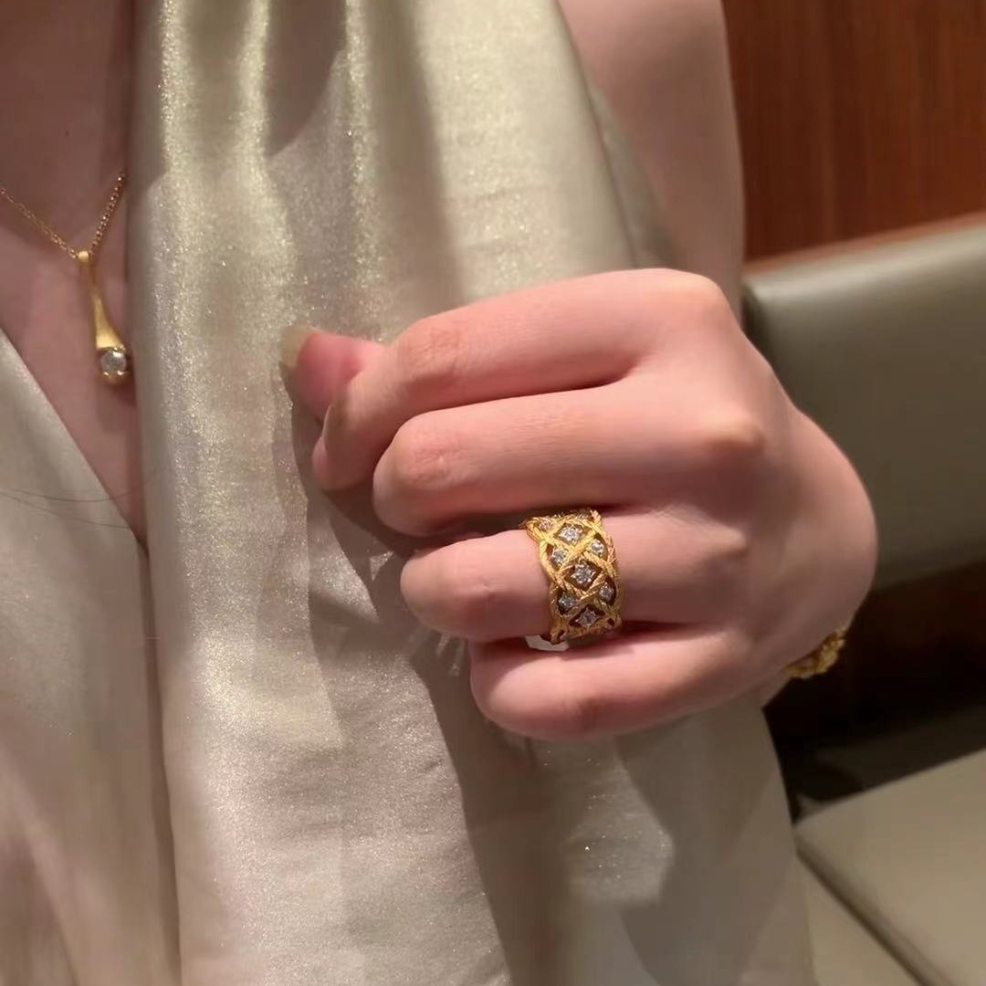 意大利工艺中古风轻奢高级珠宝感高碳钻拉丝工艺菱格戒指