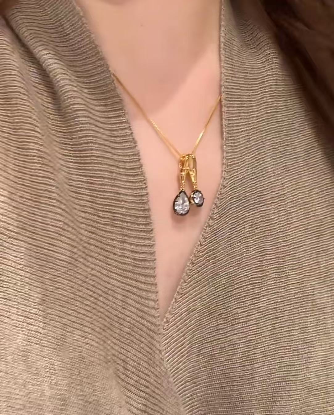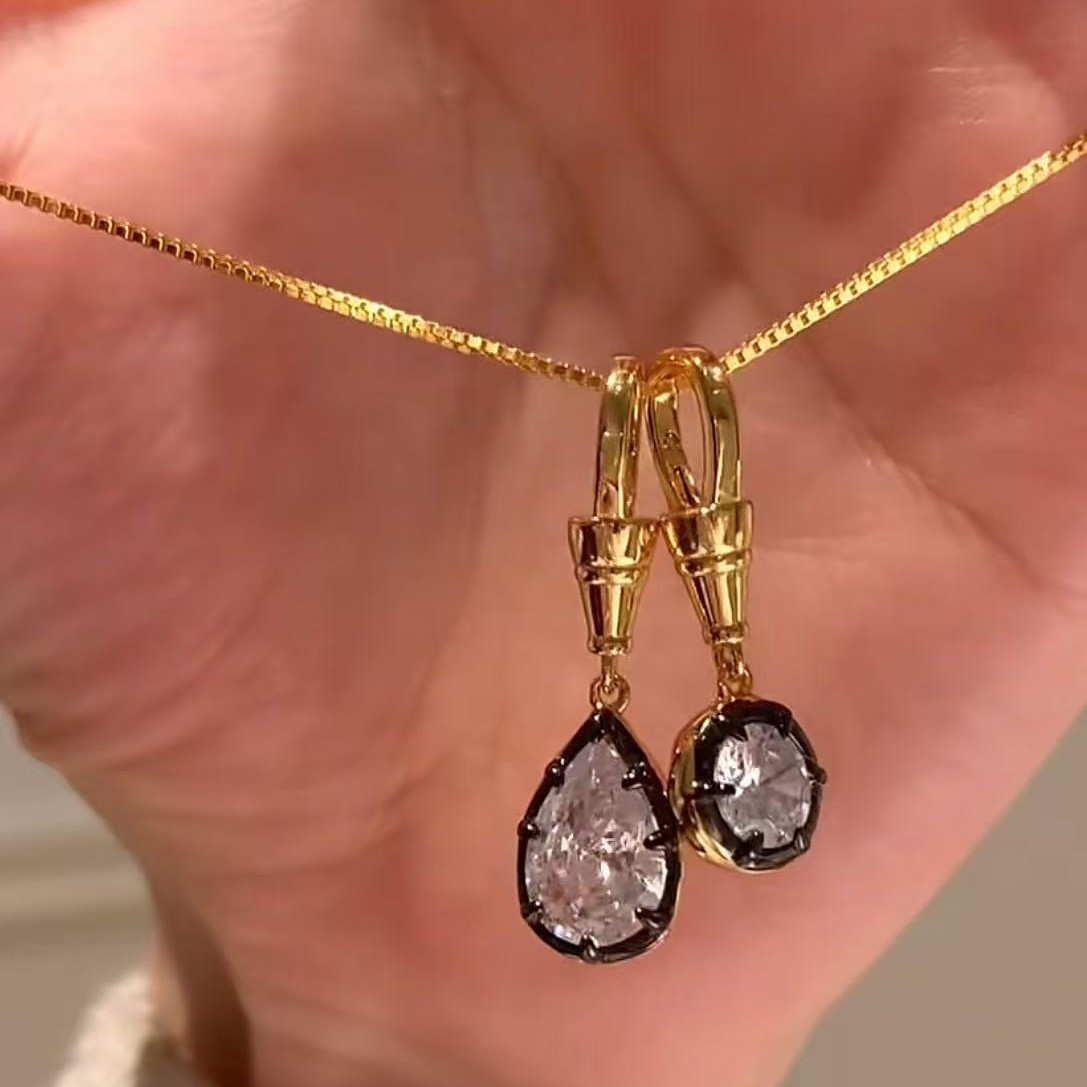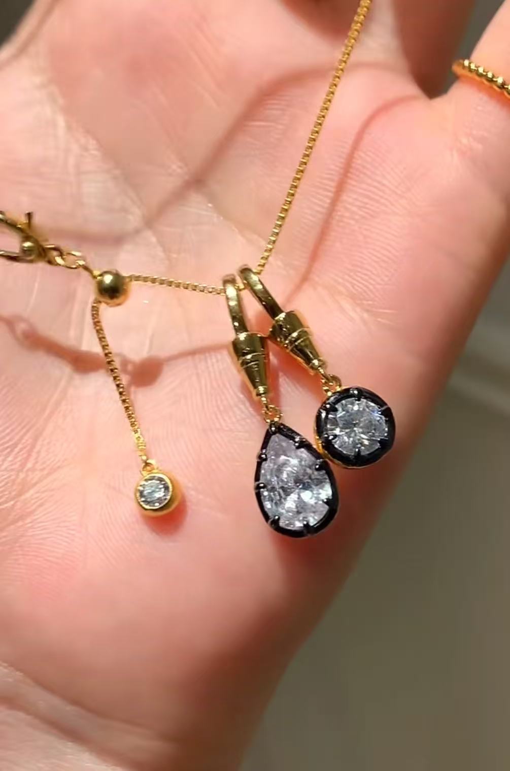 纯银S925轻奢珠宝黑金万能扣水滴泡泡吊坠项链超闪高级精致锁骨链