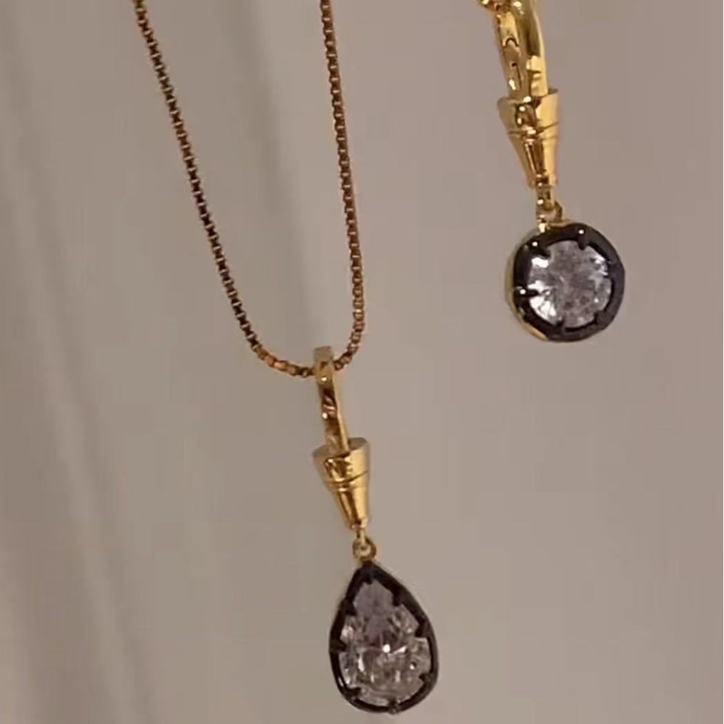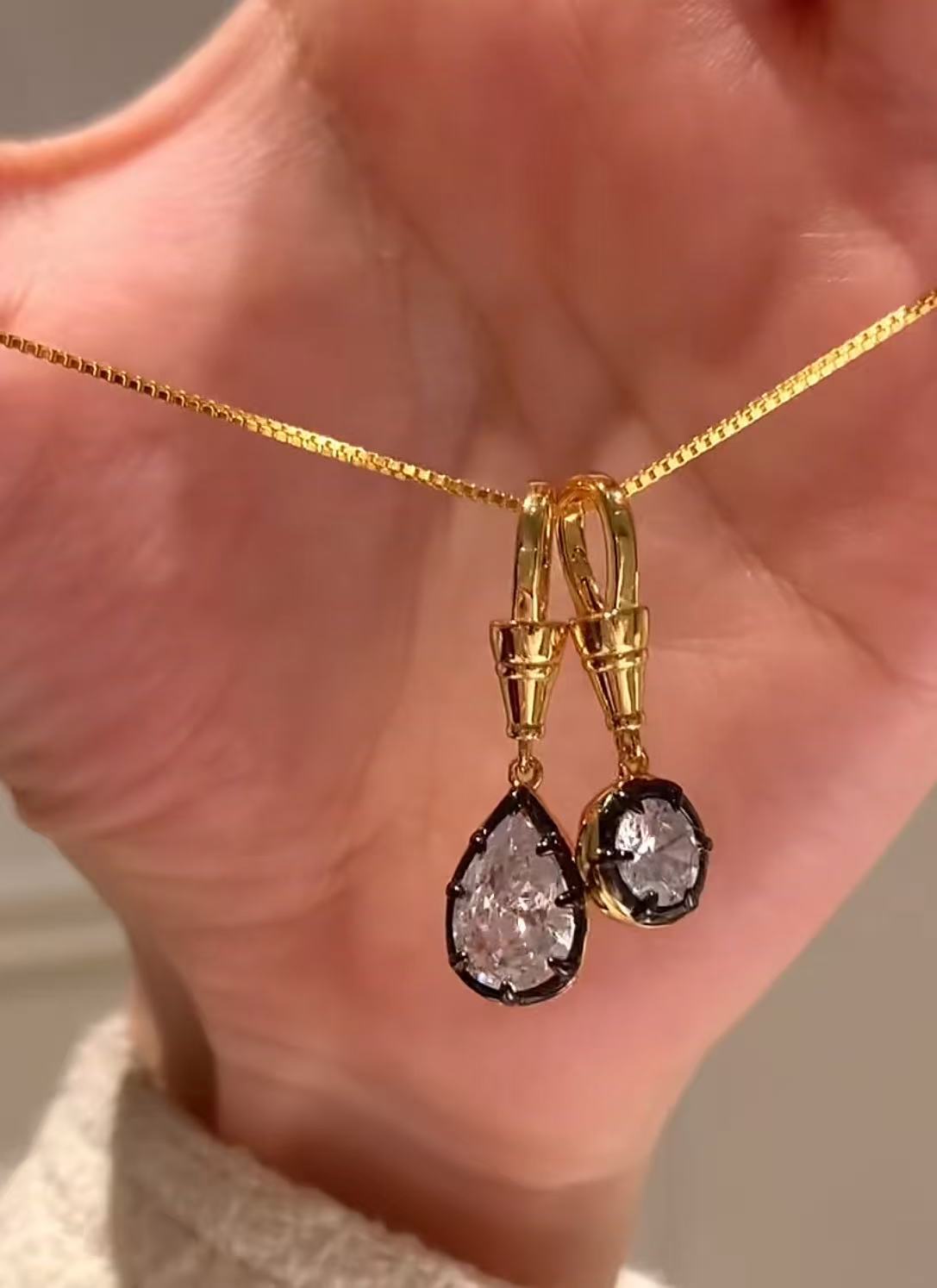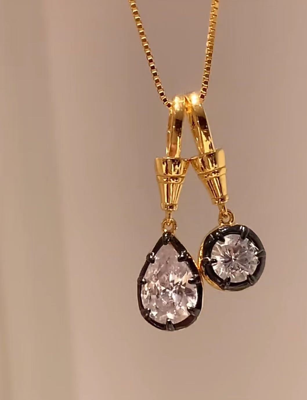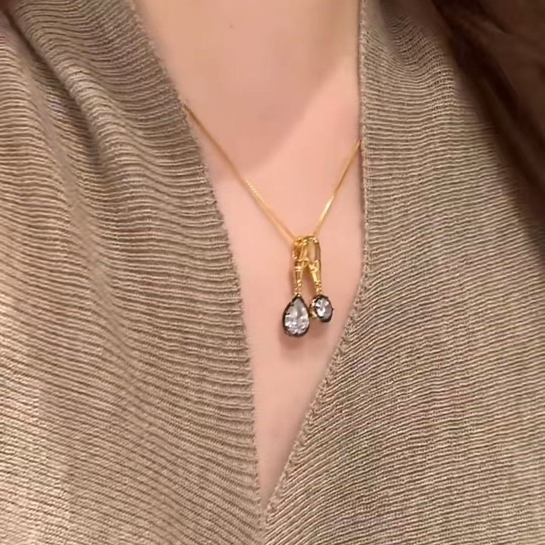 纯银S925轻奢珠宝黑金万能扣水滴泡泡吊坠项链超闪高级精致锁骨链
