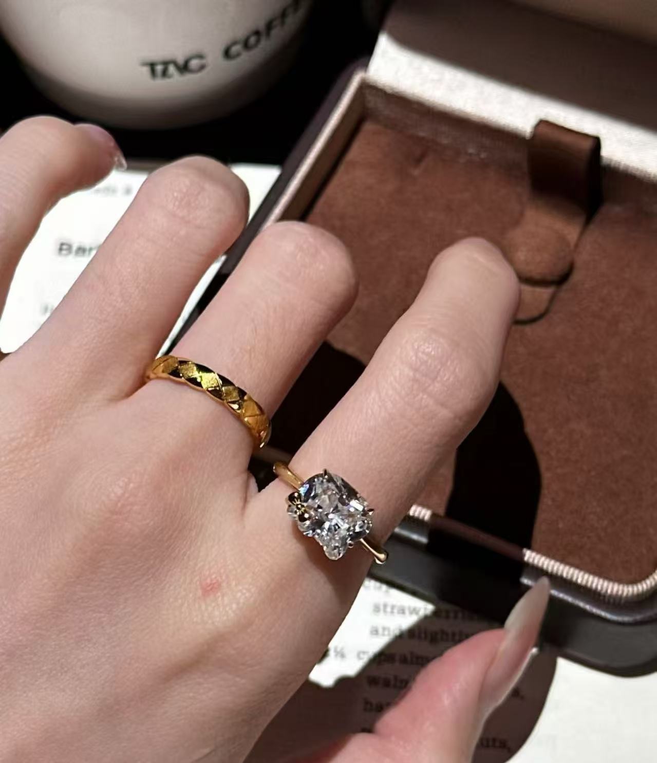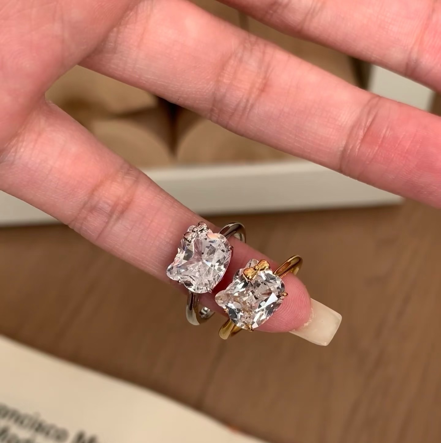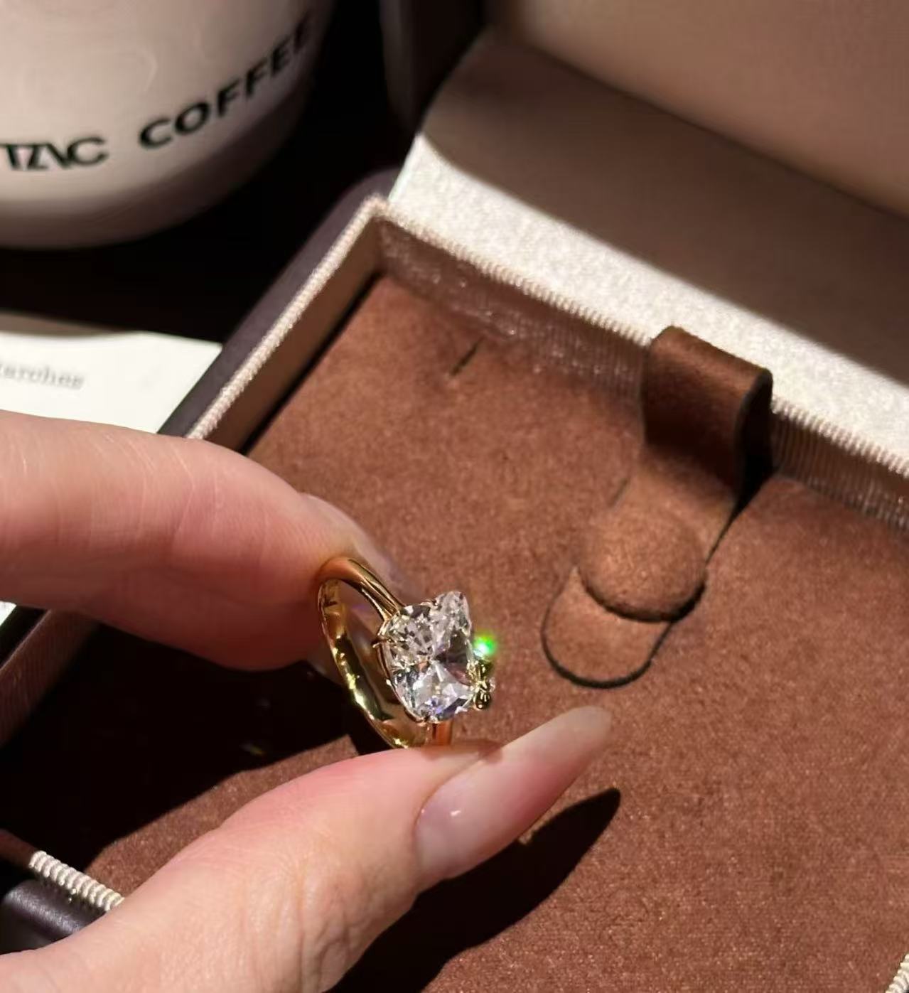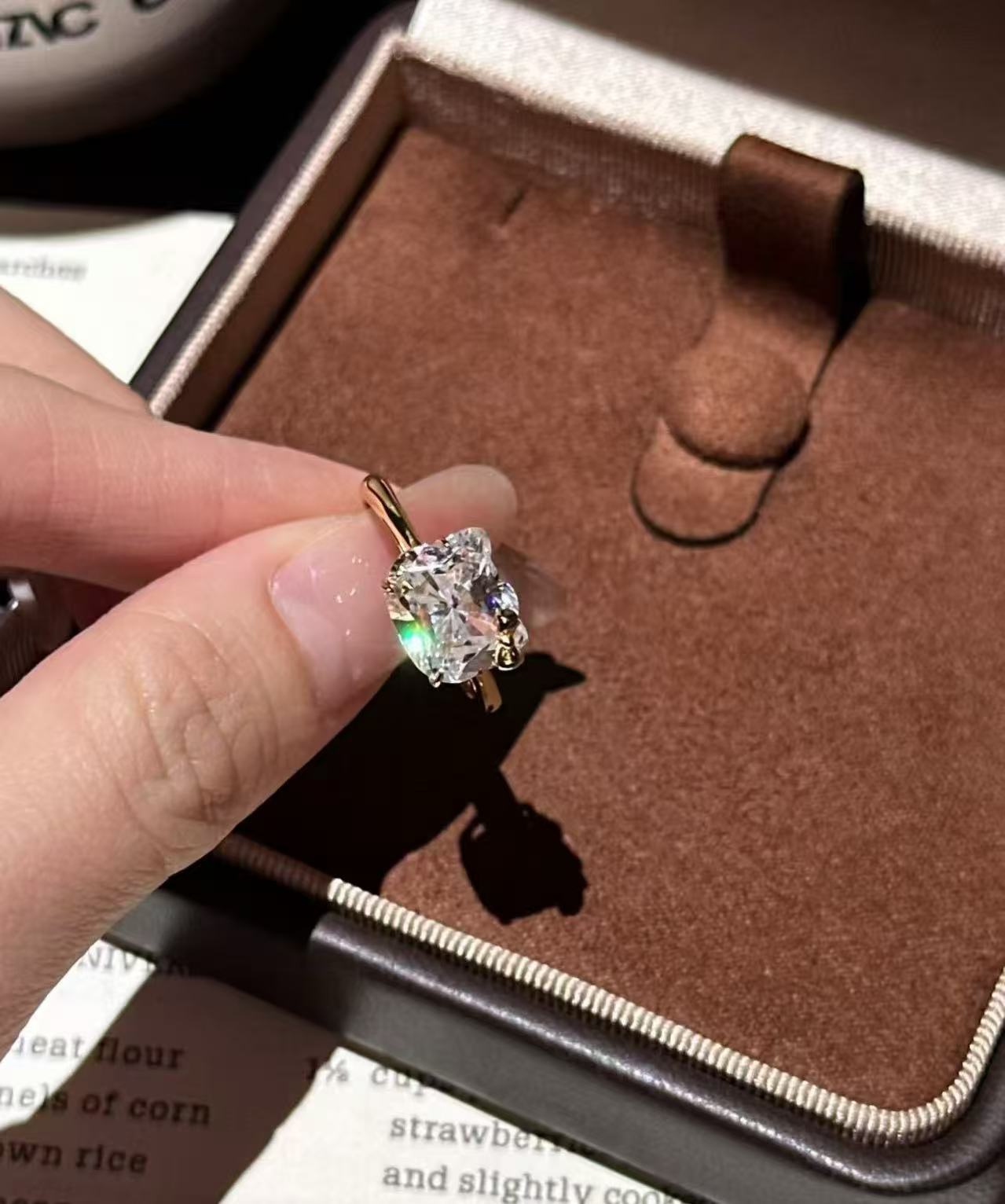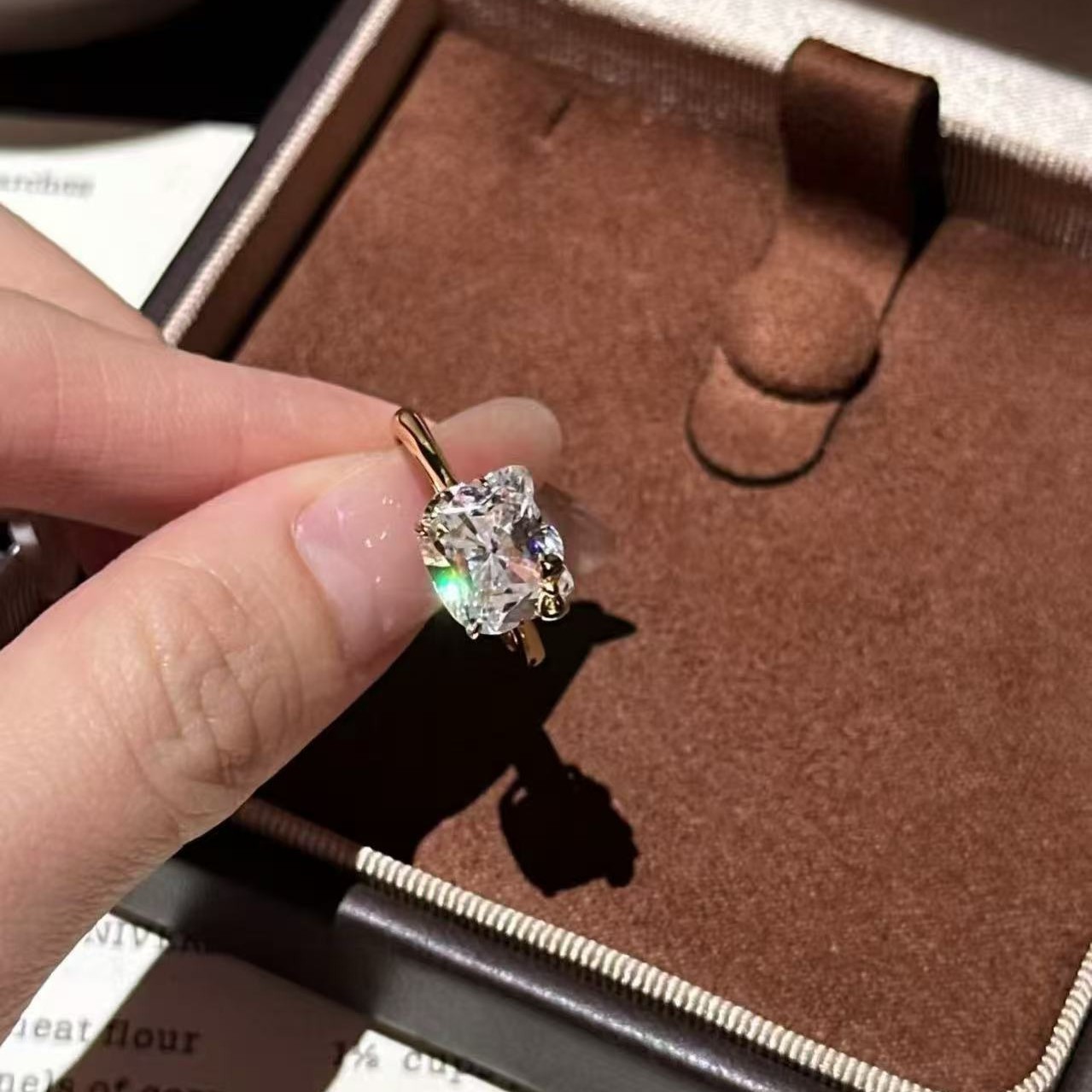 纯银S925轻奢超闪Kitty猫高碳钻戒指高级感精致甜美可爱气质指环