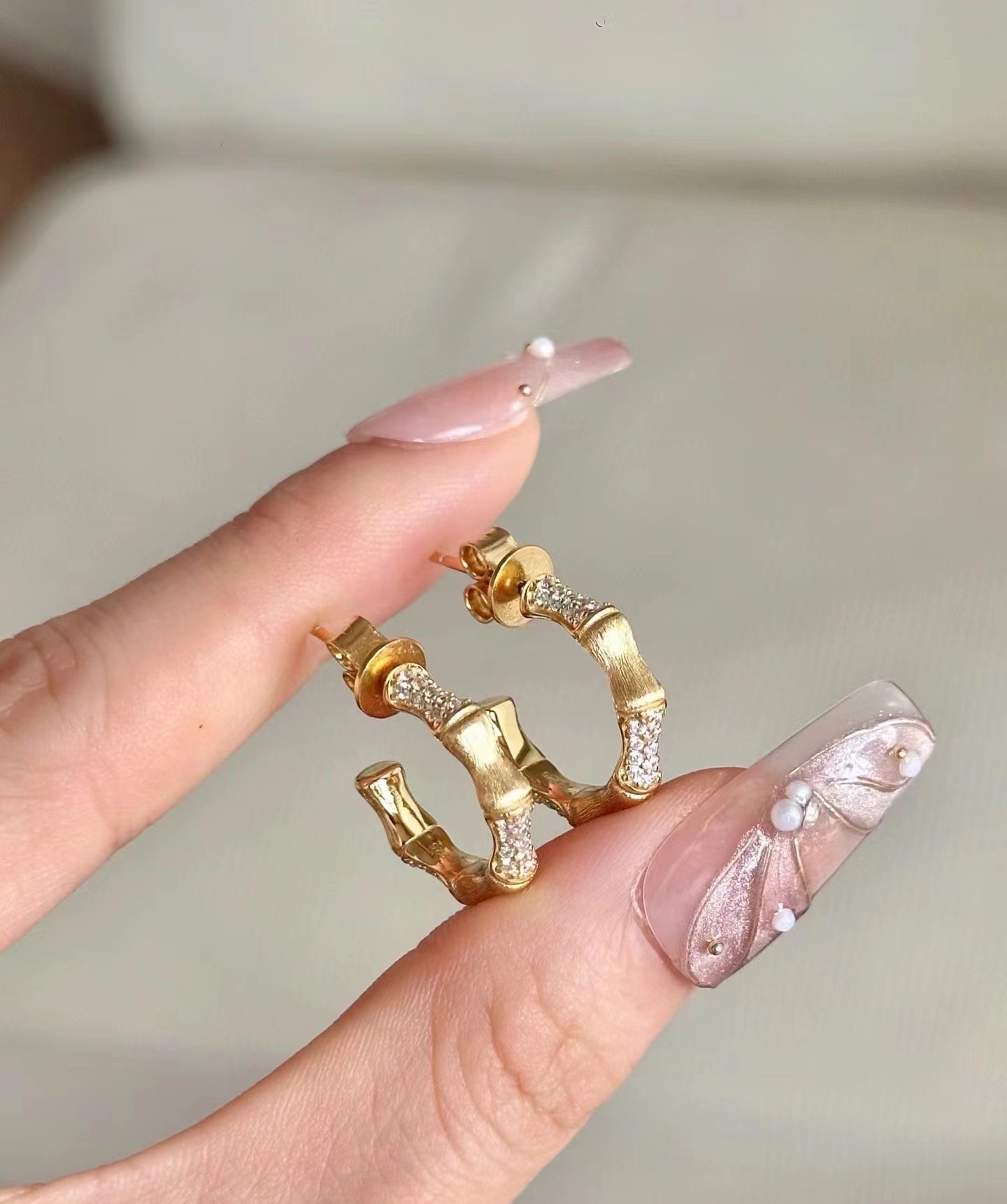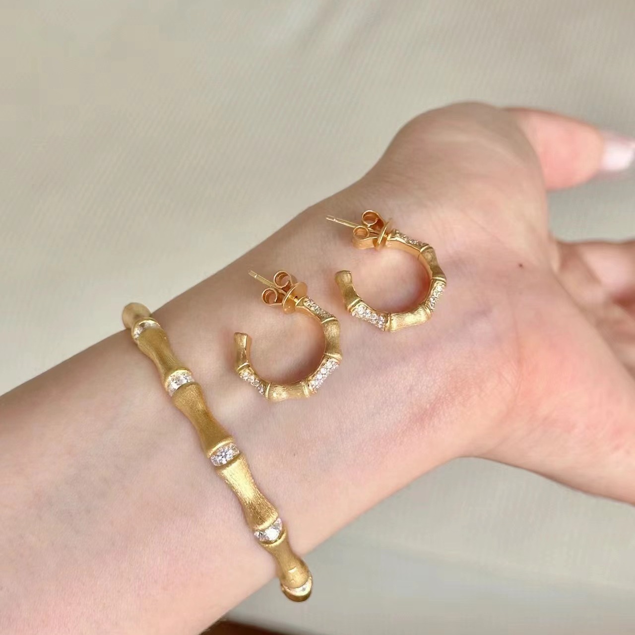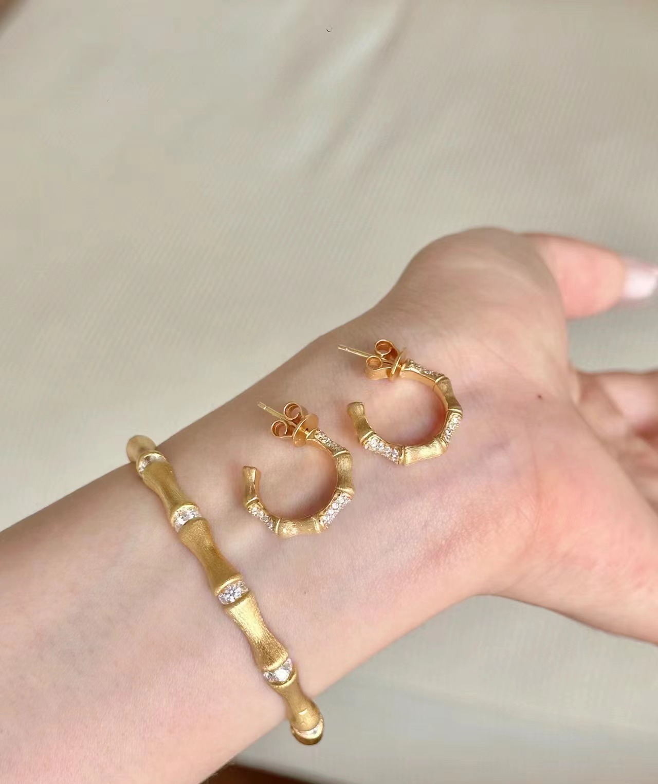 意大利中古拉丝轻奢高级感珠宝925纯银拉丝工艺锻面竹节耳环耳钉