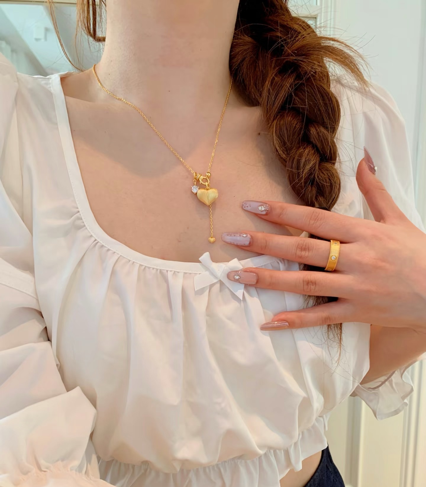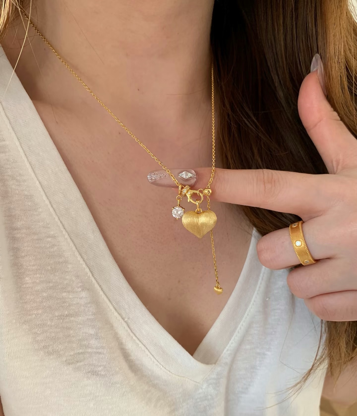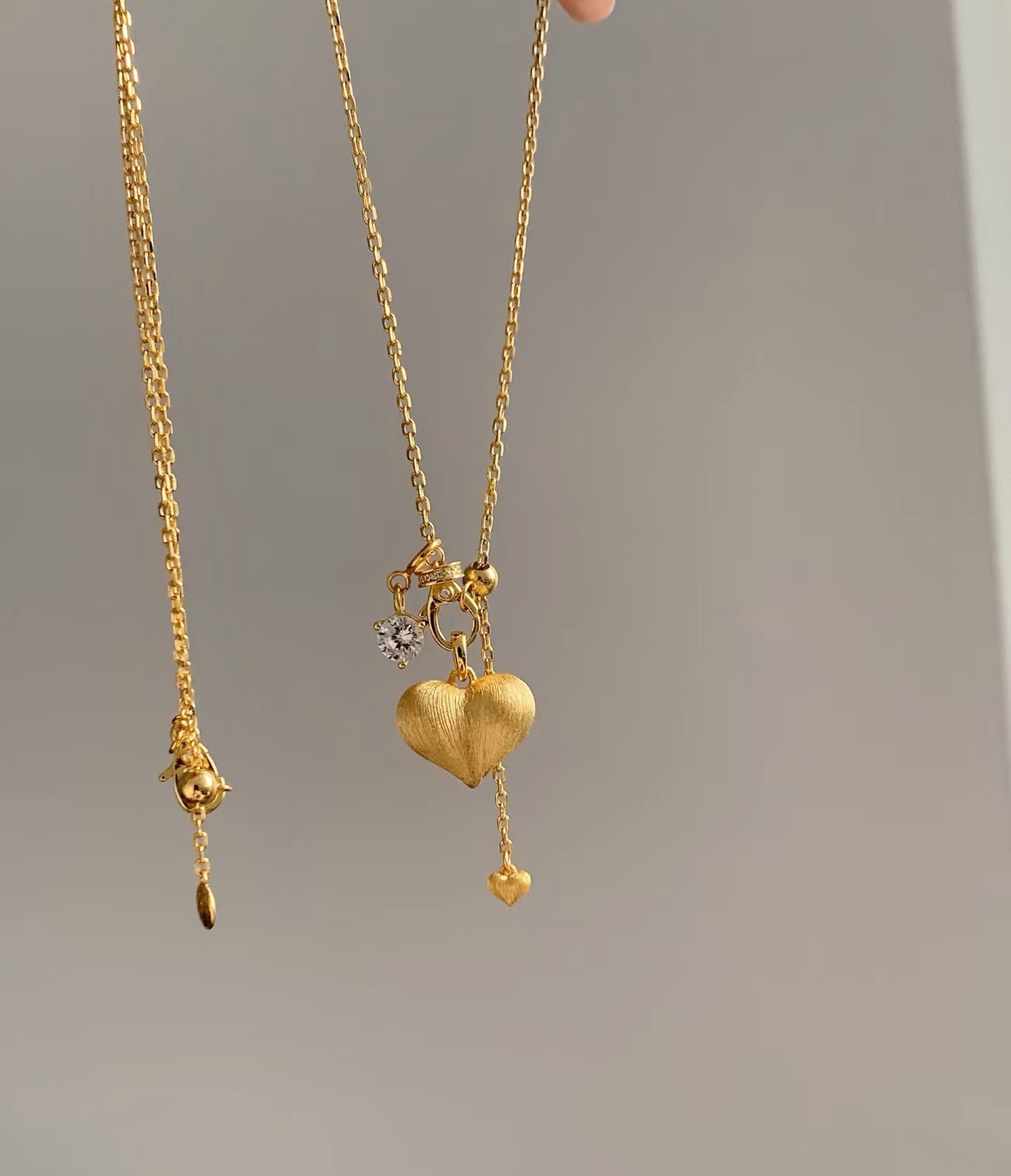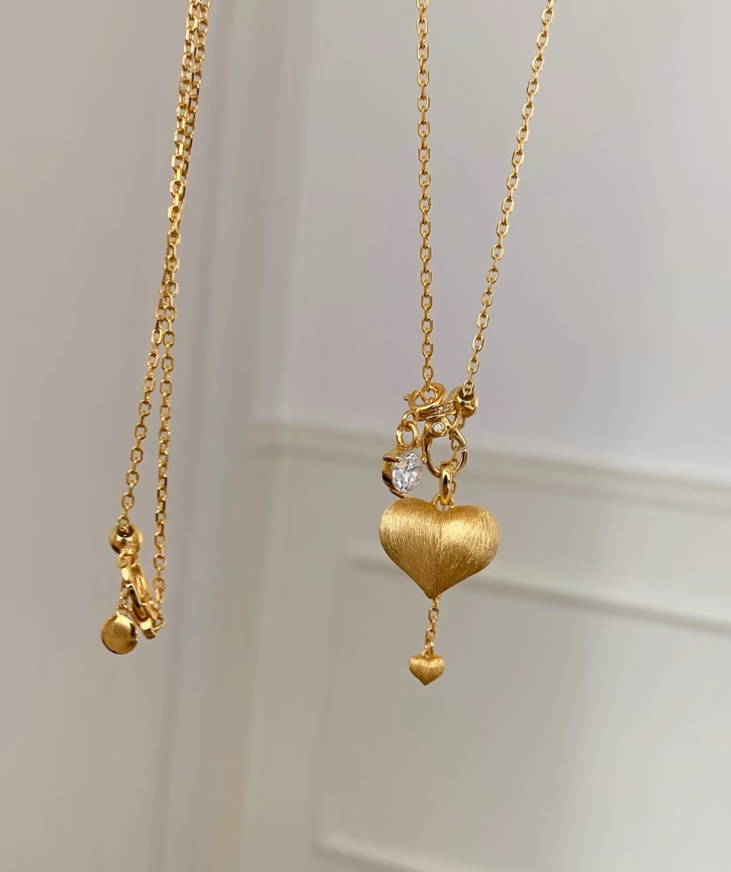 纯银S925拉丝工艺屁桃项链小众轻奢闪钻拉丝爱心项链女ins超仙