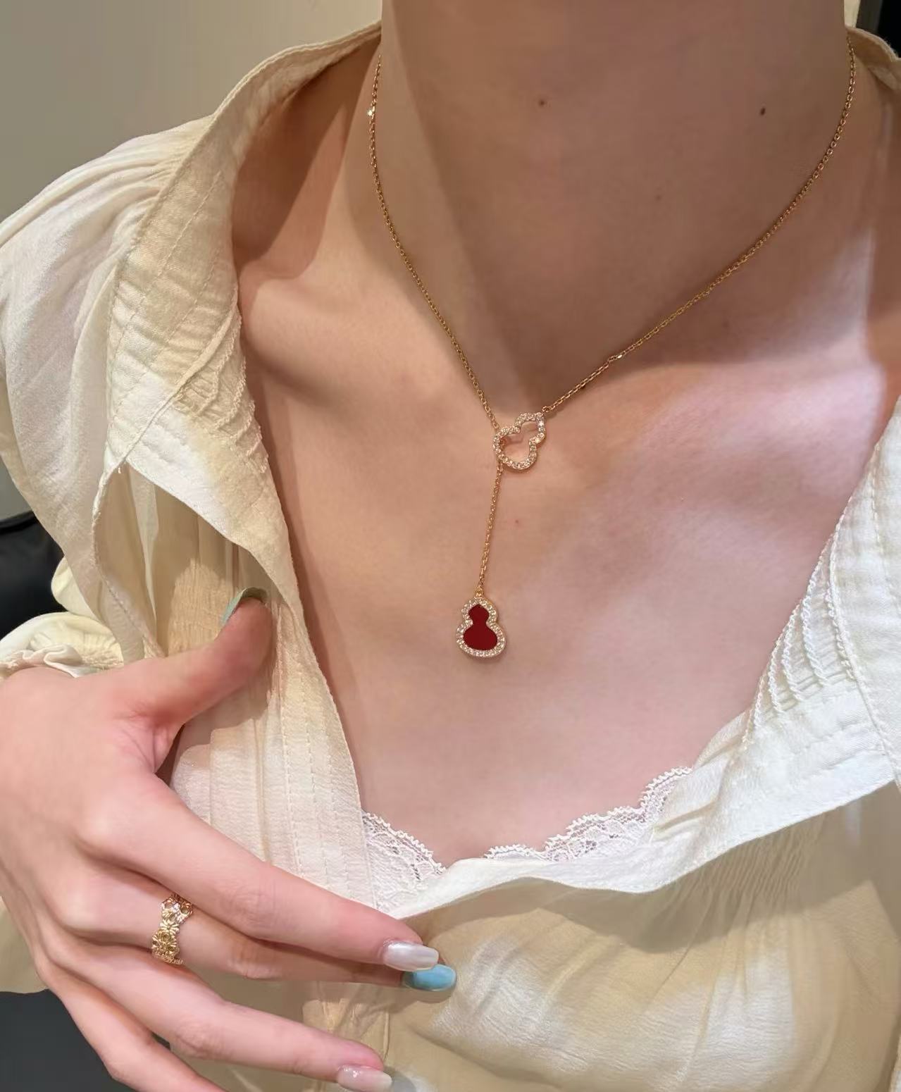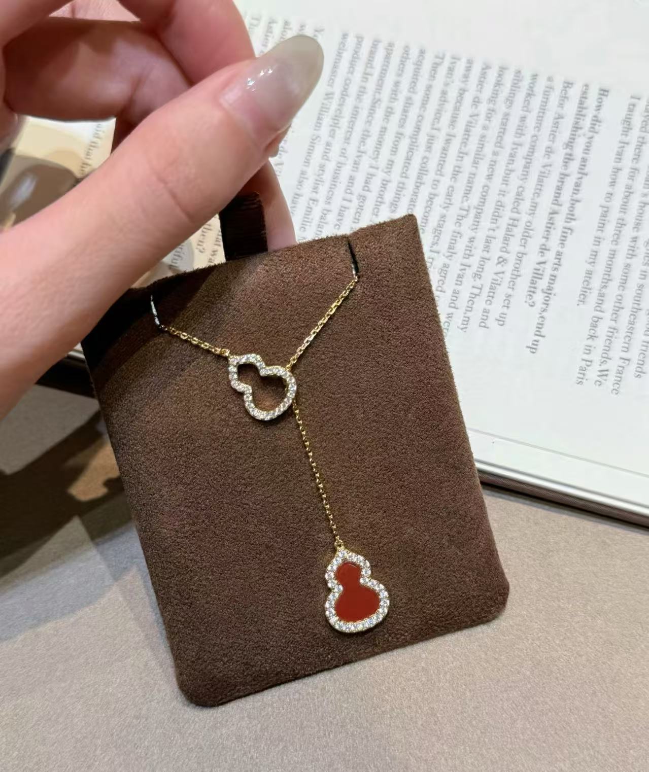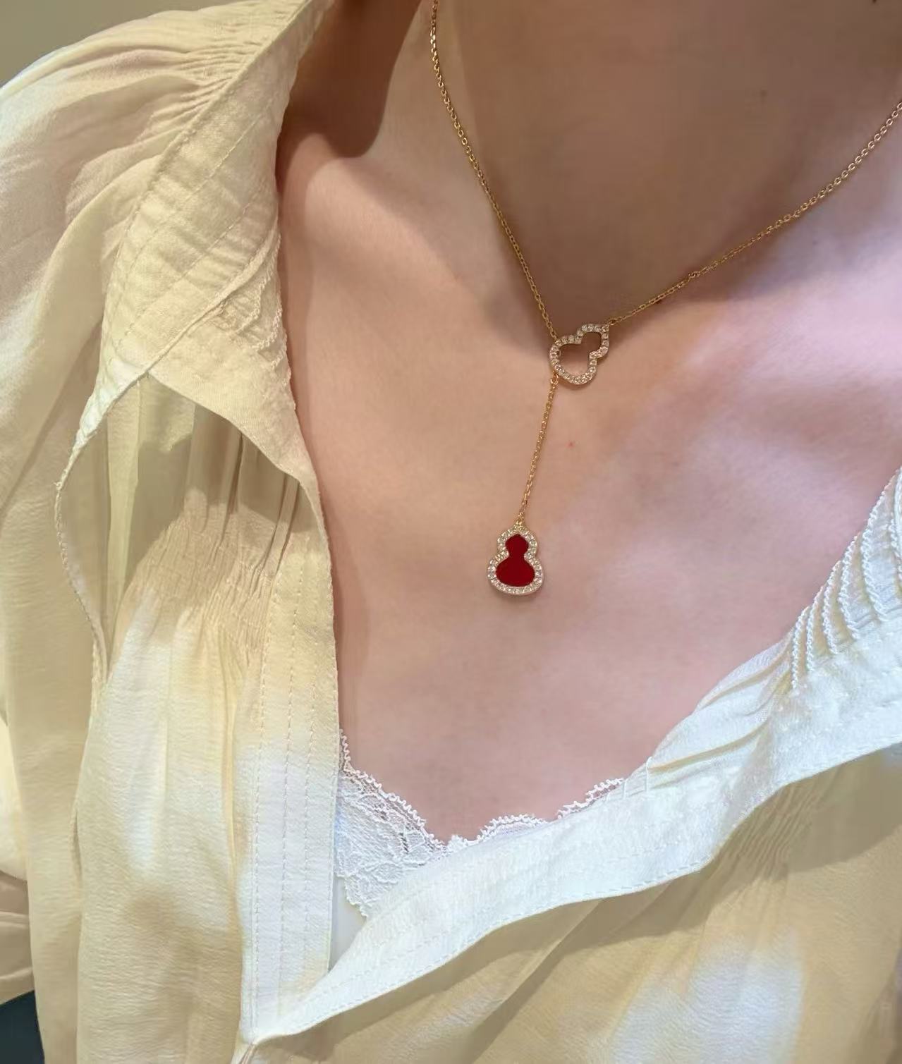 S925纯银天然红玉髓福禄项链轻奢小众时尚设计感锁骨链简约百搭
