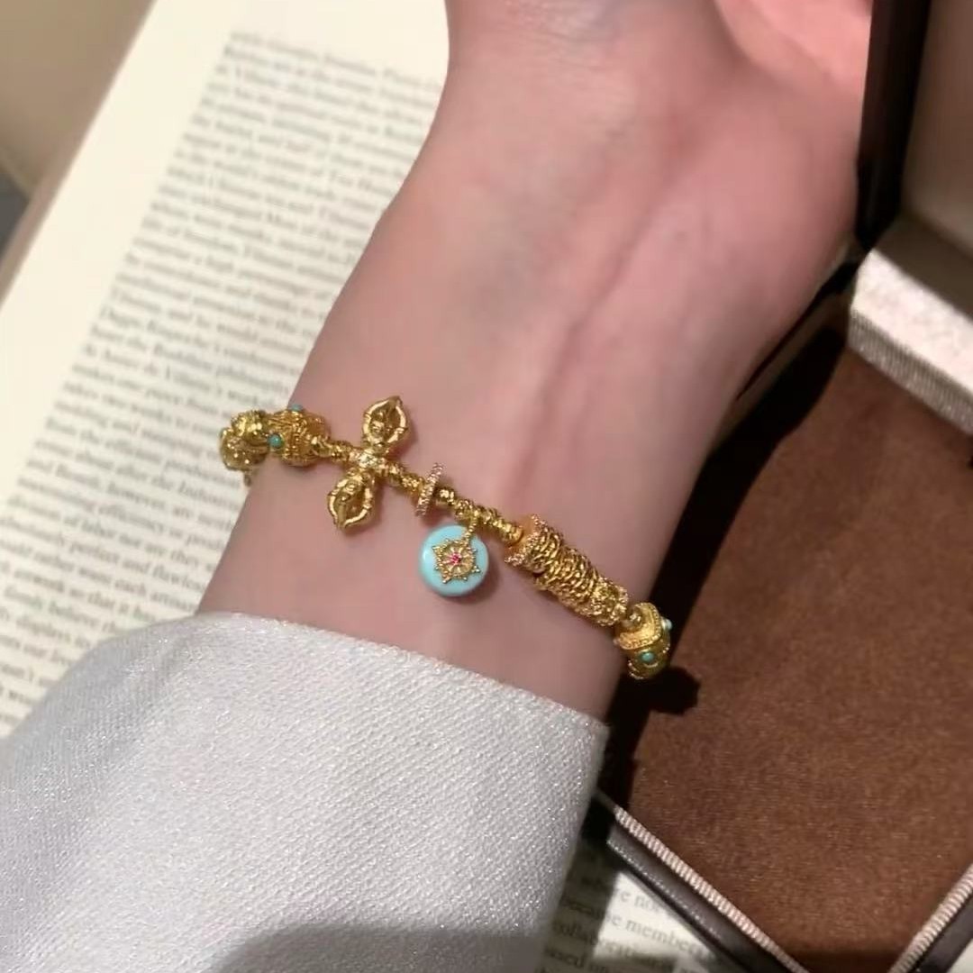 蒂夫尼蓝松石盘缠手链奢华古法金刚杵s925纯银镀18k金