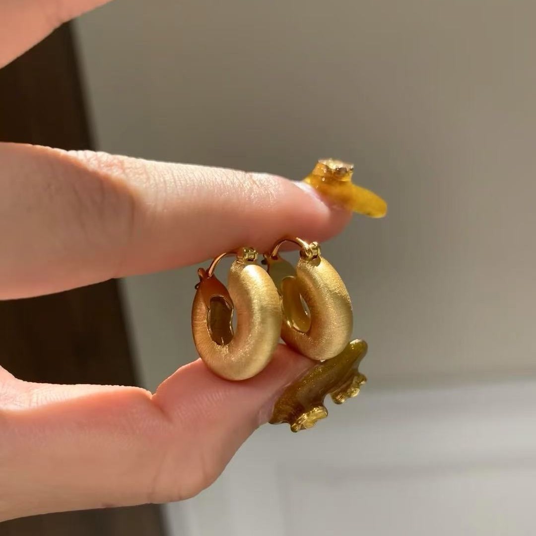 中古风拉丝工艺贝果耳环纯银s925轻奢高级百搭