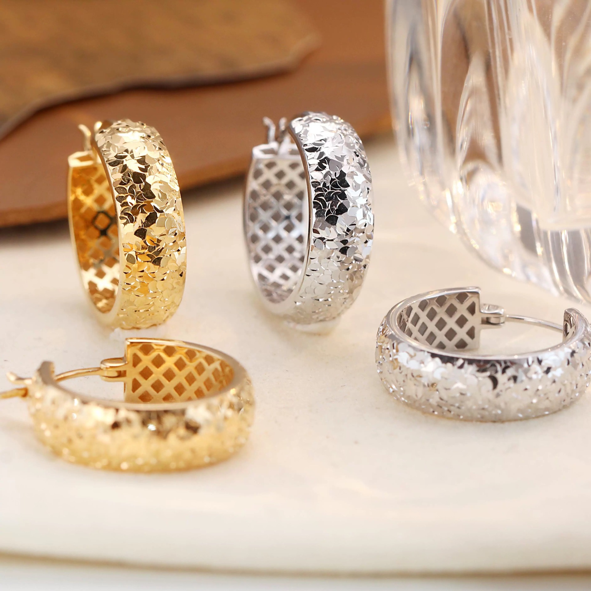 纯银s925CNC工艺碎冰冰耳圈冷淡极简风百搭
