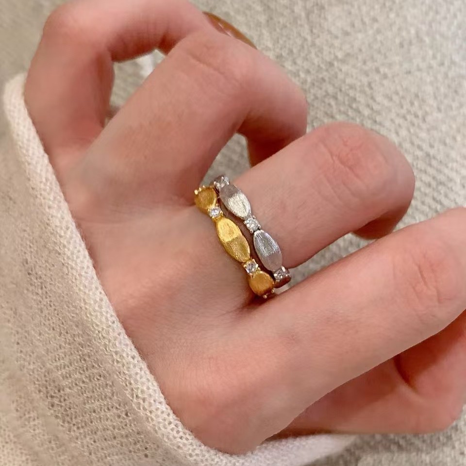 意大利中古拉丝轻奢高级感珠宝925纯银拉丝工艺锻面戒指