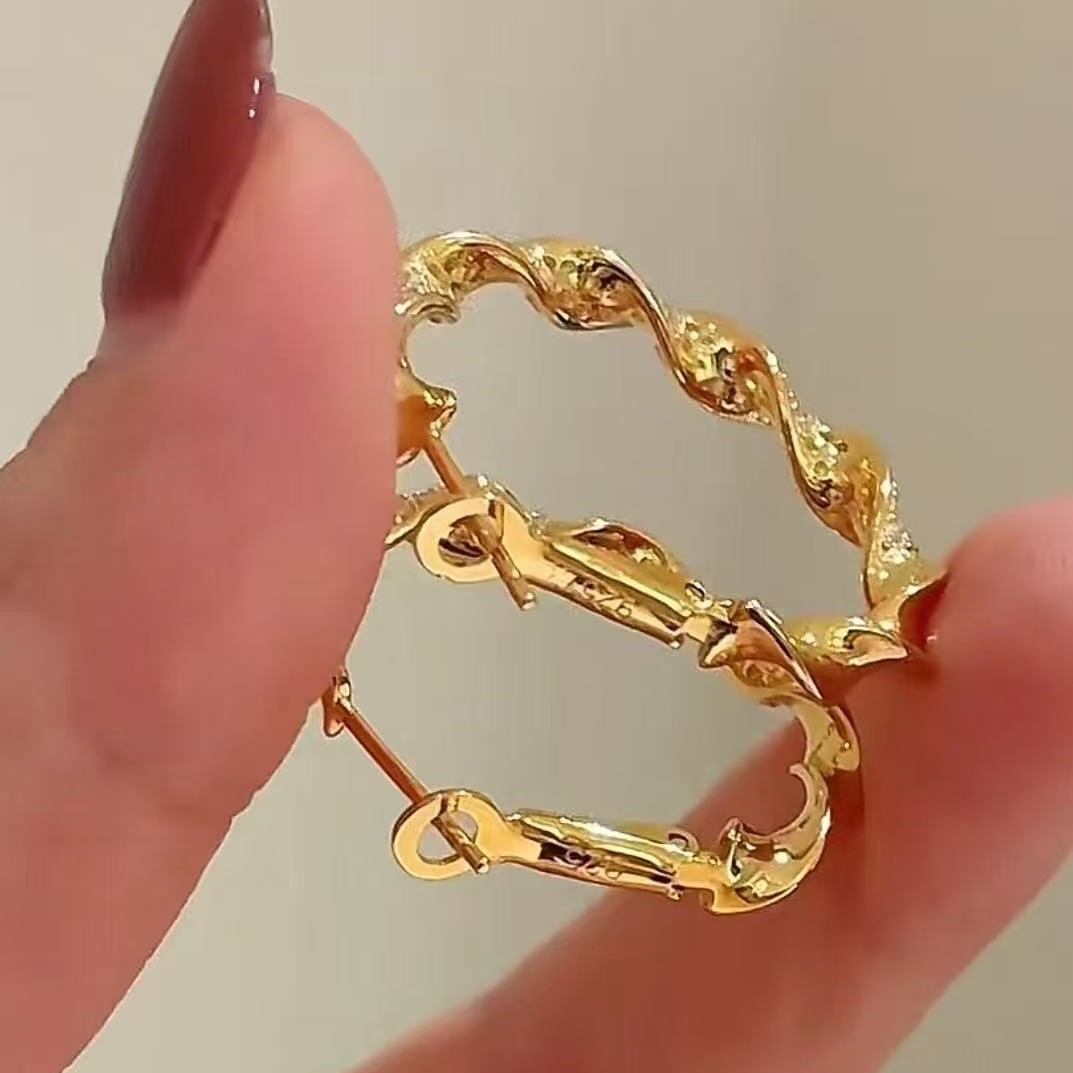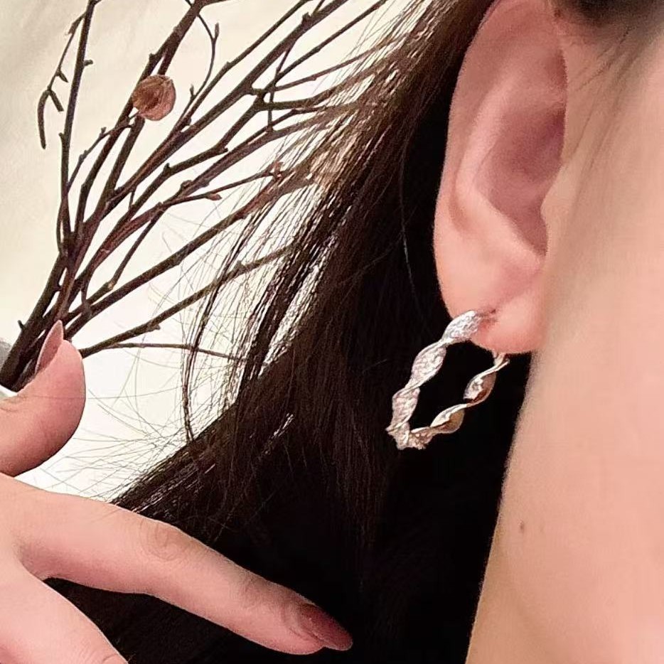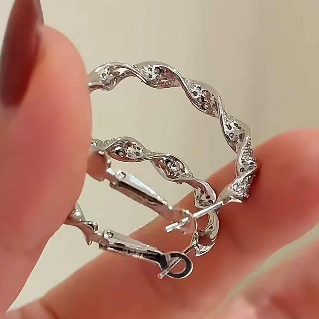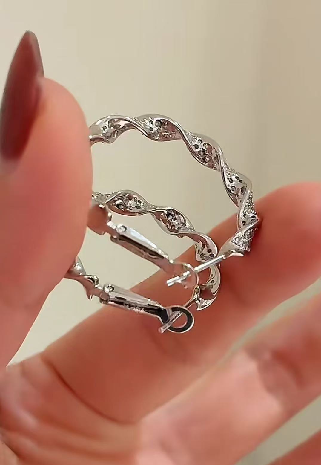 纯银S925意大利工艺扭纹高碳钻大耳圈轻奢复古扭纹设计感优雅耳饰