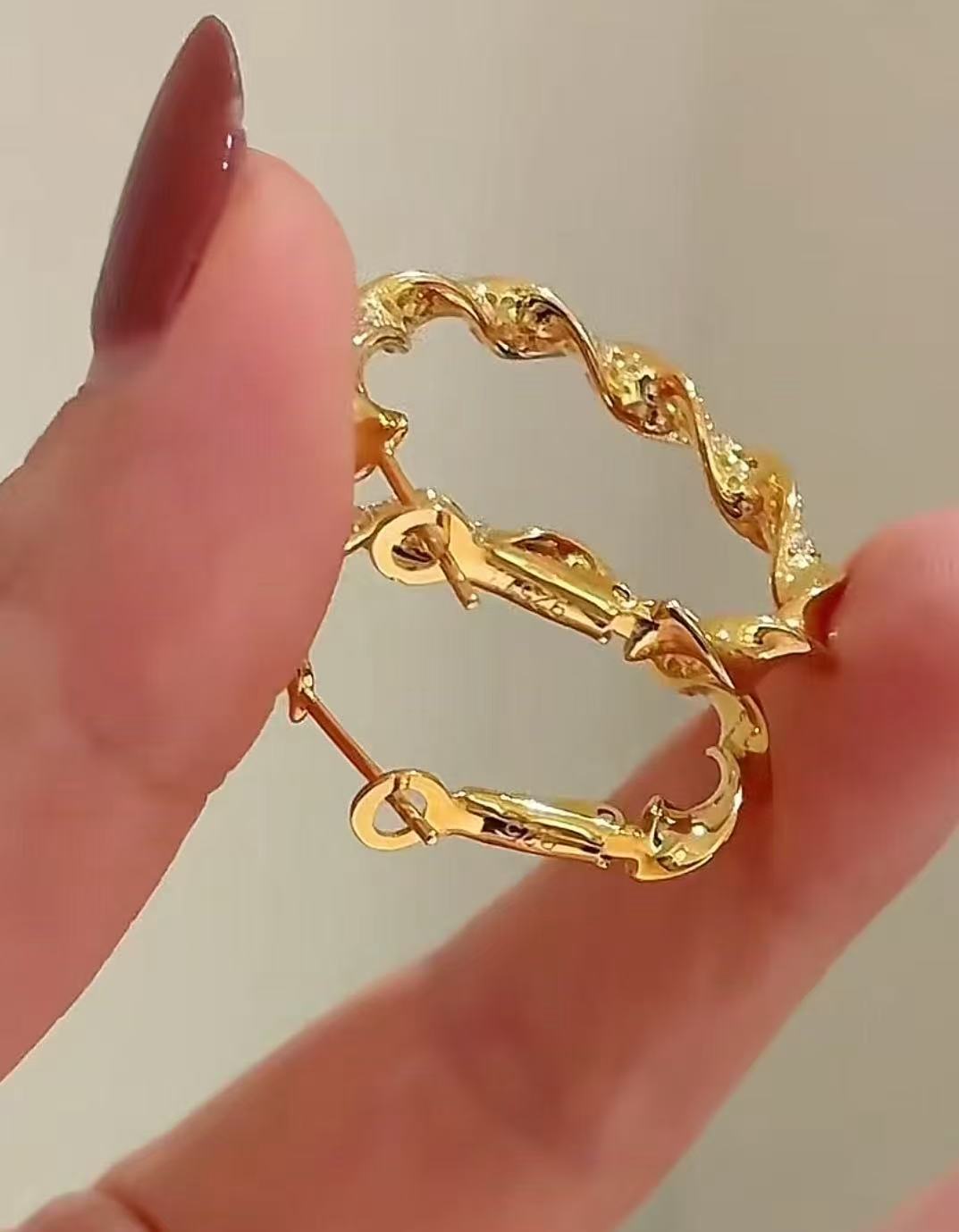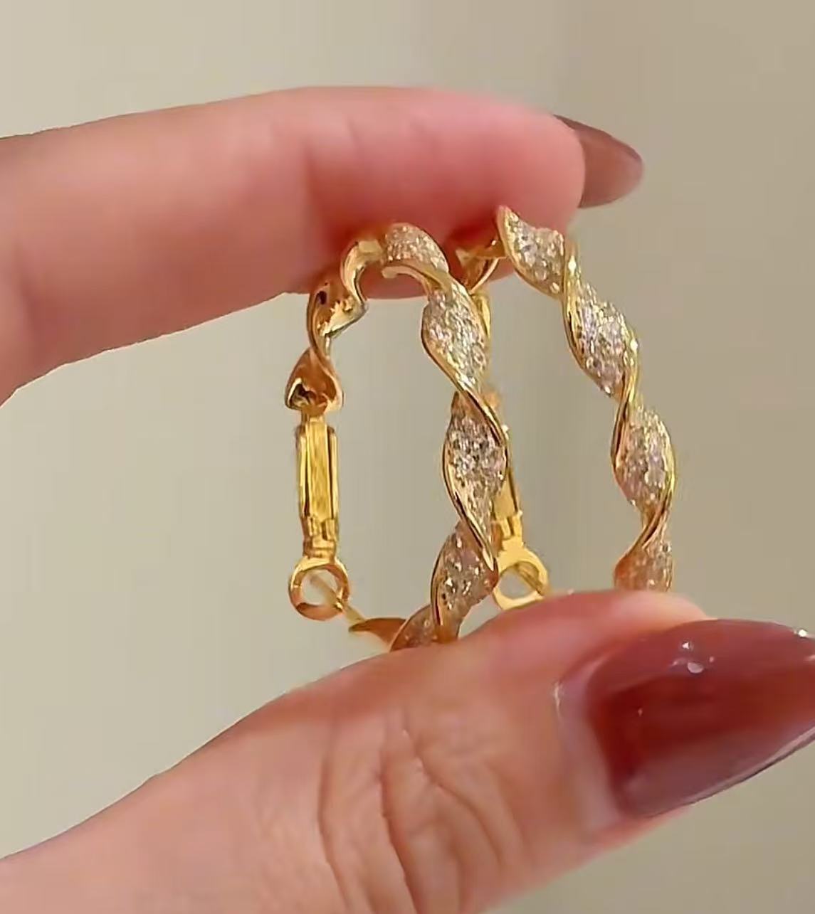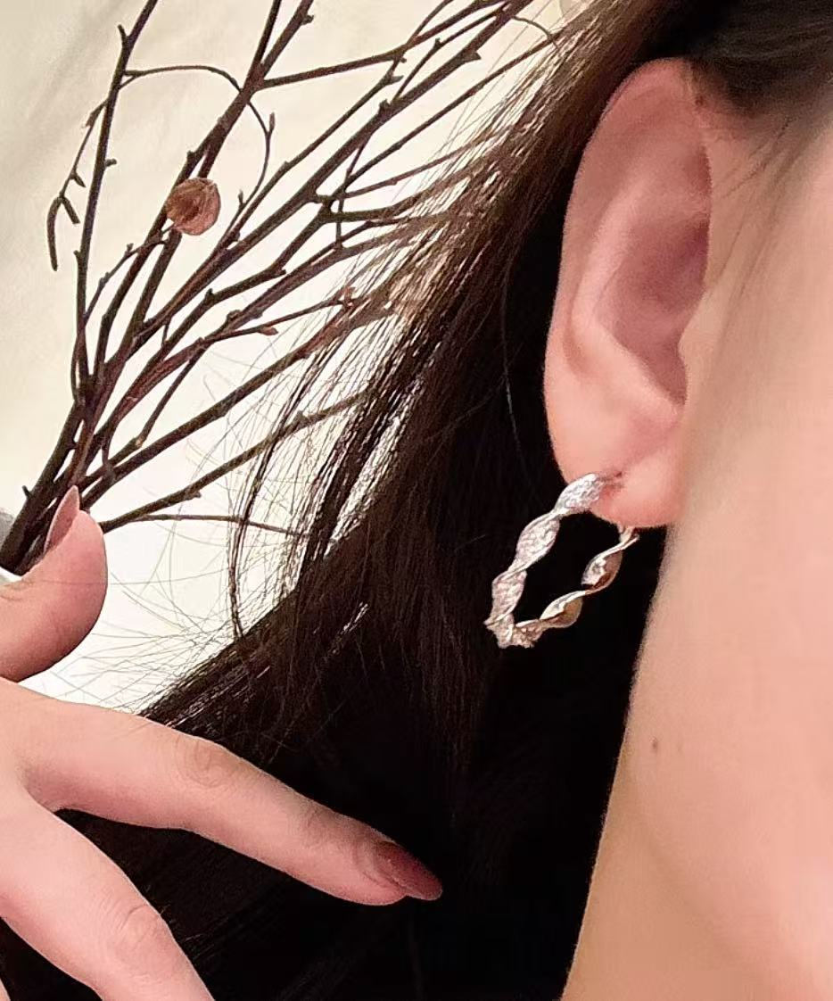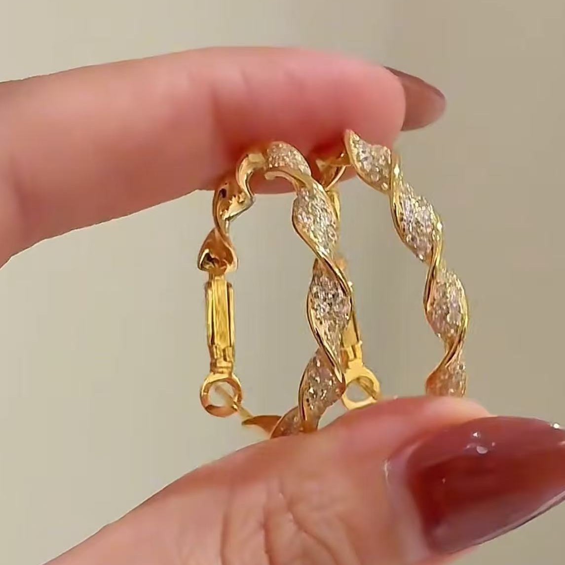 纯银S925意大利工艺扭纹高碳钻大耳圈轻奢复古扭纹设计感优雅耳饰
