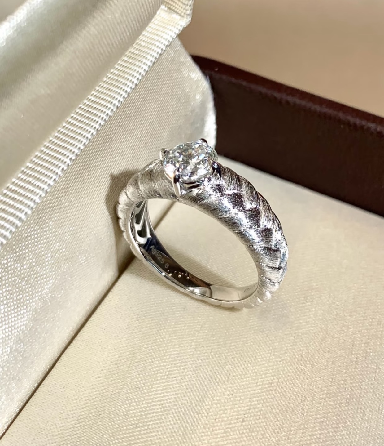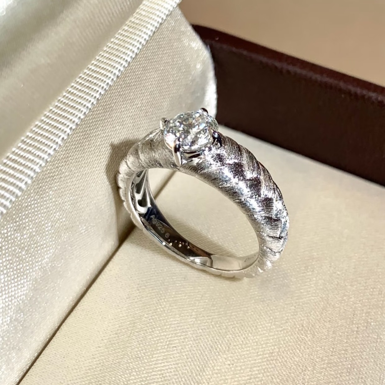 纯银S925意大利工艺轻奢精致拉丝工艺麦穗钻戒戒指高级感简约气质