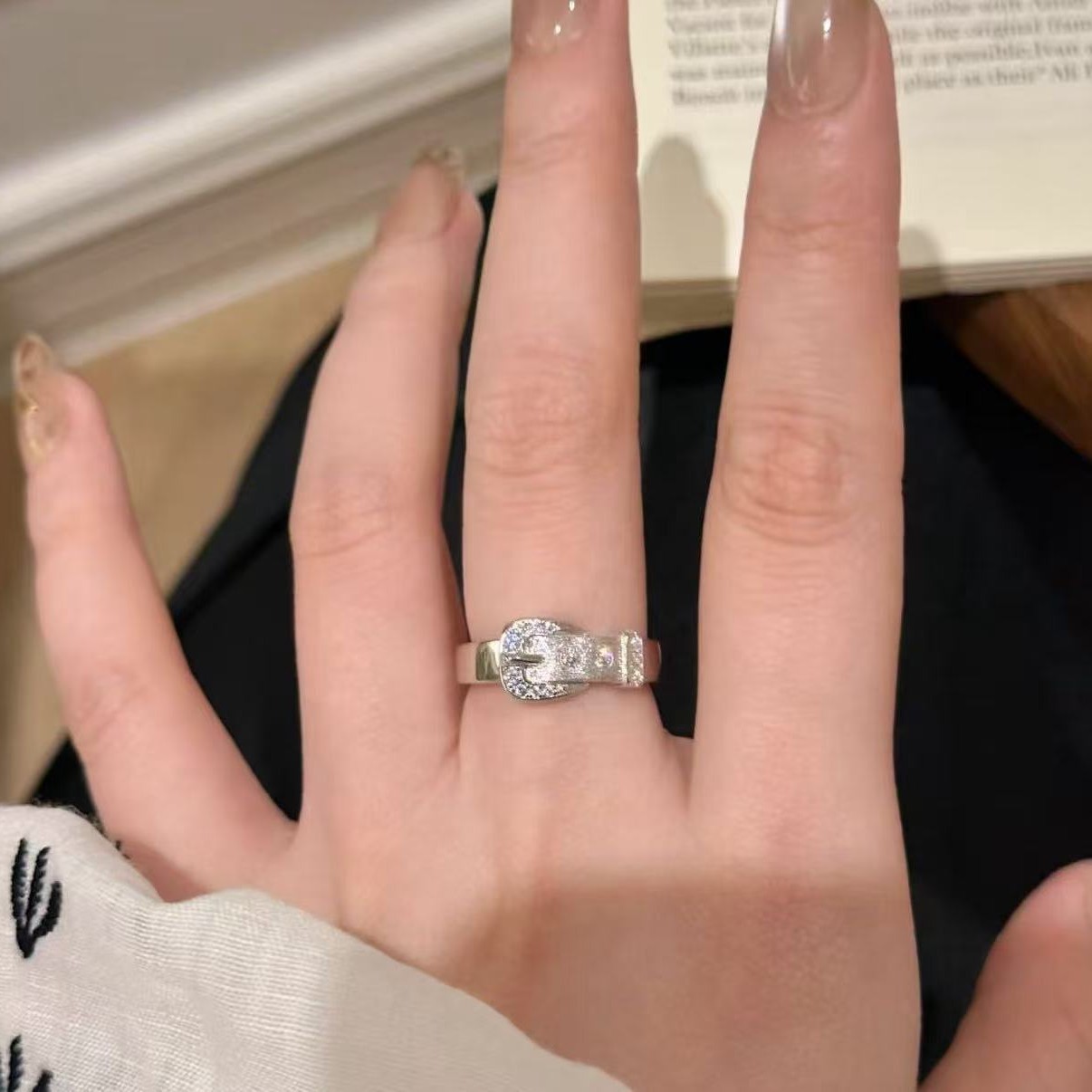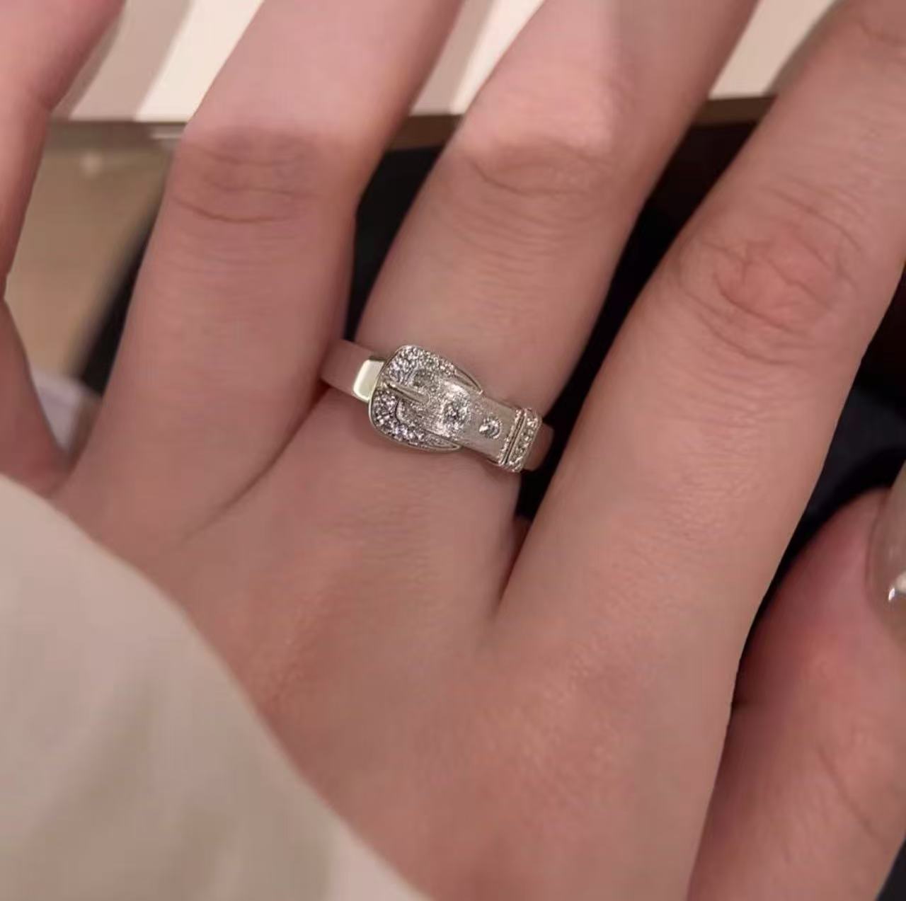 纯银s925拉丝工艺皮带扣戒指ins小众轻奢高级感百搭指环精致