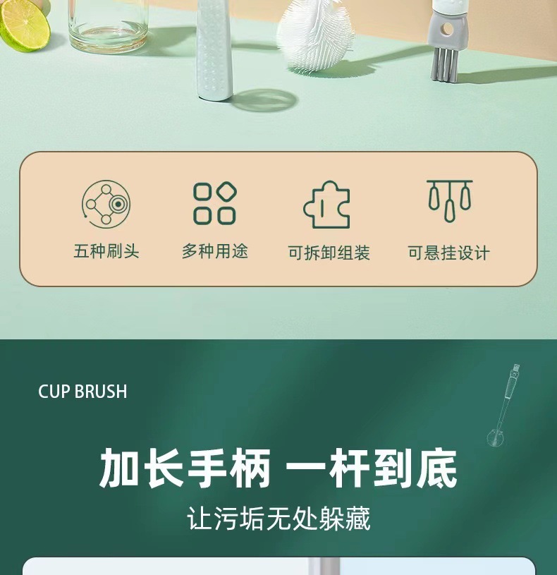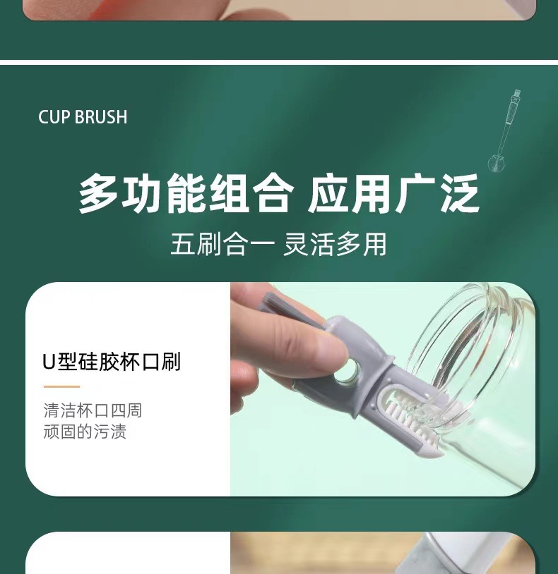 多功能奶瓶刷长柄杯刷家用清洁神器水壶杯子奶瓶清洁刷五合一洗杯