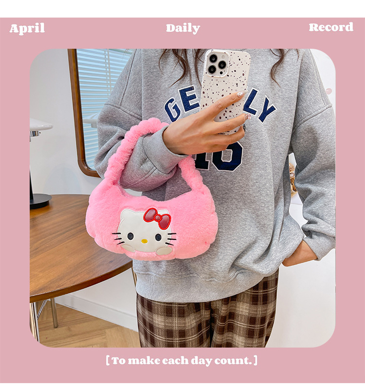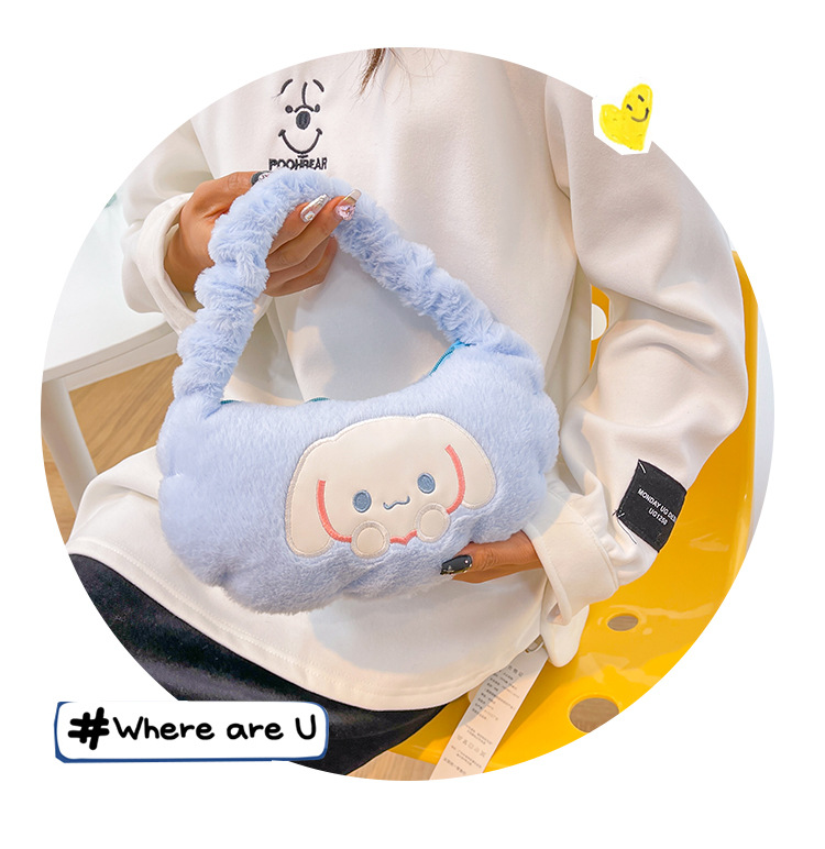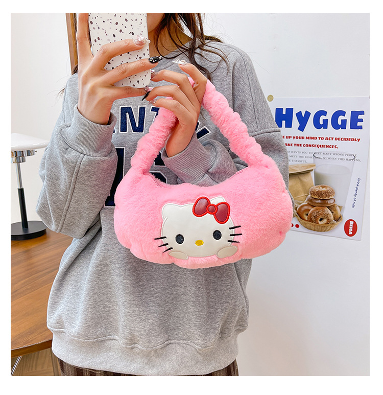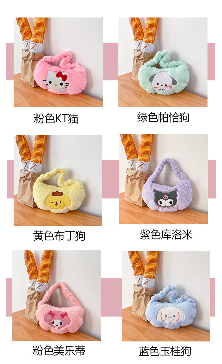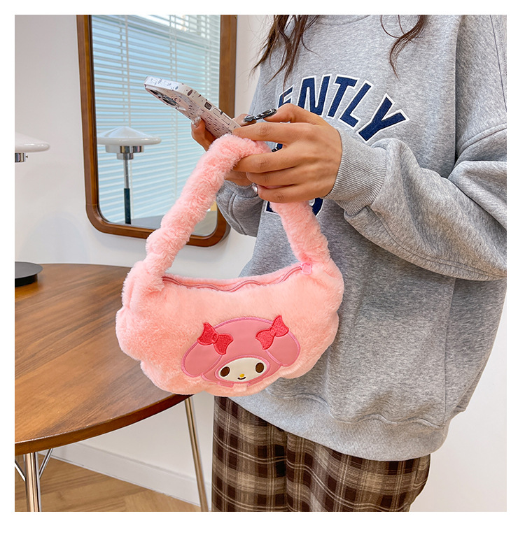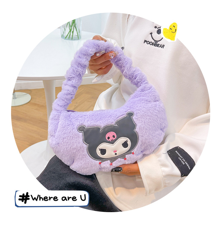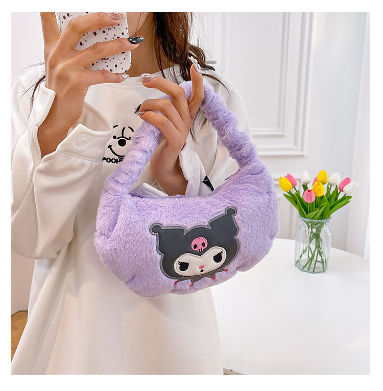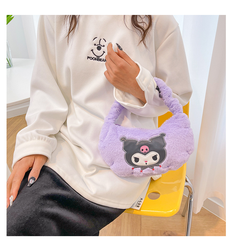 毛绒卡通手提包库洛米单肩化妆包女生软萌腋下包包厂家批发