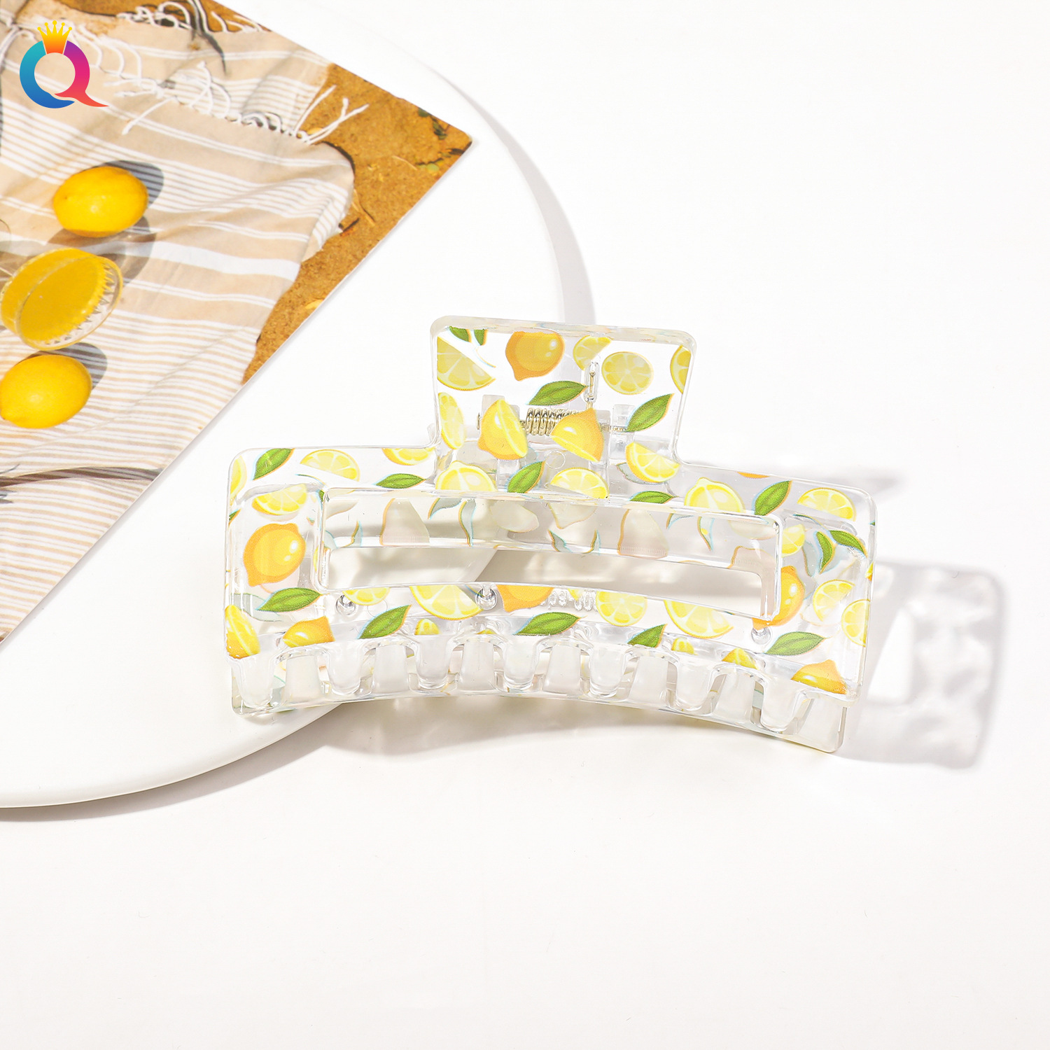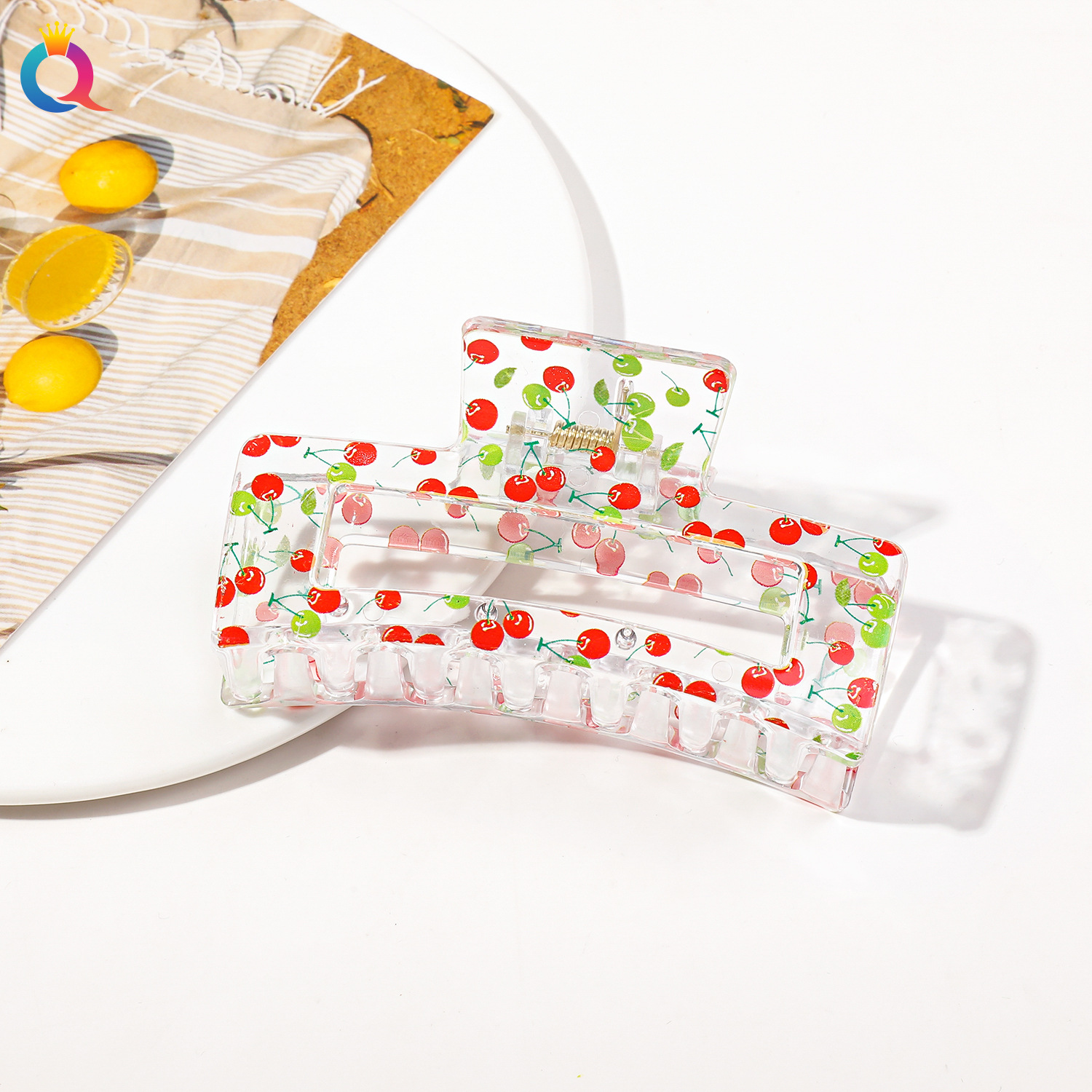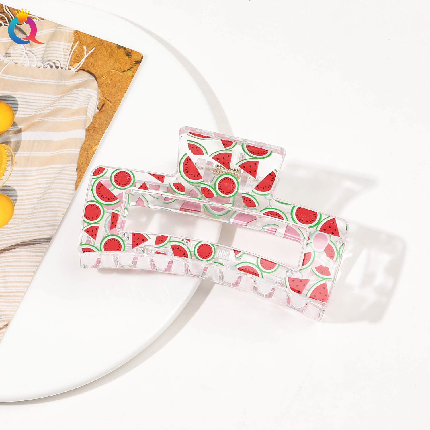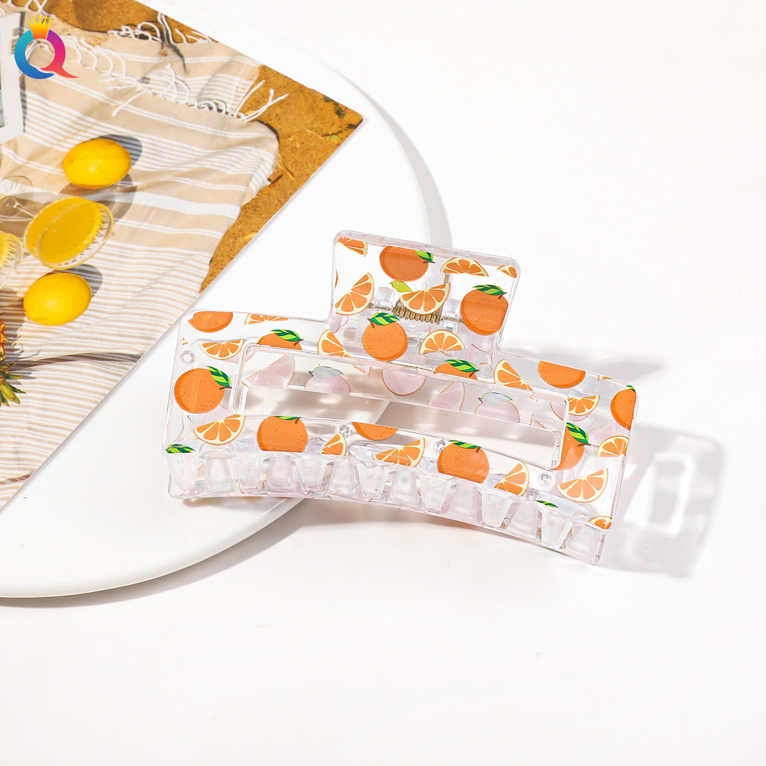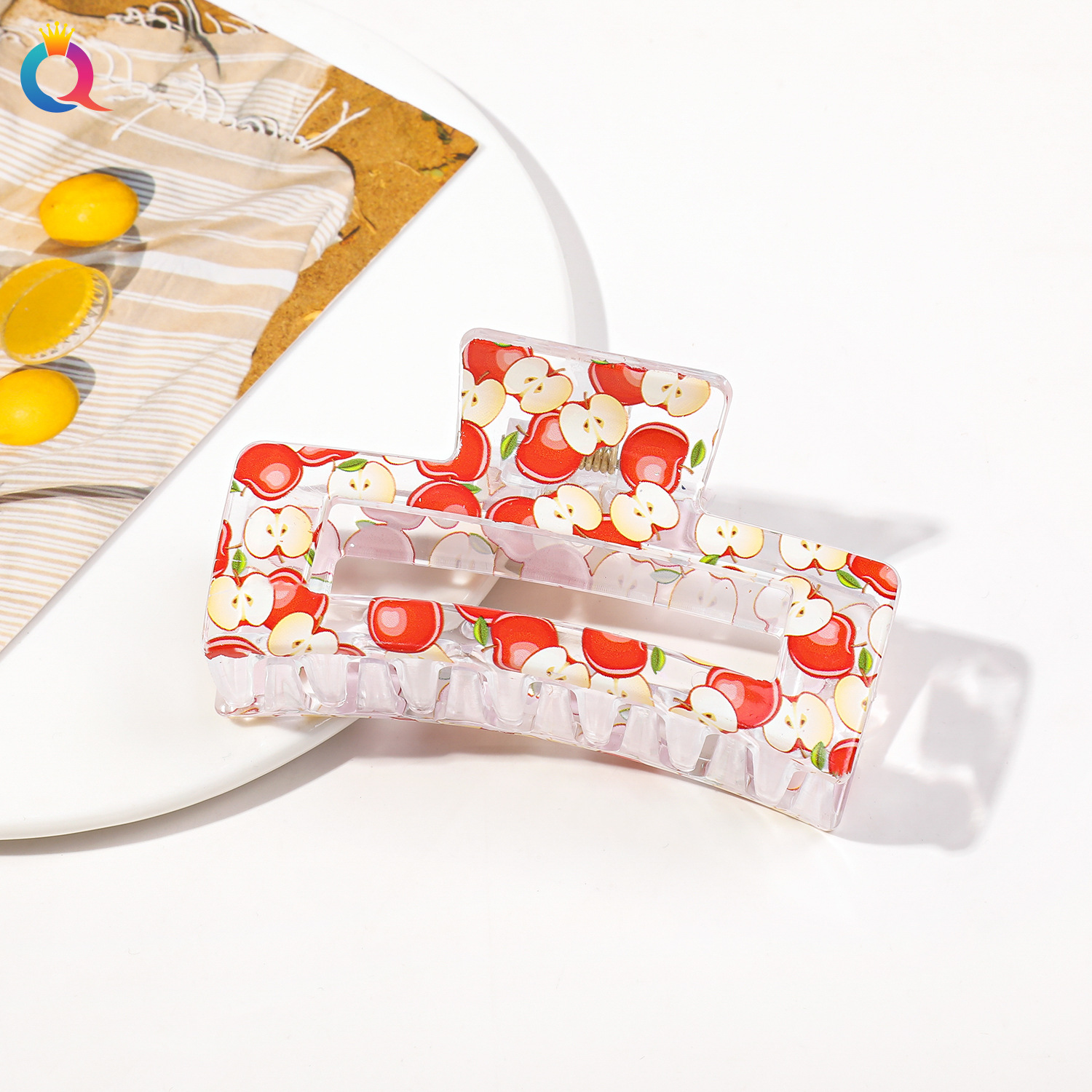 奇阅义乌热转印花发夹水果碎花盘发抓夹可爱后脑勺鲨鱼夹发饰批发