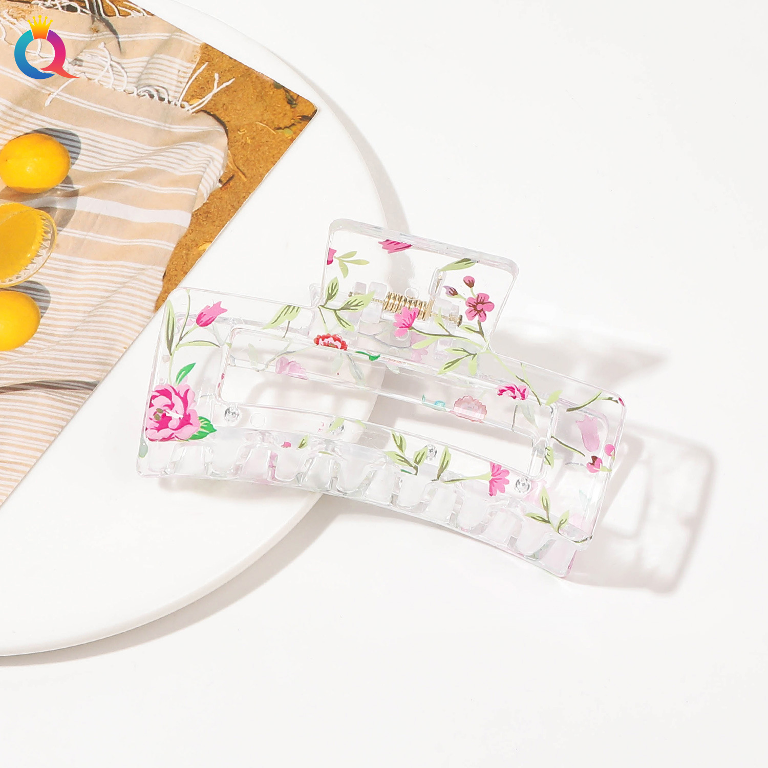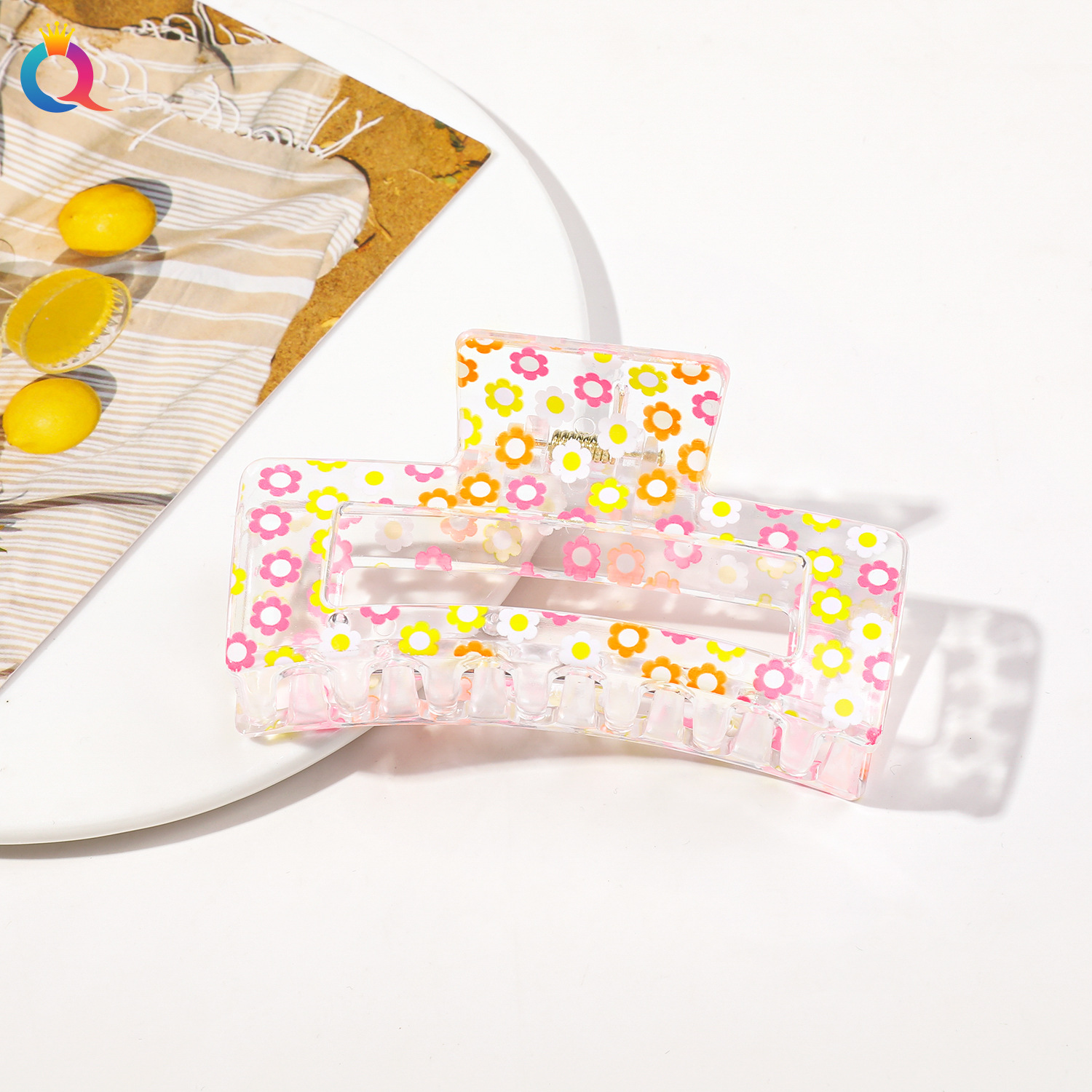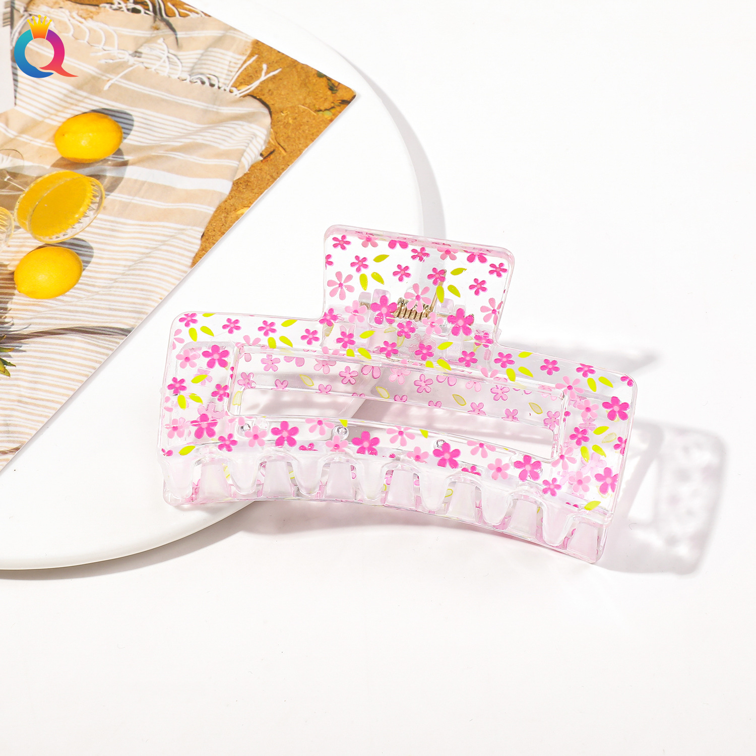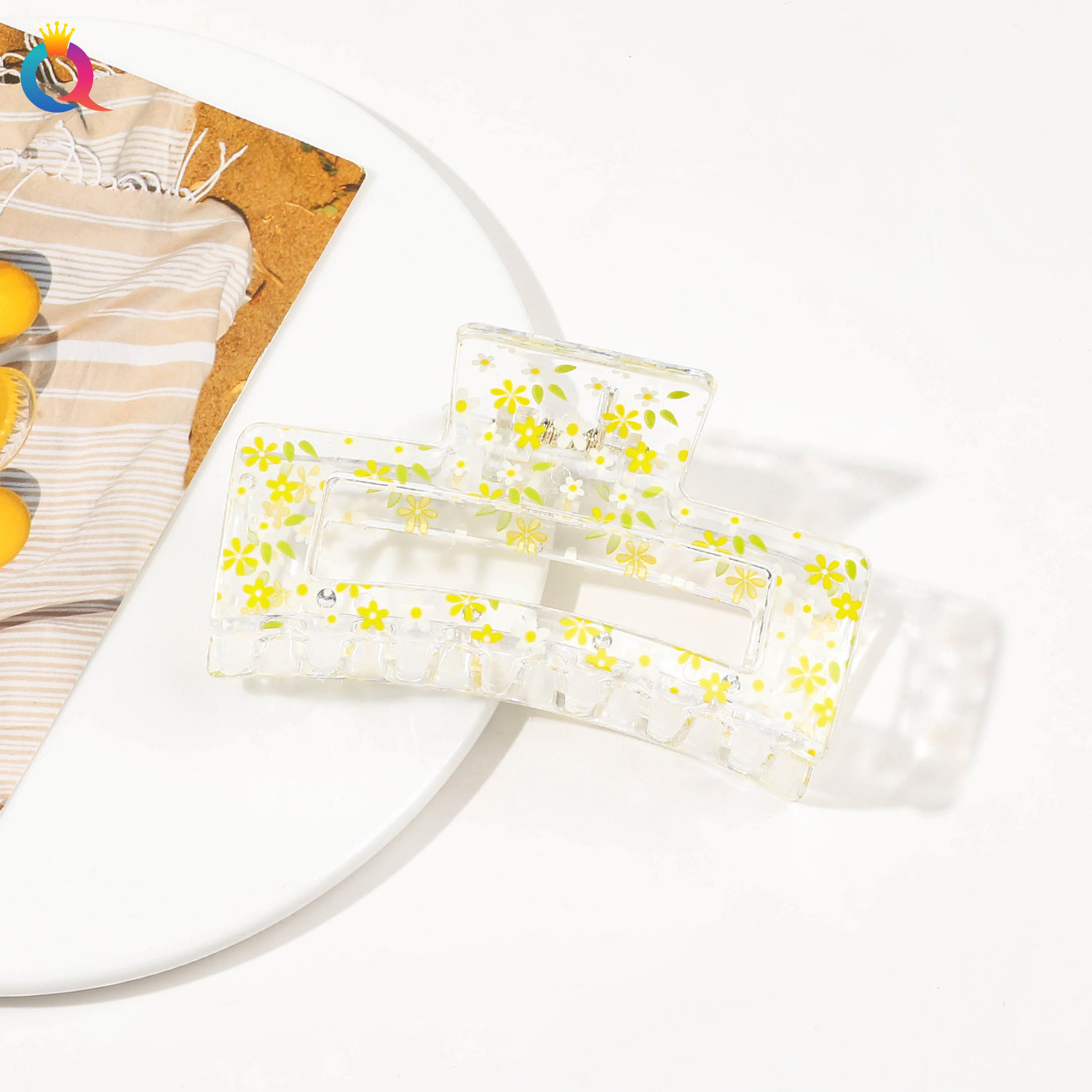 奇阅义乌热转印花发夹水果碎花盘发抓夹可爱后脑勺鲨鱼夹发饰批发