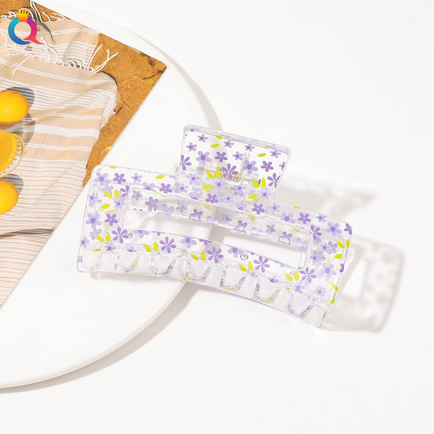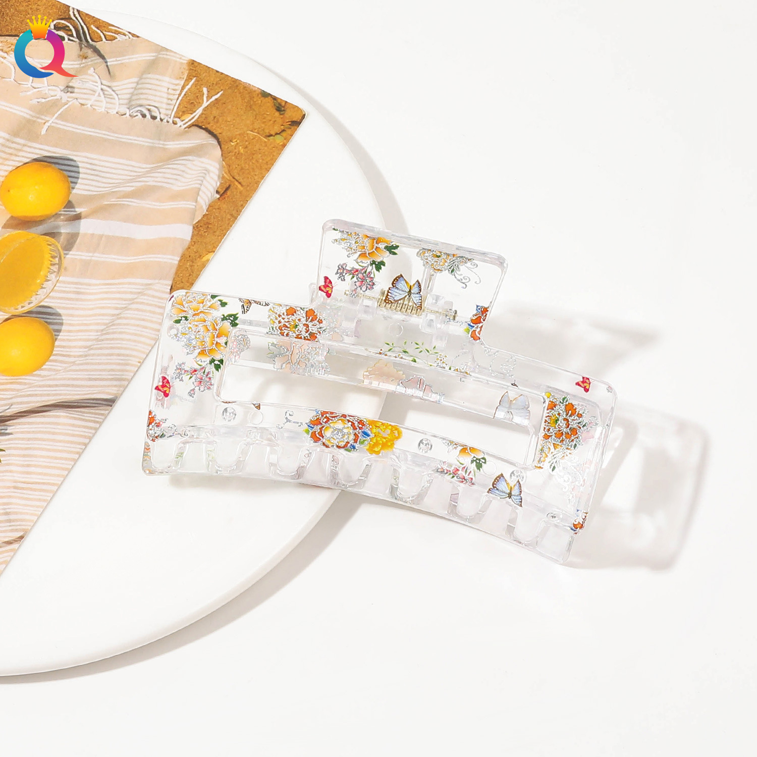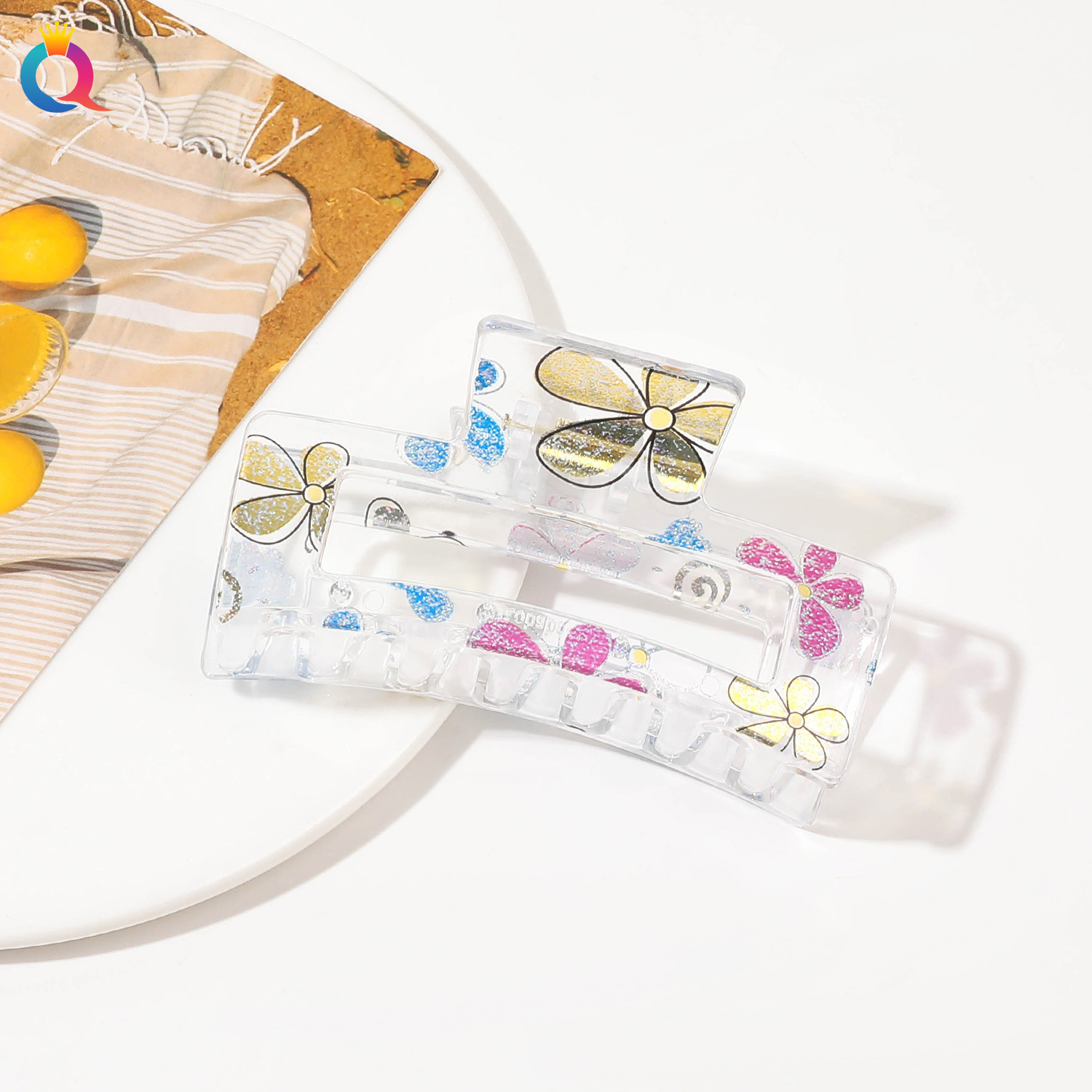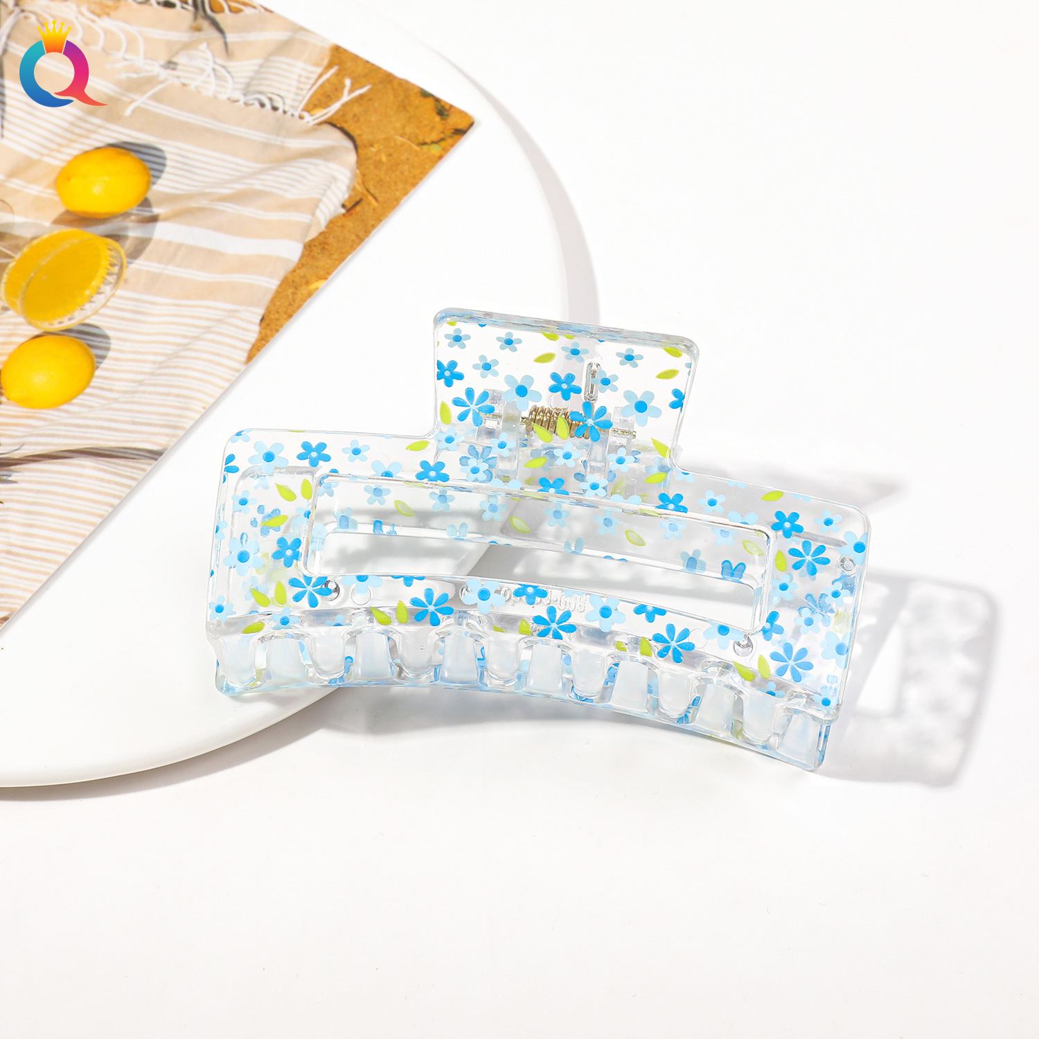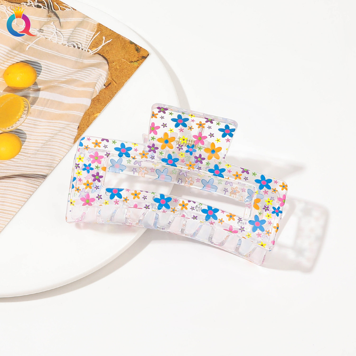 奇阅义乌热转印花发夹水果碎花盘发抓夹可爱后脑勺鲨鱼夹发饰批发
