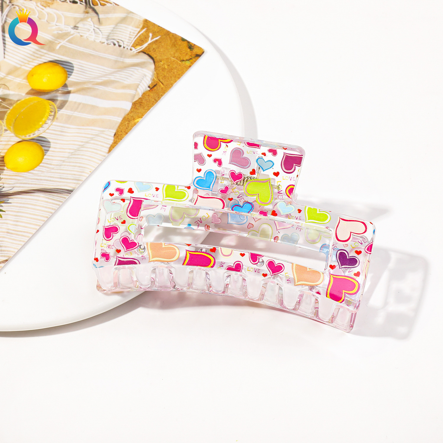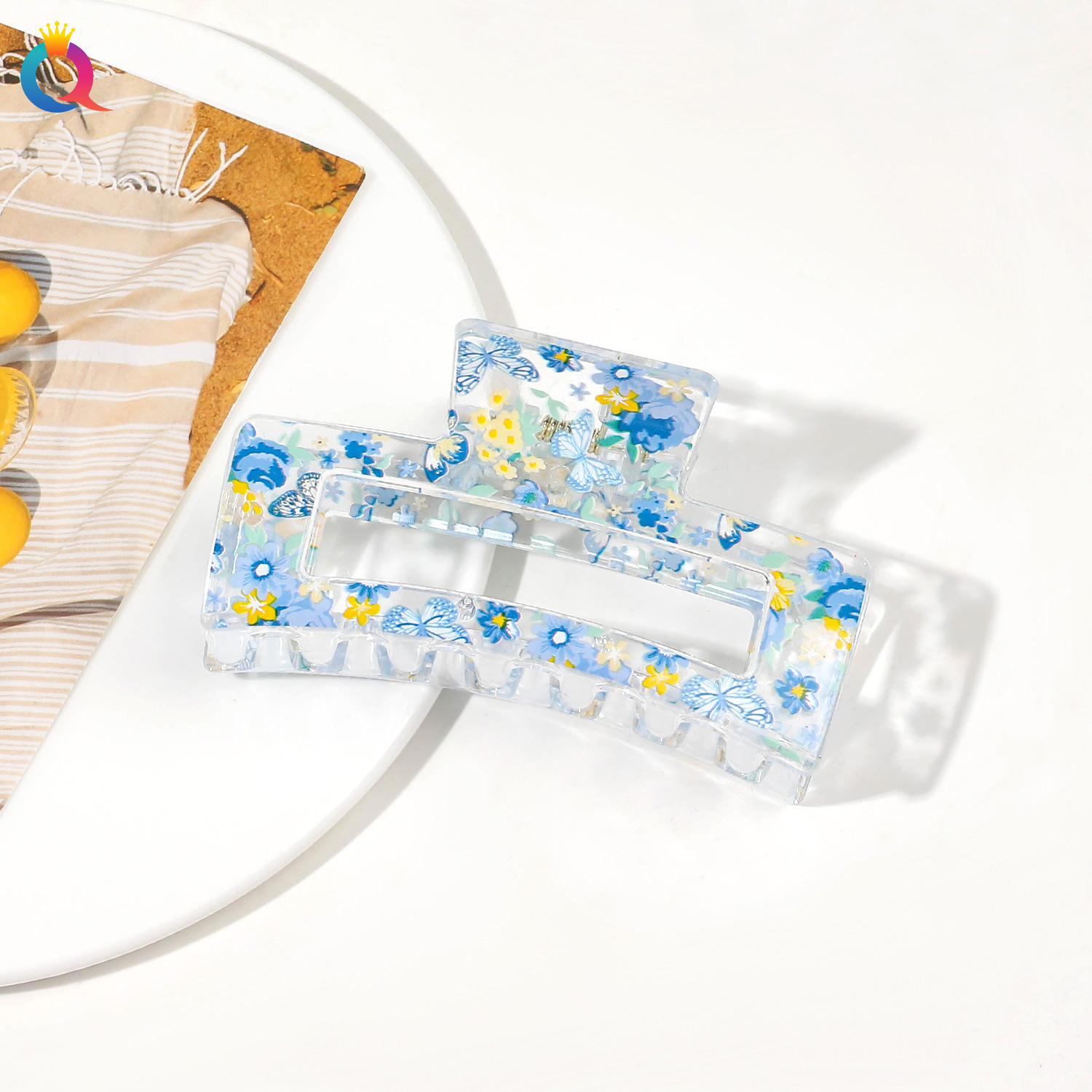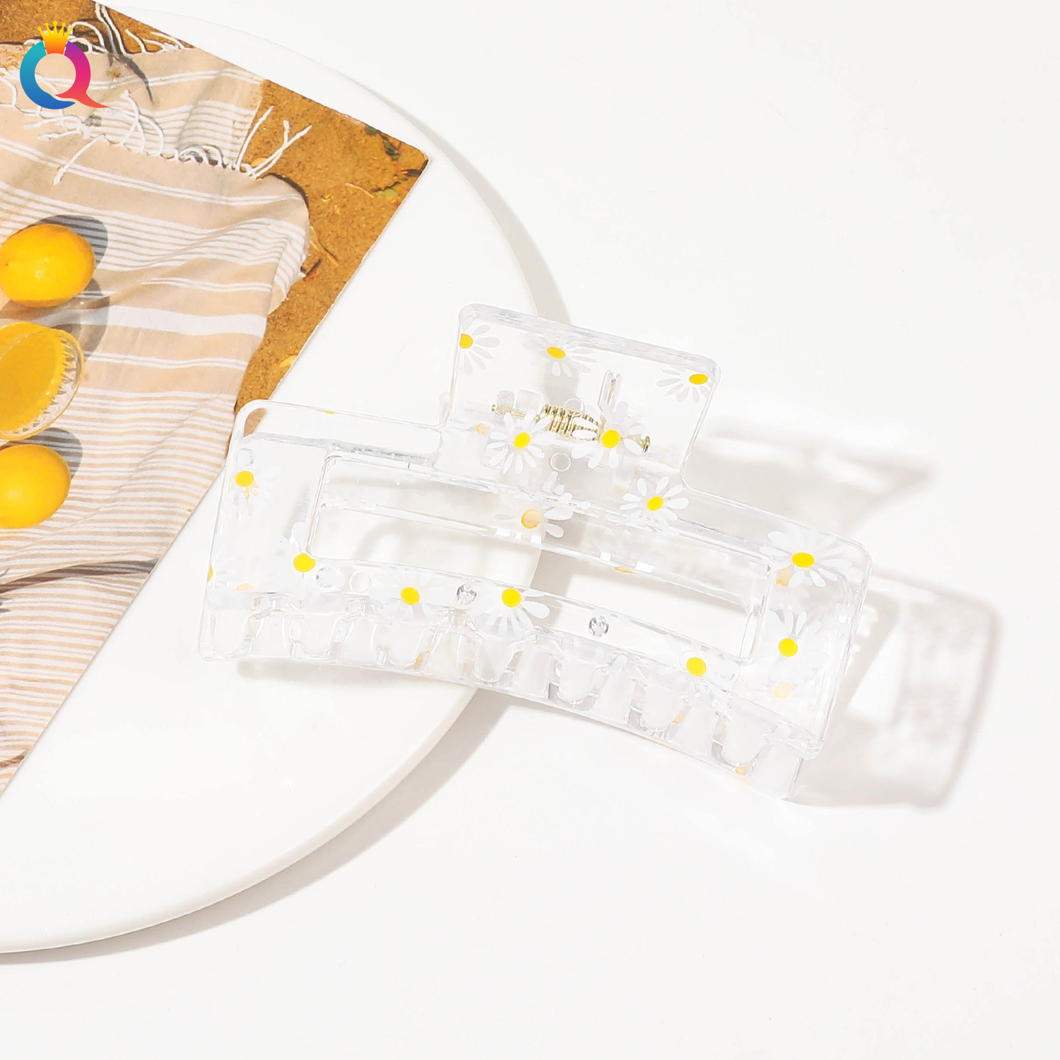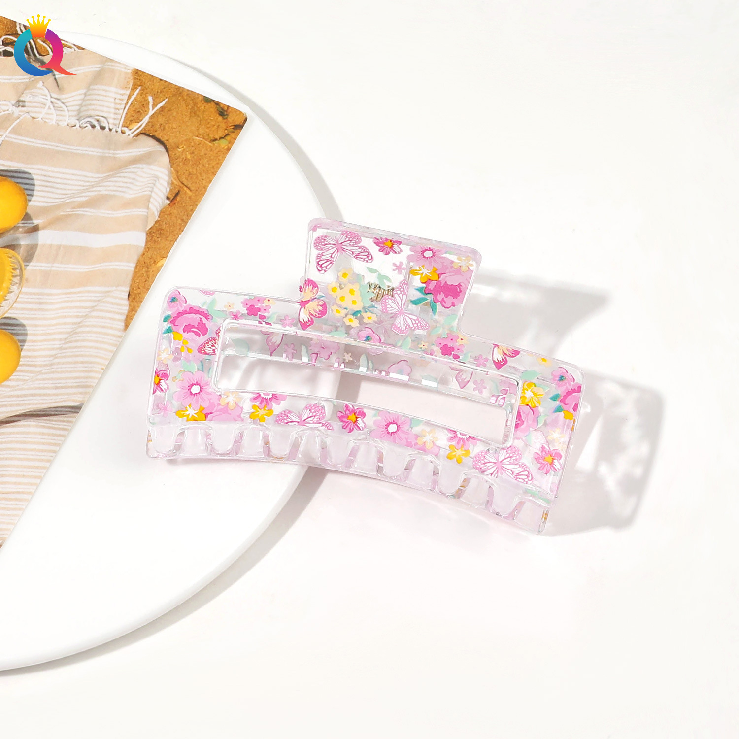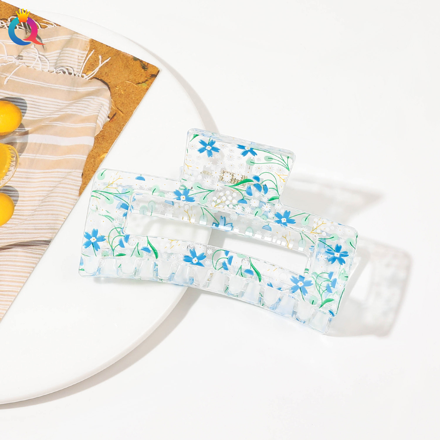 奇阅义乌热转印花发夹水果碎花盘发抓夹可爱后脑勺鲨鱼夹发饰批发