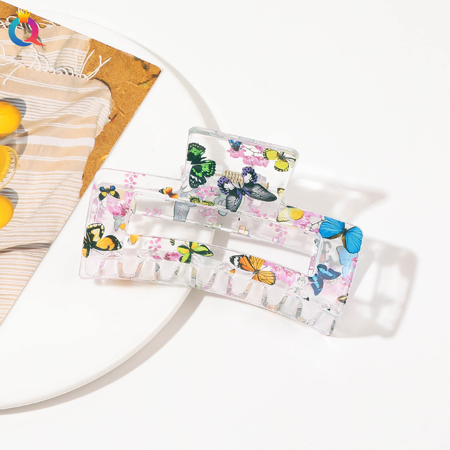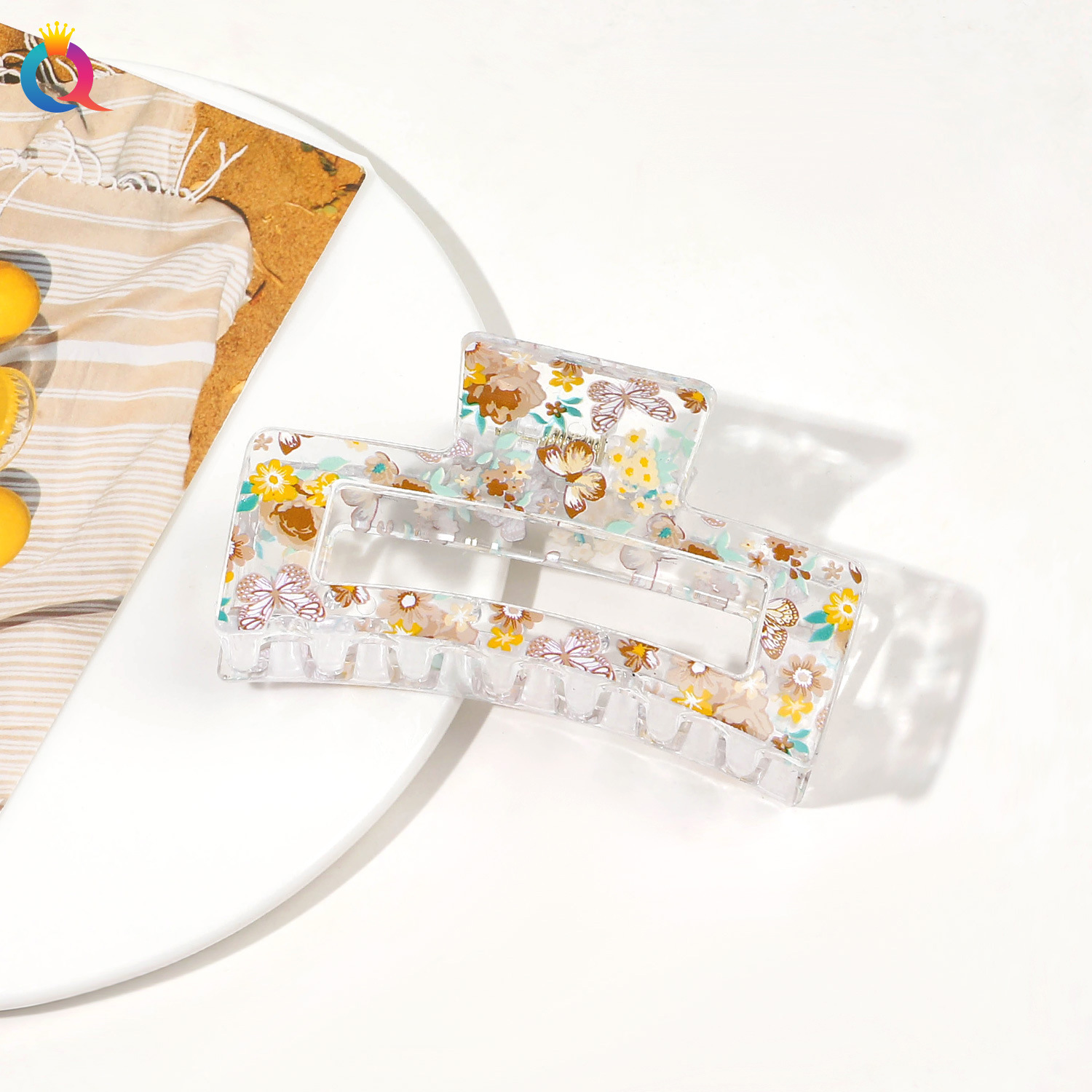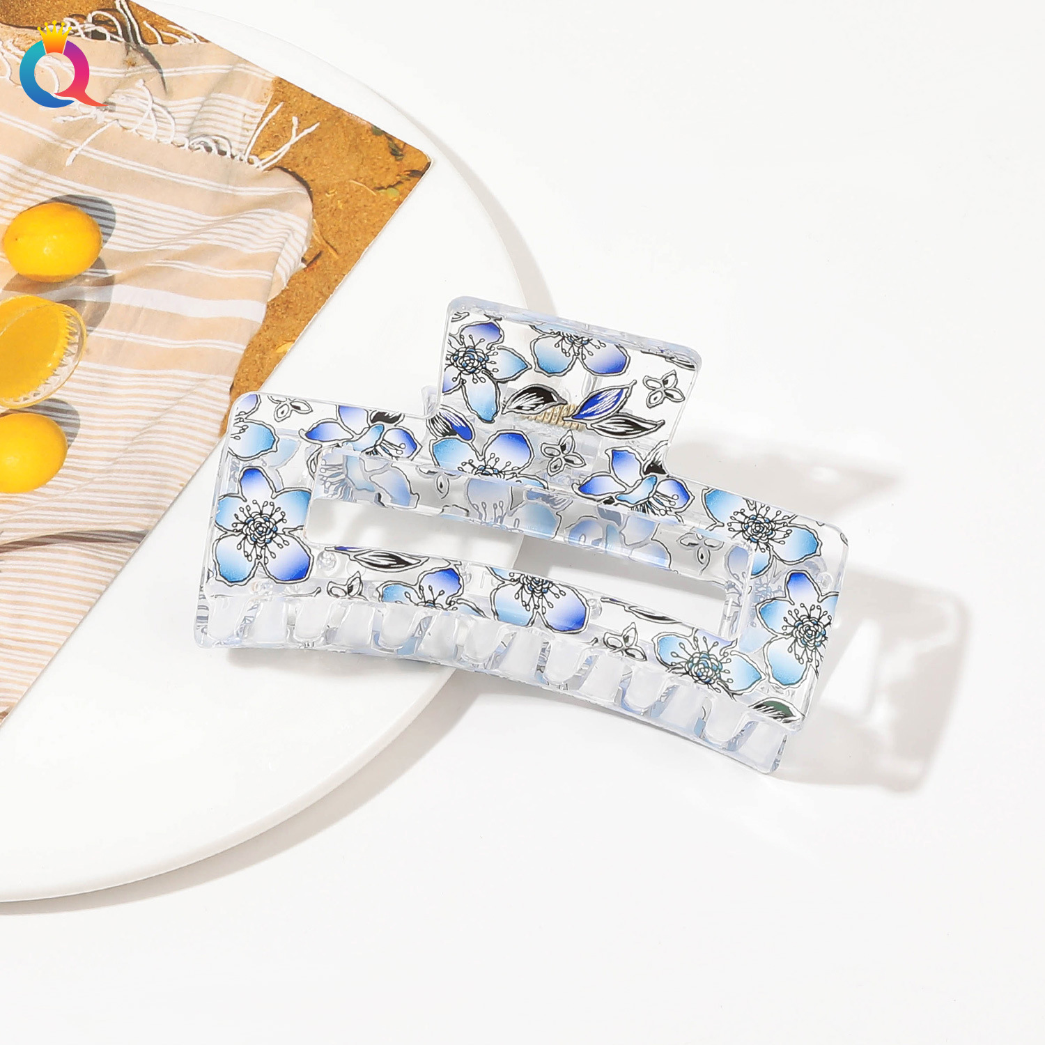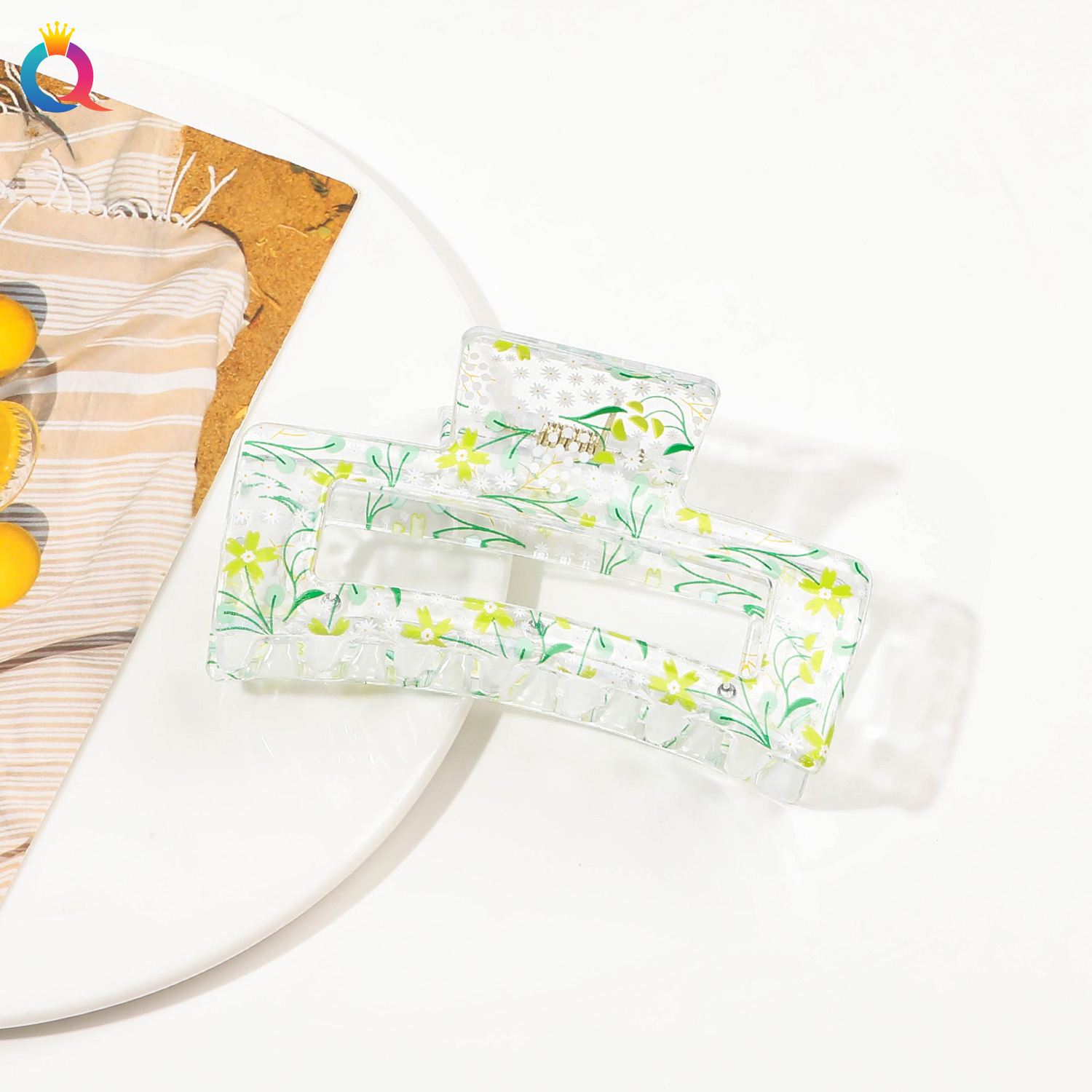 奇阅义乌热转印花发夹水果碎花盘发抓夹可爱后脑勺鲨鱼夹发饰批发