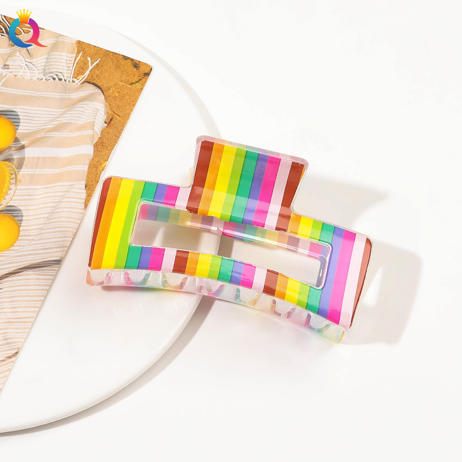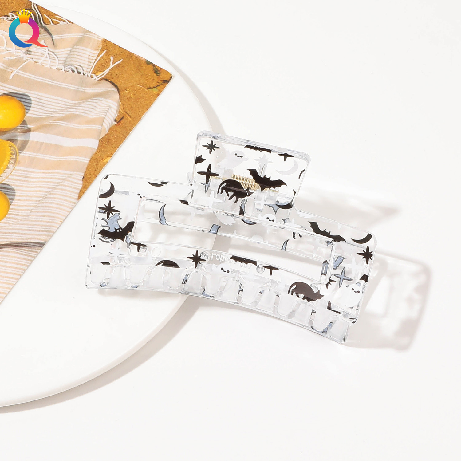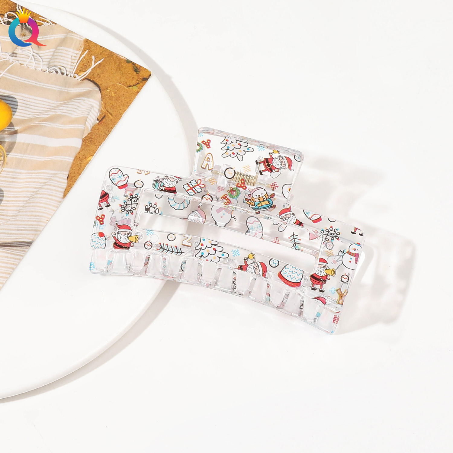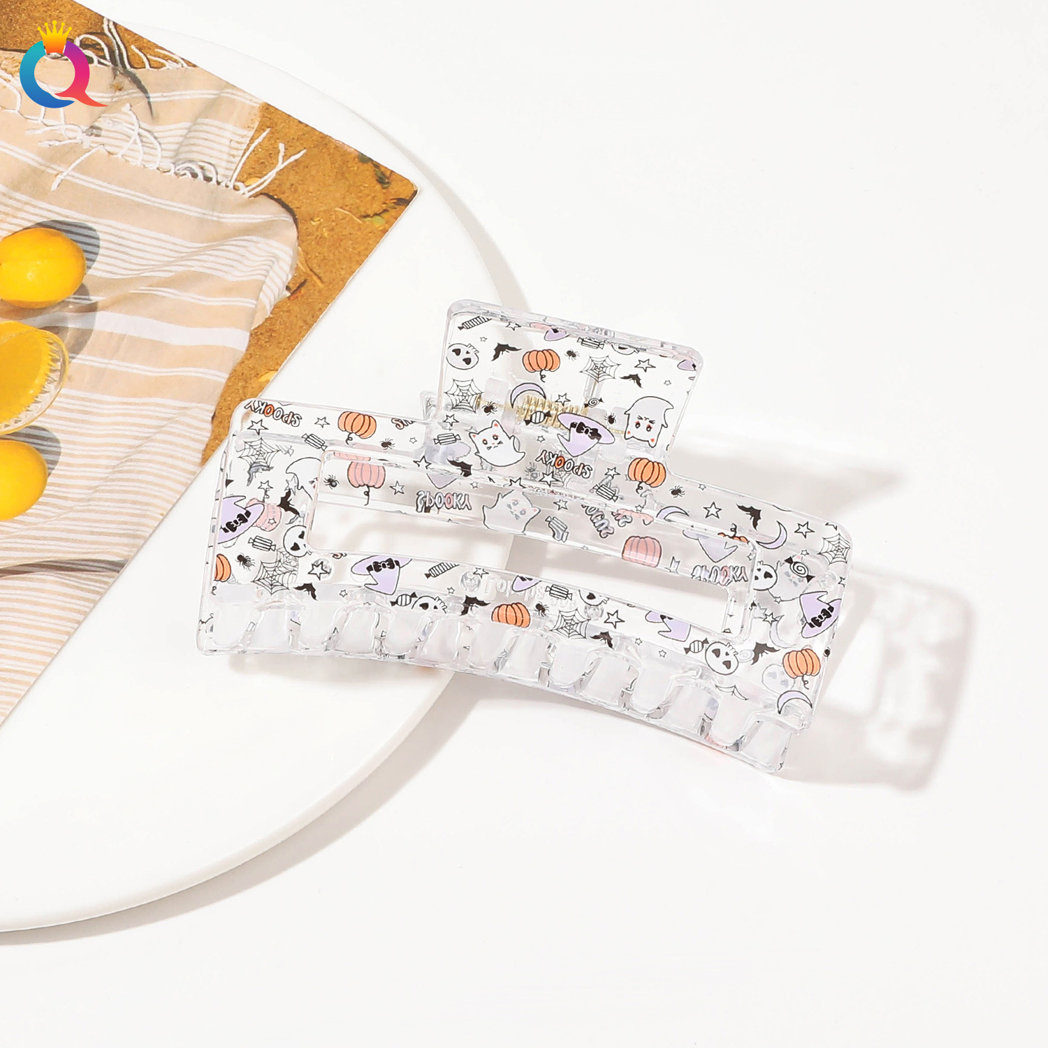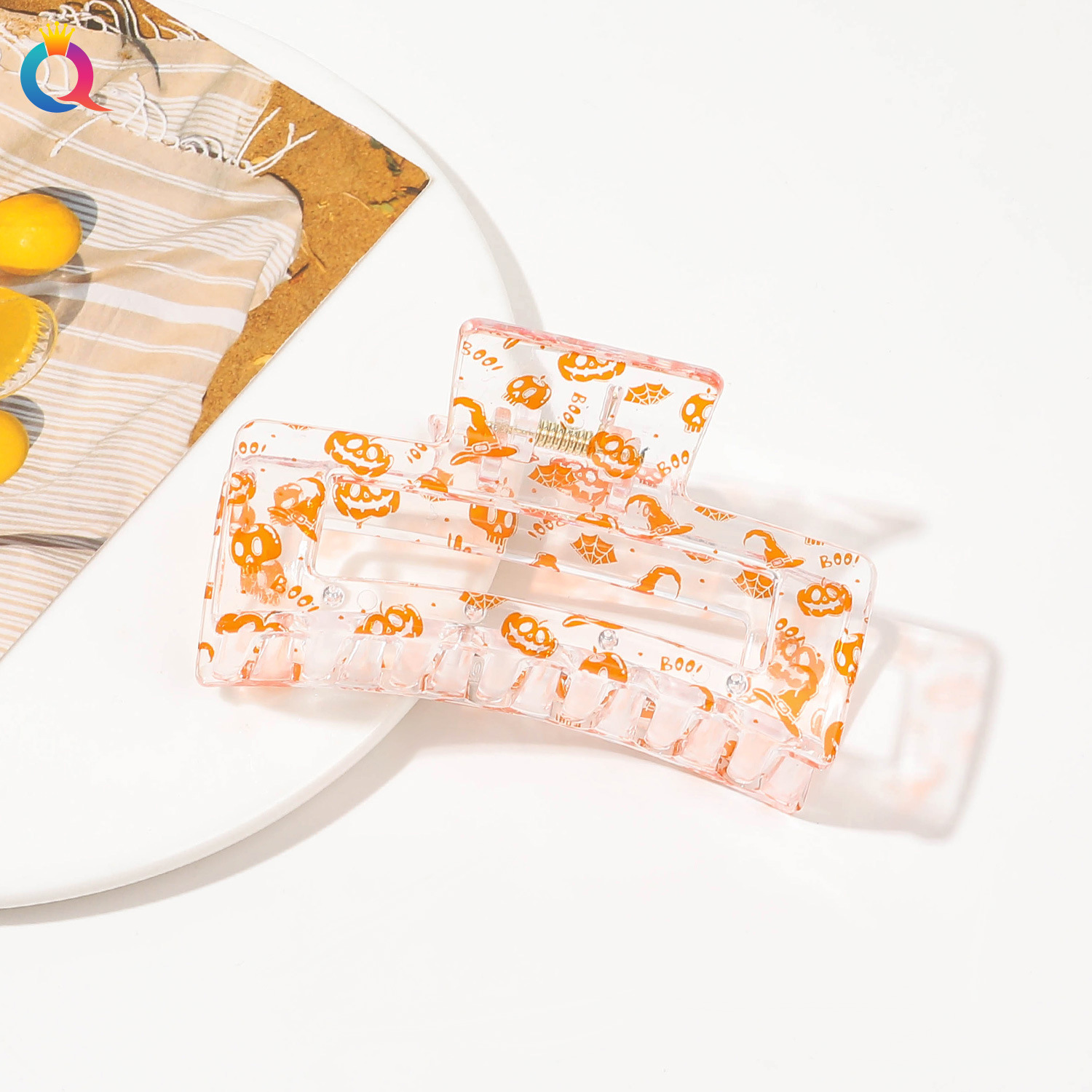 奇阅义乌热转印花发夹水果碎花盘发抓夹可爱后脑勺鲨鱼夹发饰批发