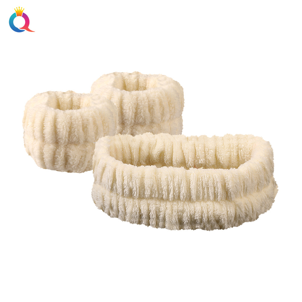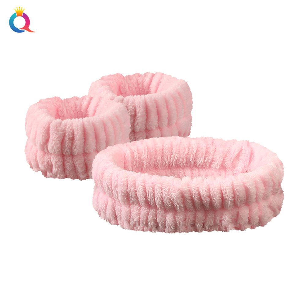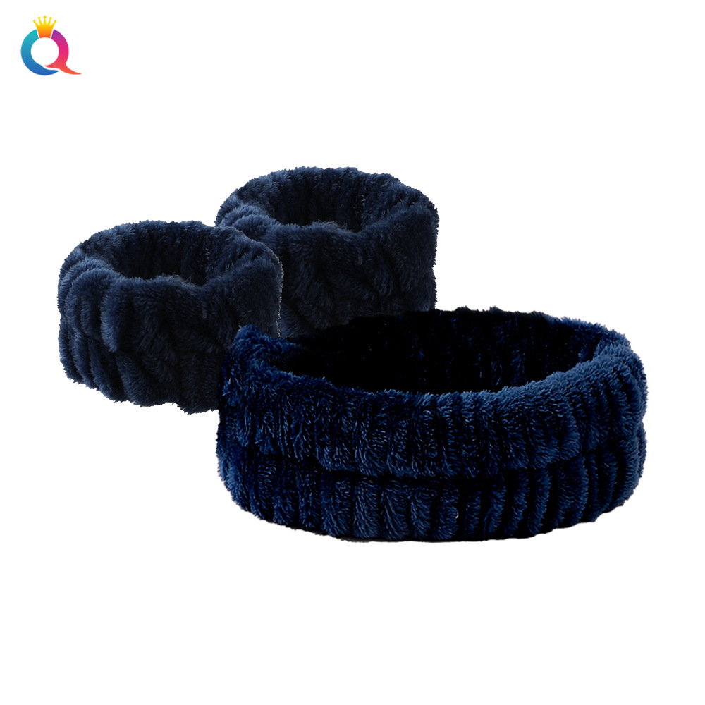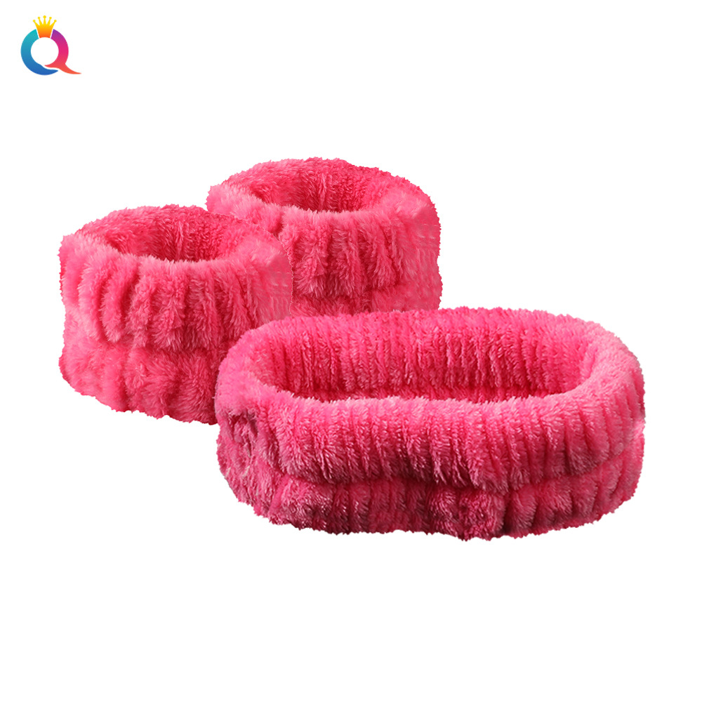 奇阅跨境亚马逊珊瑚绒防水洗脸手腕带法兰绒吸水擦汗头带运动发带