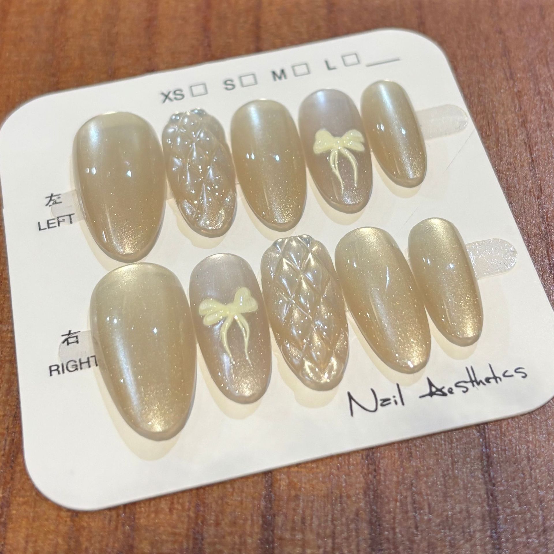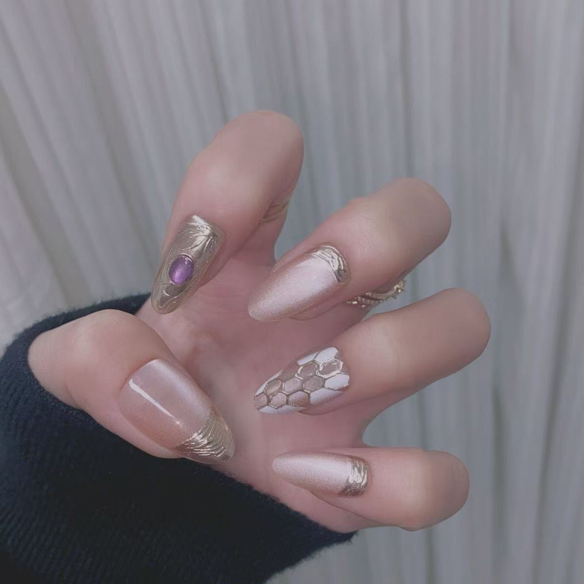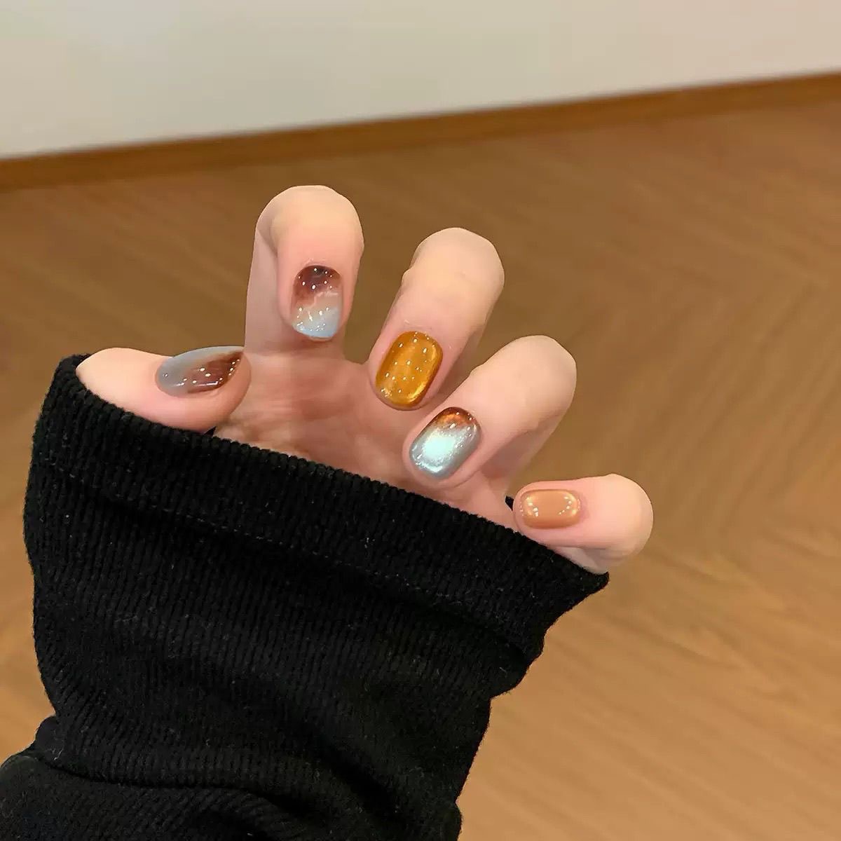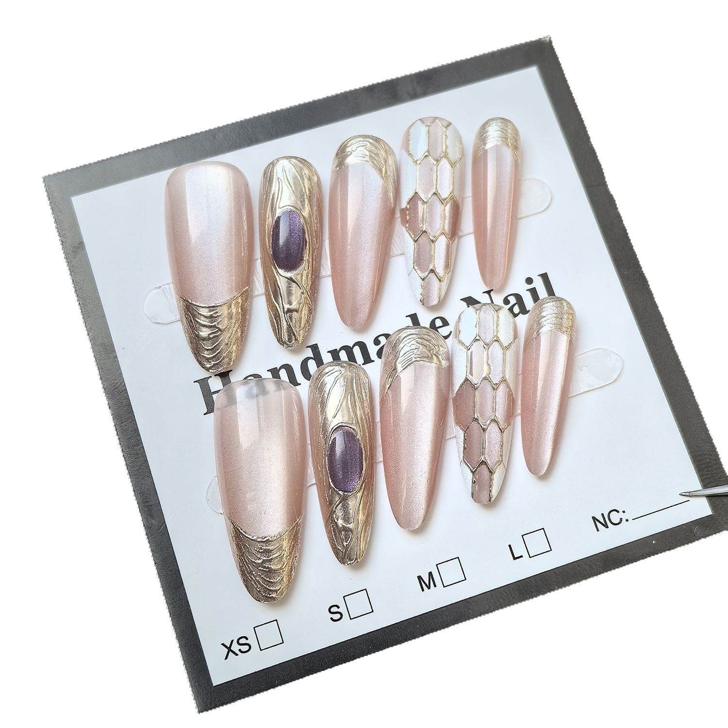 手工穿戴甲秋冬短甲杏仁新款显白猫眼轻奢爆款裸色美甲甲片豹纹
