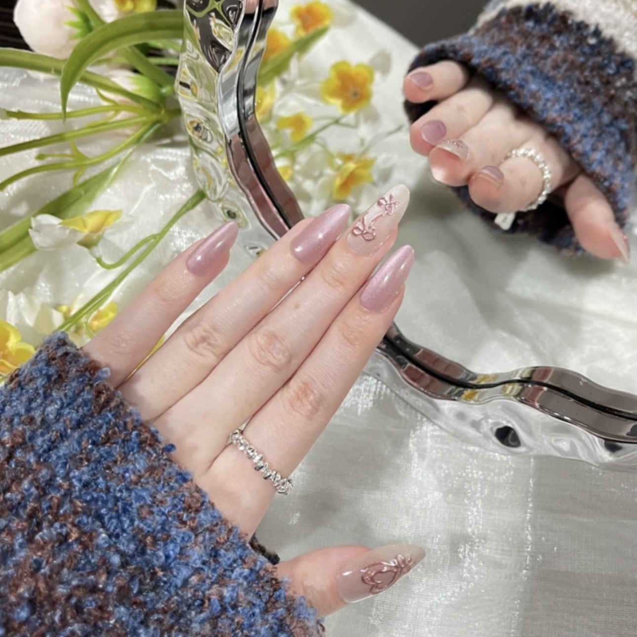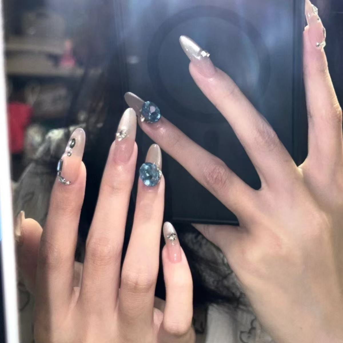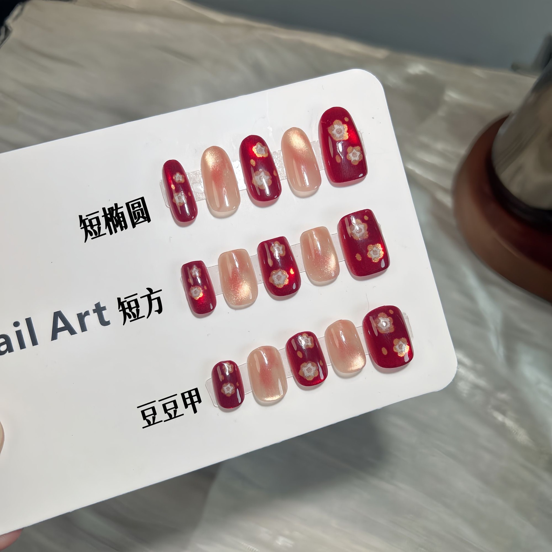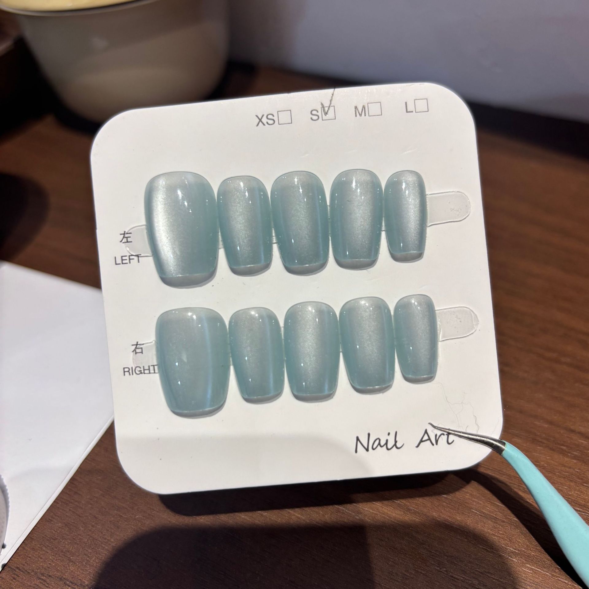 手工穿戴甲秋冬短甲杏仁新款显白猫眼轻奢爆款裸色美甲甲片豹纹
