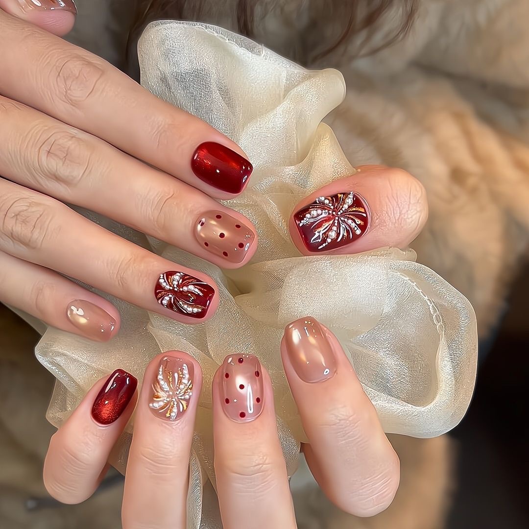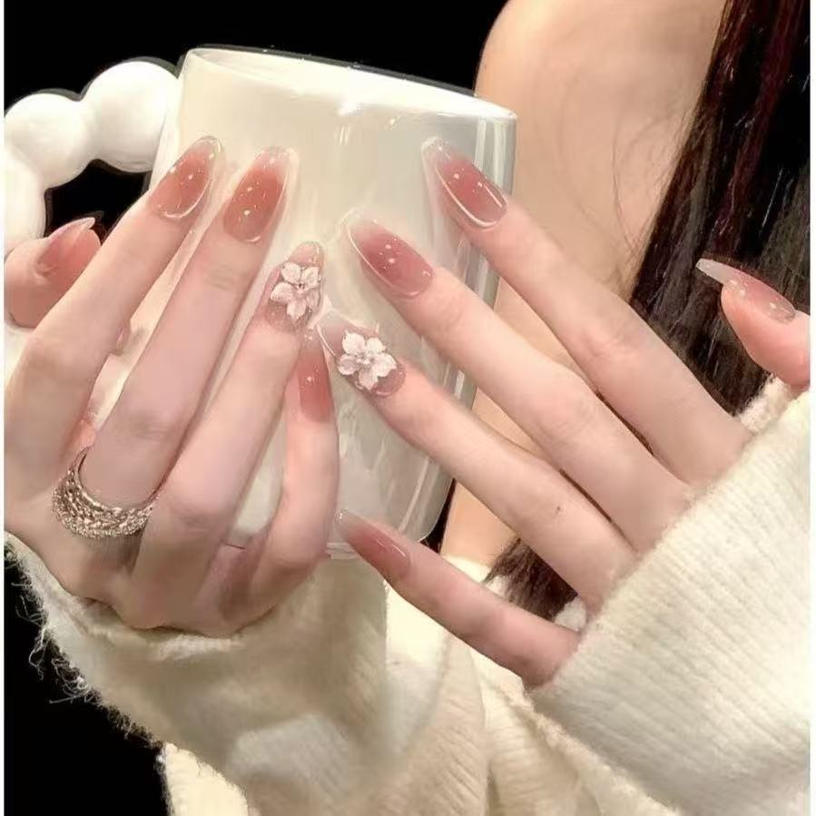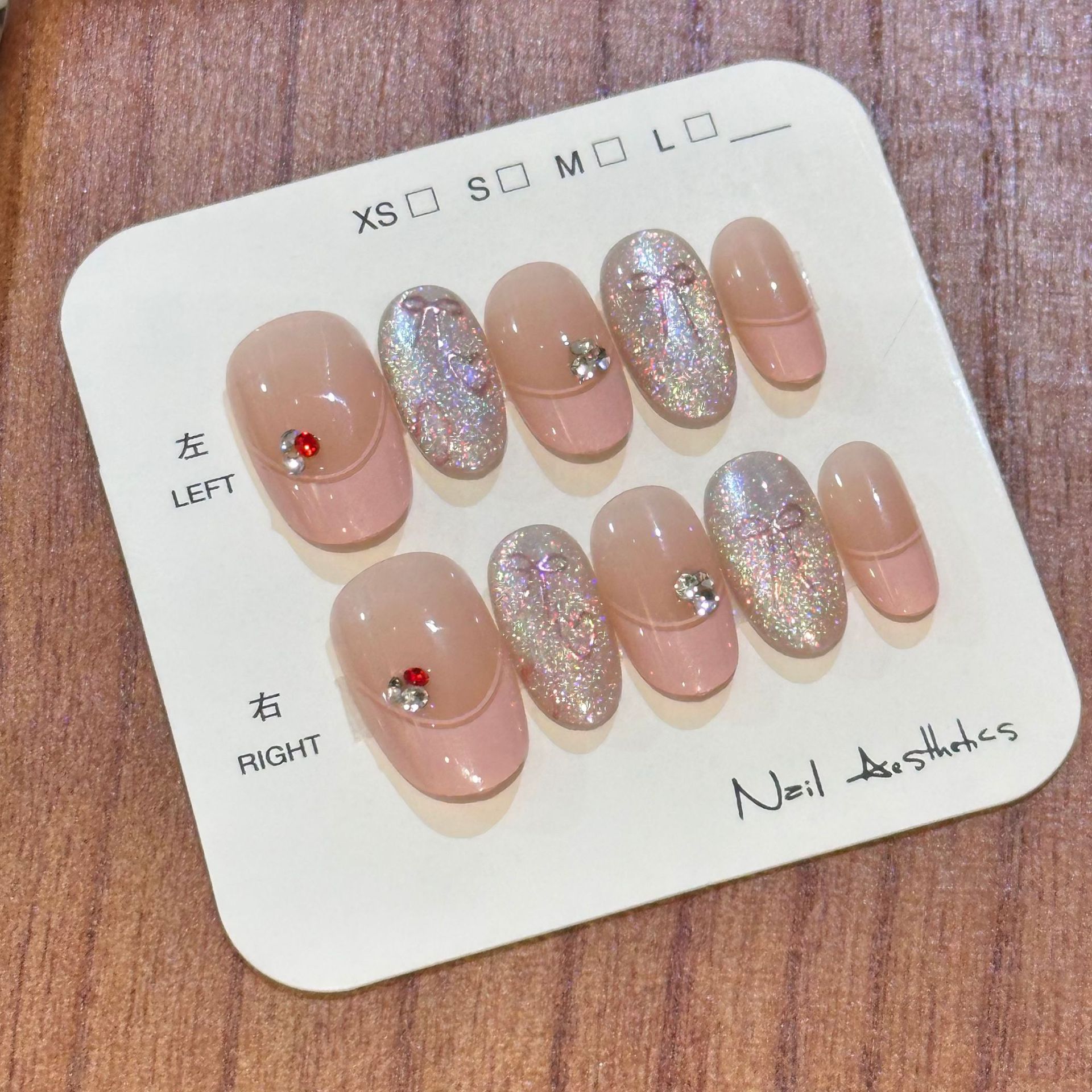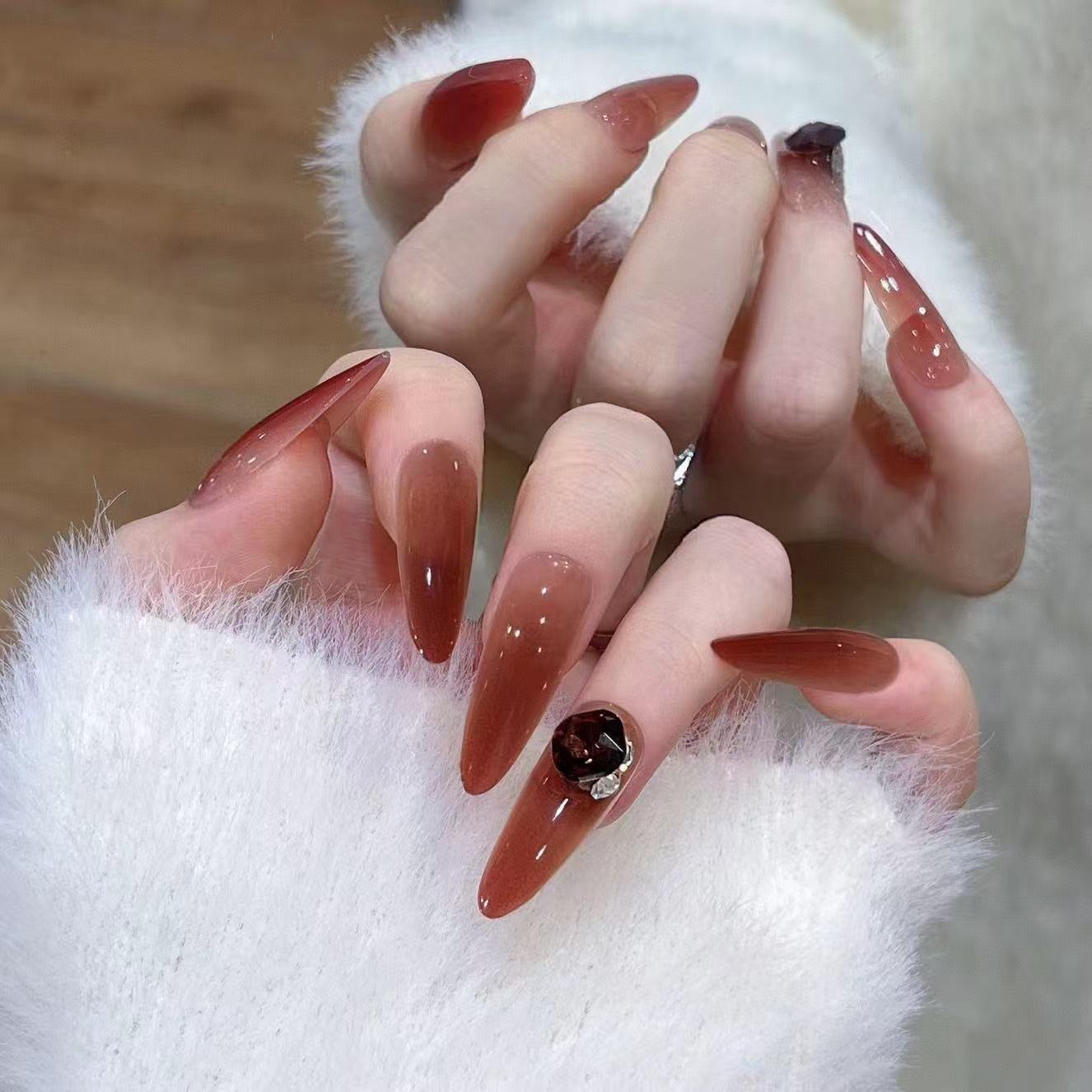 手工穿戴甲秋冬短甲杏仁新款显白猫眼轻奢爆款裸色美甲甲片豹纹