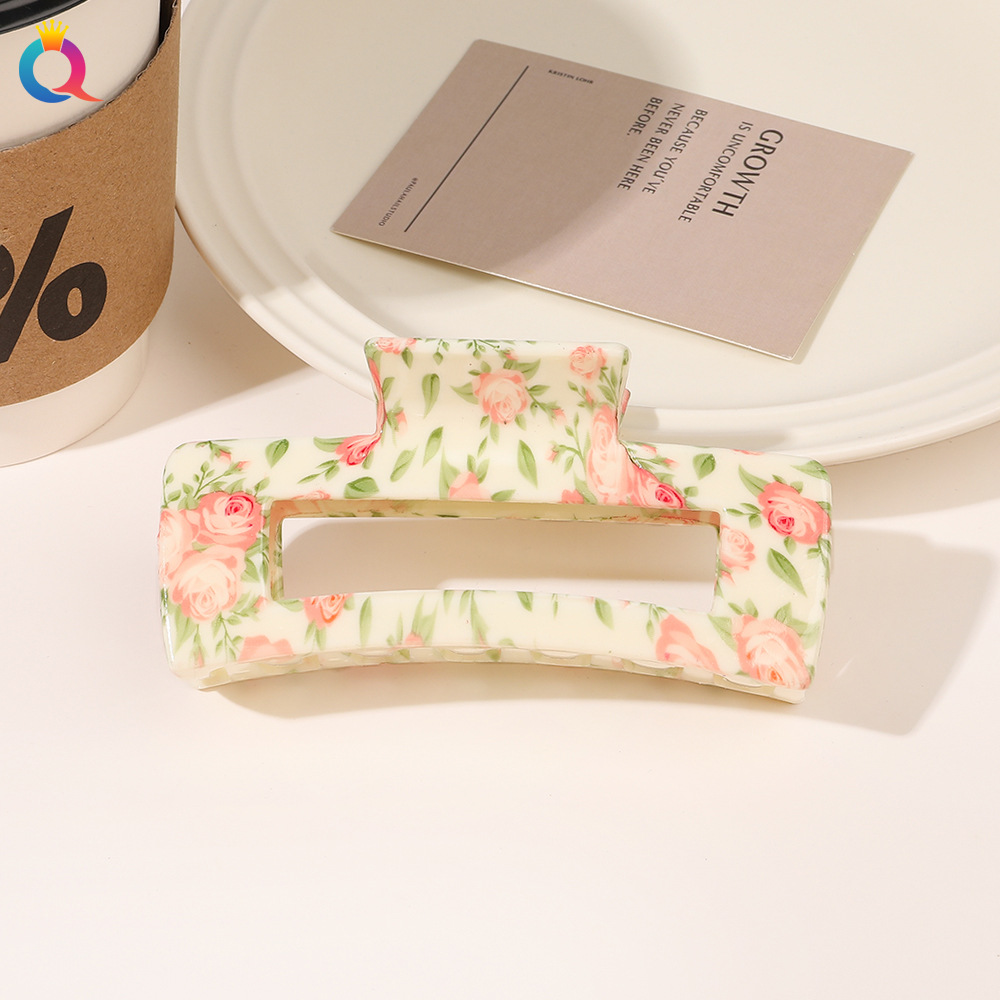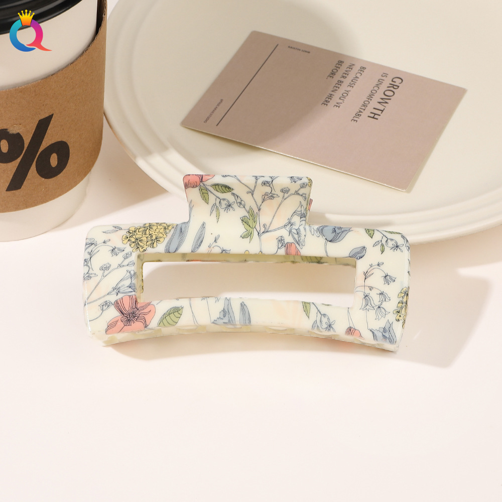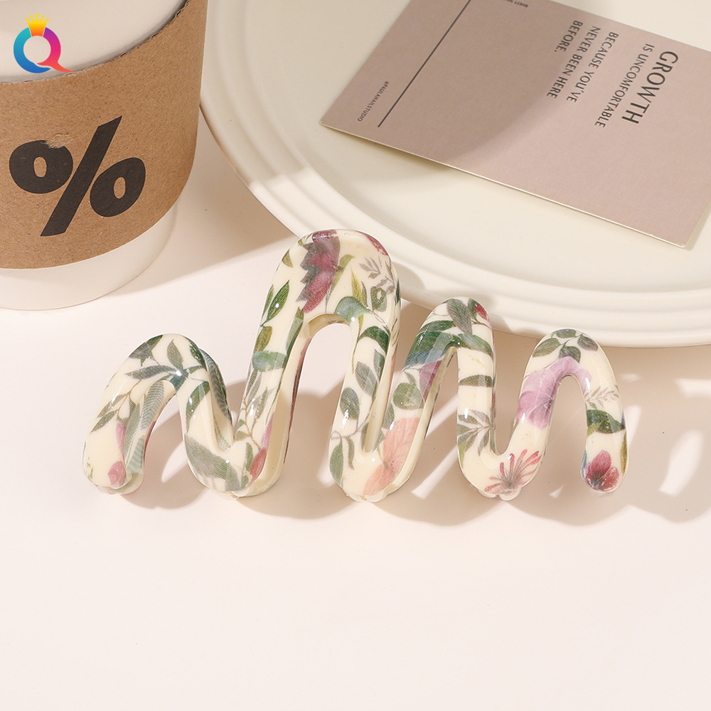 奇阅水转印花发夹盘发碎花抓夹大号高级感鲨鱼夹子女发饰头饰批发