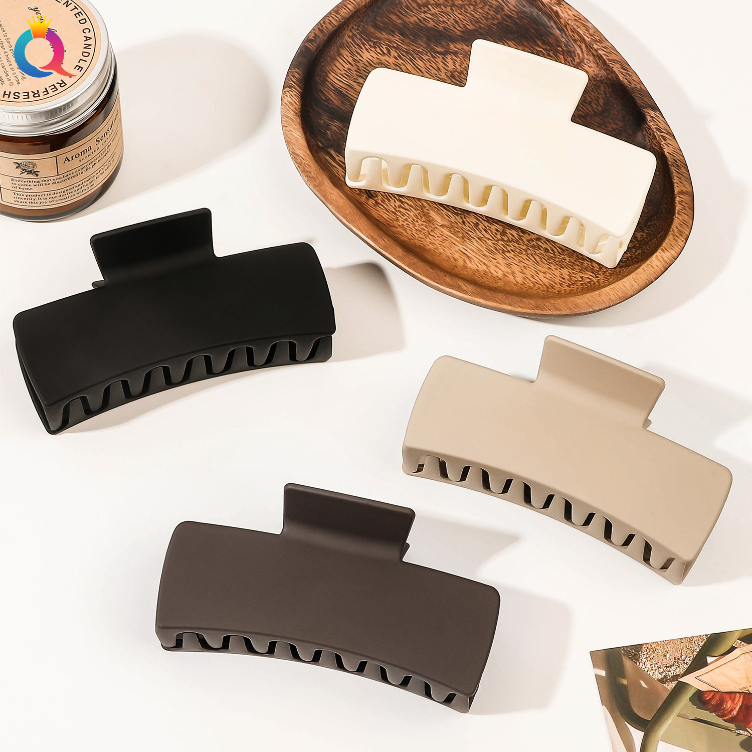 奇阅跨境实心方形发夹纯色磨砂抓夹高级感盘发夹子鲨鱼夹发饰批发