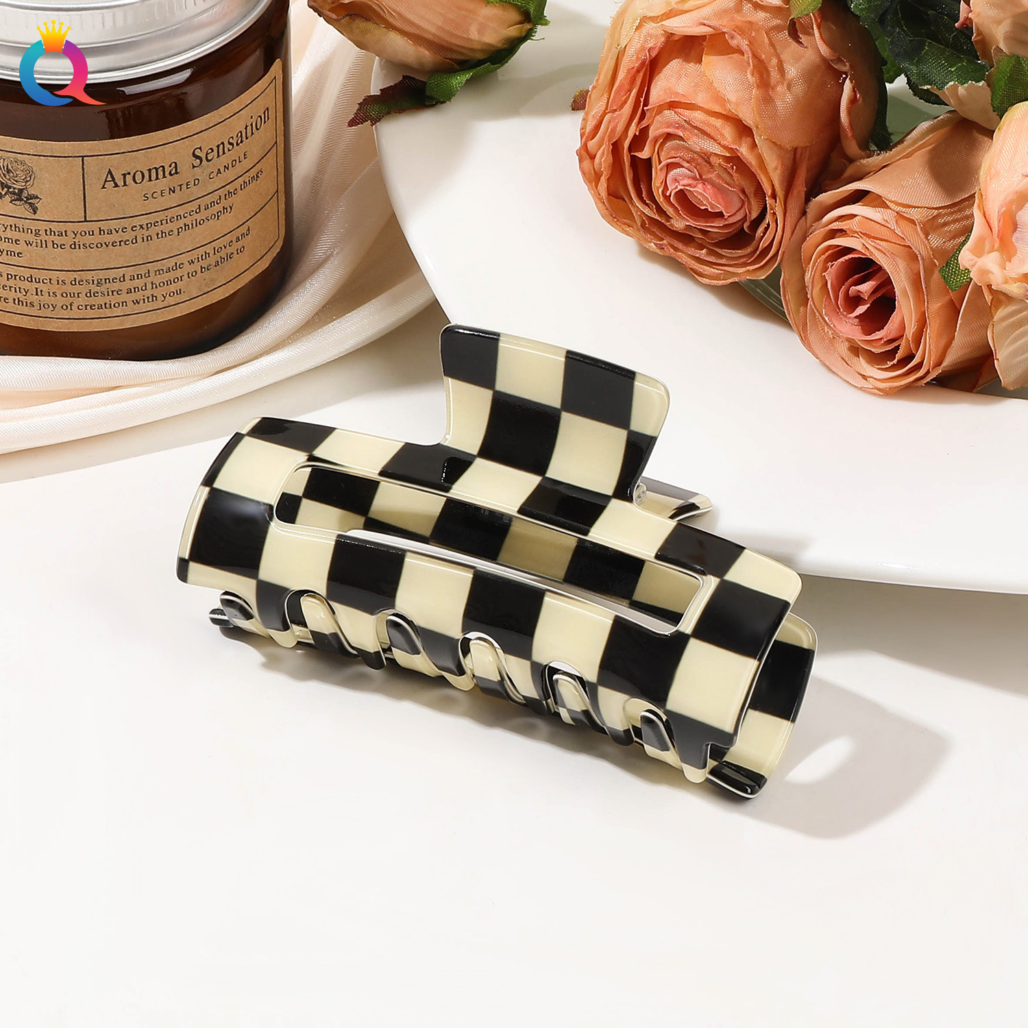 奇阅小号方形发夹PVC拼色格抓夹高级感半扎发鲨鱼夹义乌配饰批发
