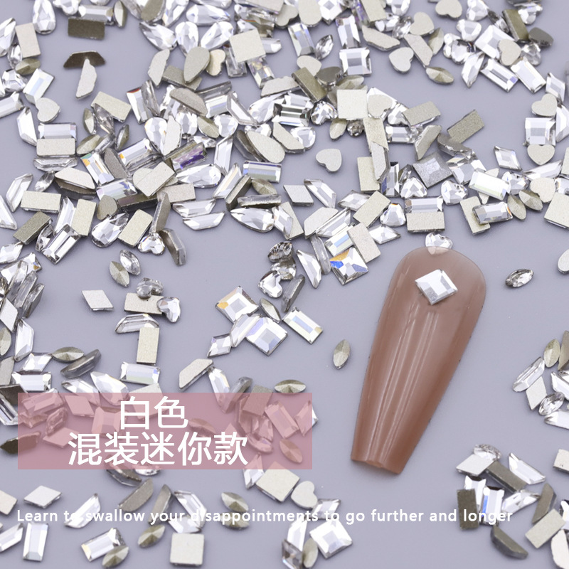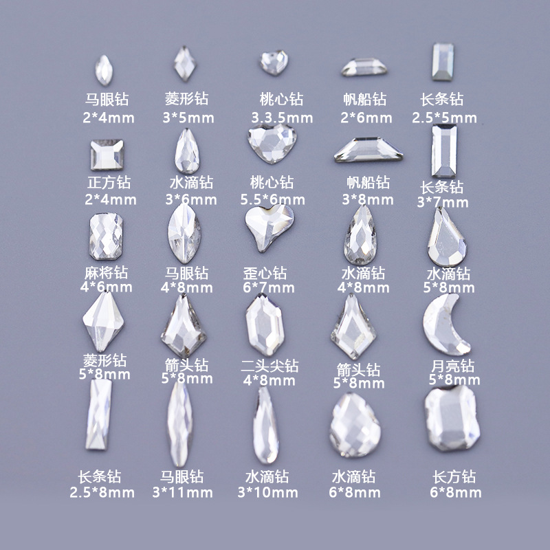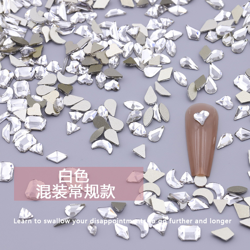 义乌美甲混装透白平底异形钻美甲钻歪心月亮水滴饰品批发跨境热销