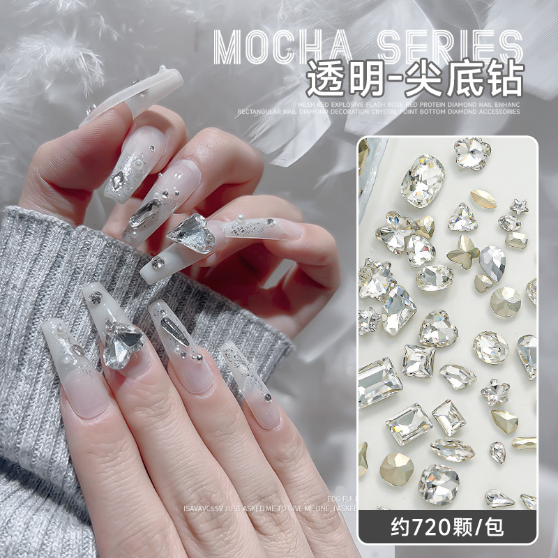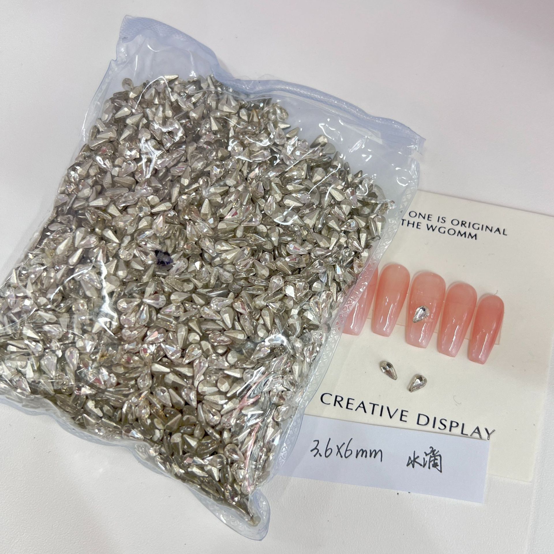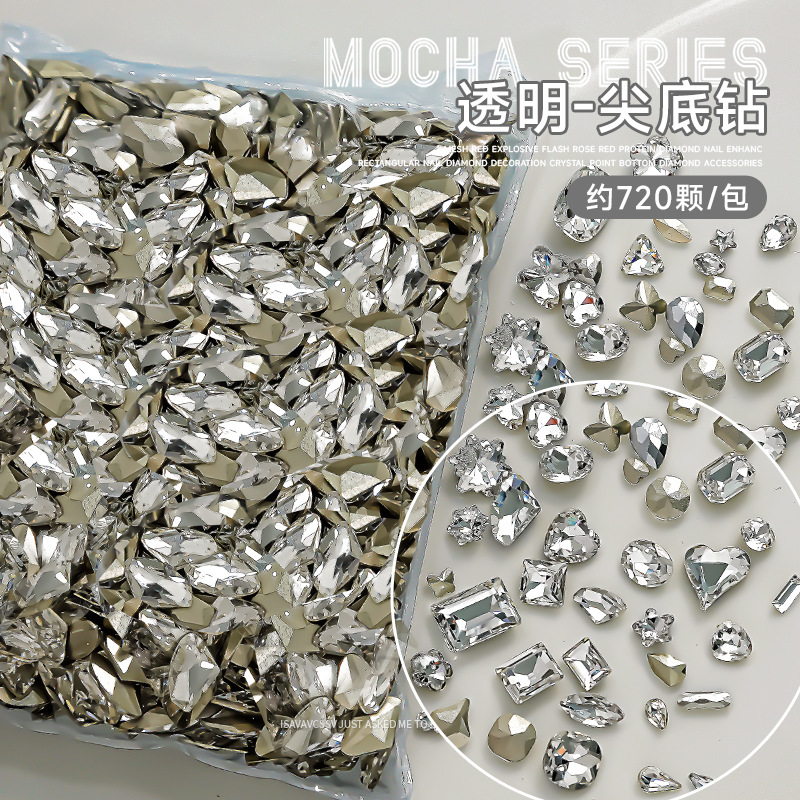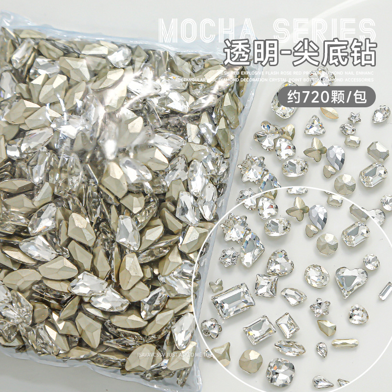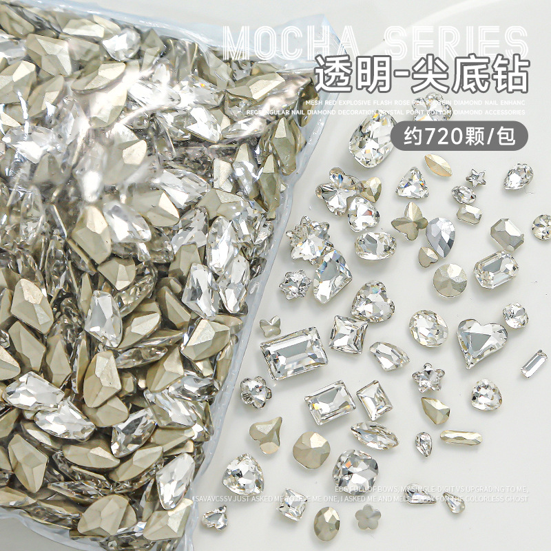 批发整包720颗白色尖底钻大小号水滴爱心正方透明钻跨境美甲饰品