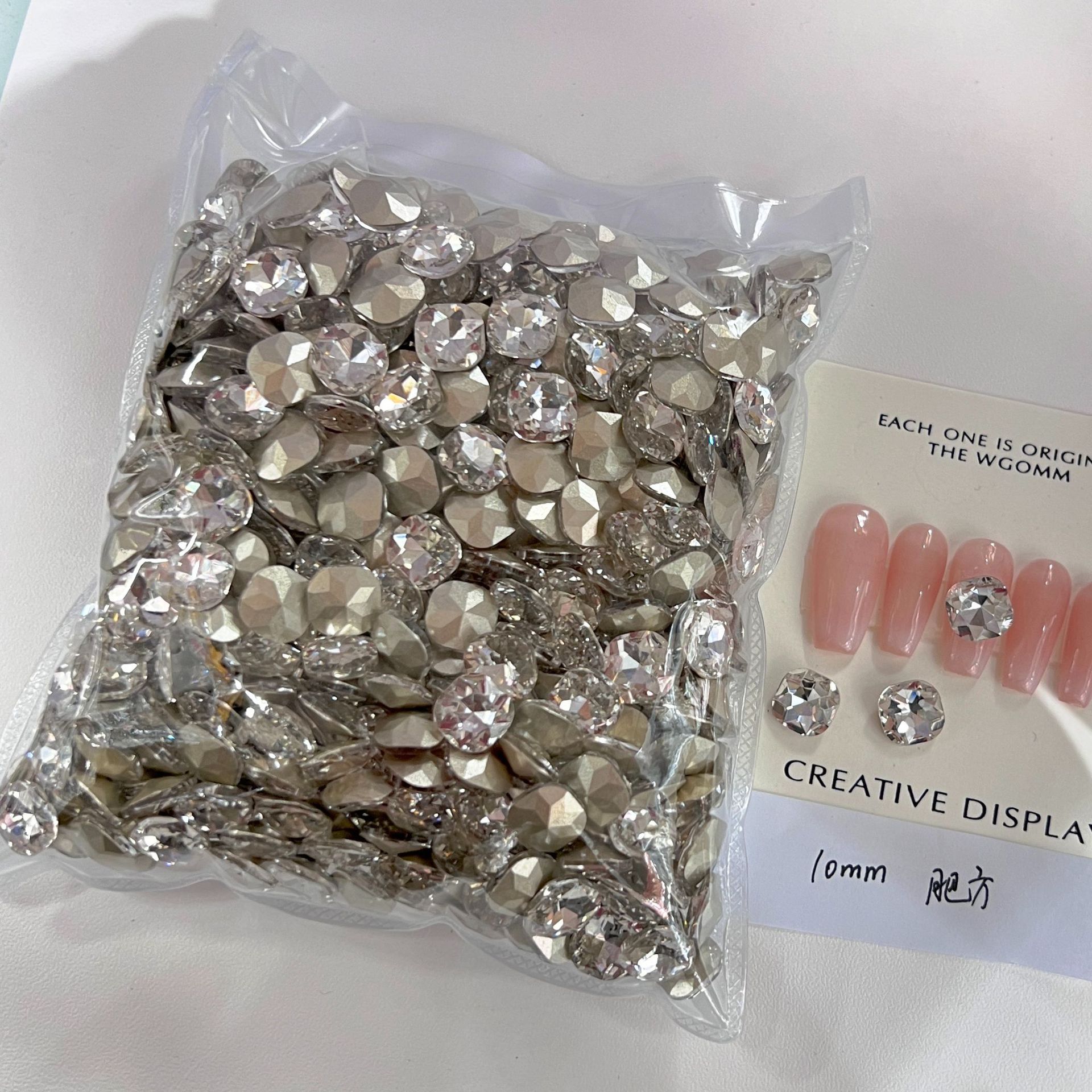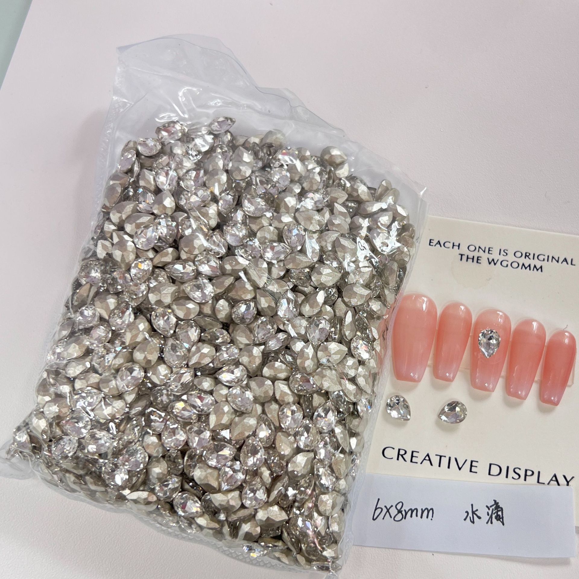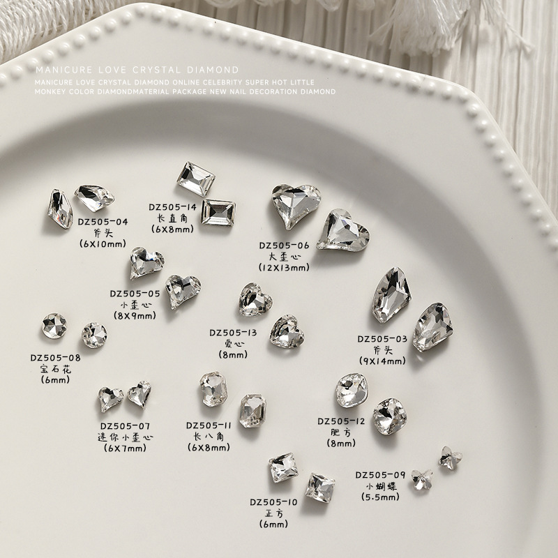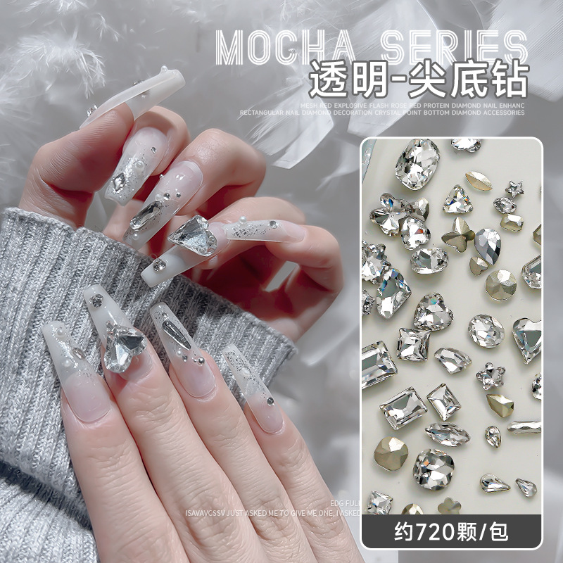 批发整包720颗白色尖底钻大小号水滴爱心正方透明钻跨境美甲饰品