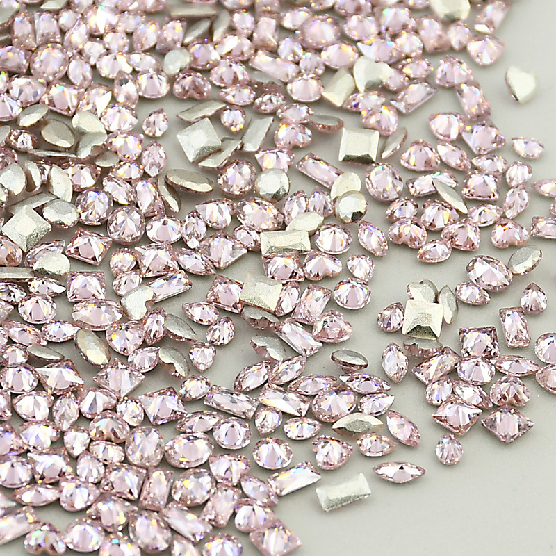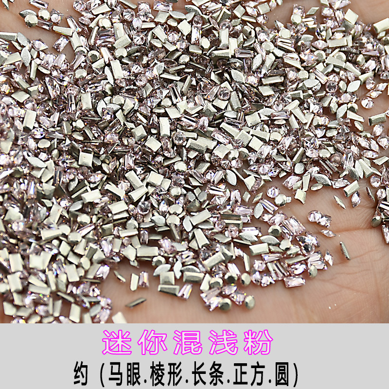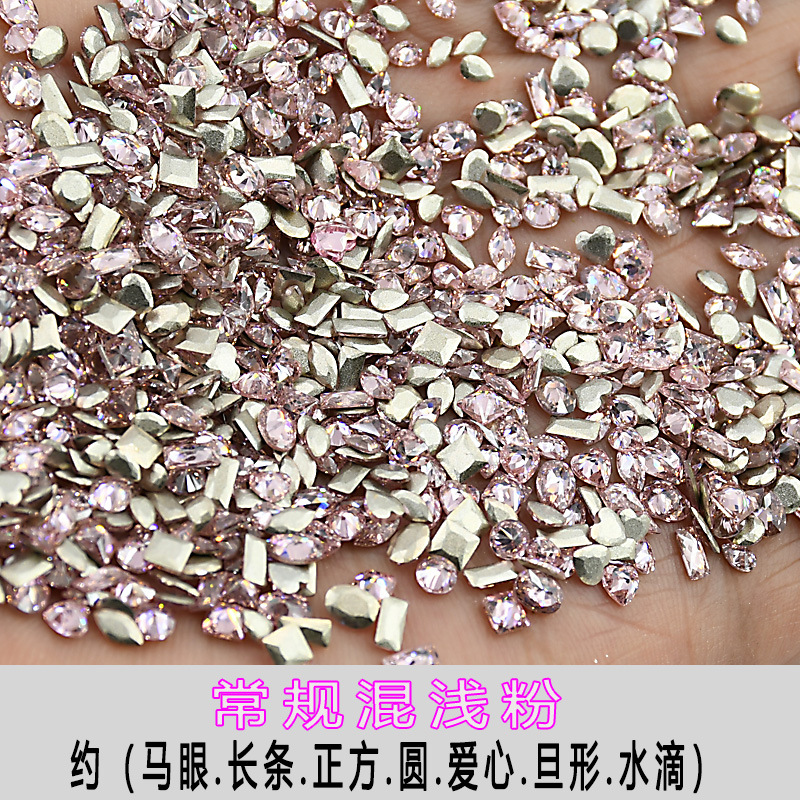 混装浅粉迷你美甲平底锆石倒边异形爆闪马眼指甲钻饰爱心美甲钻