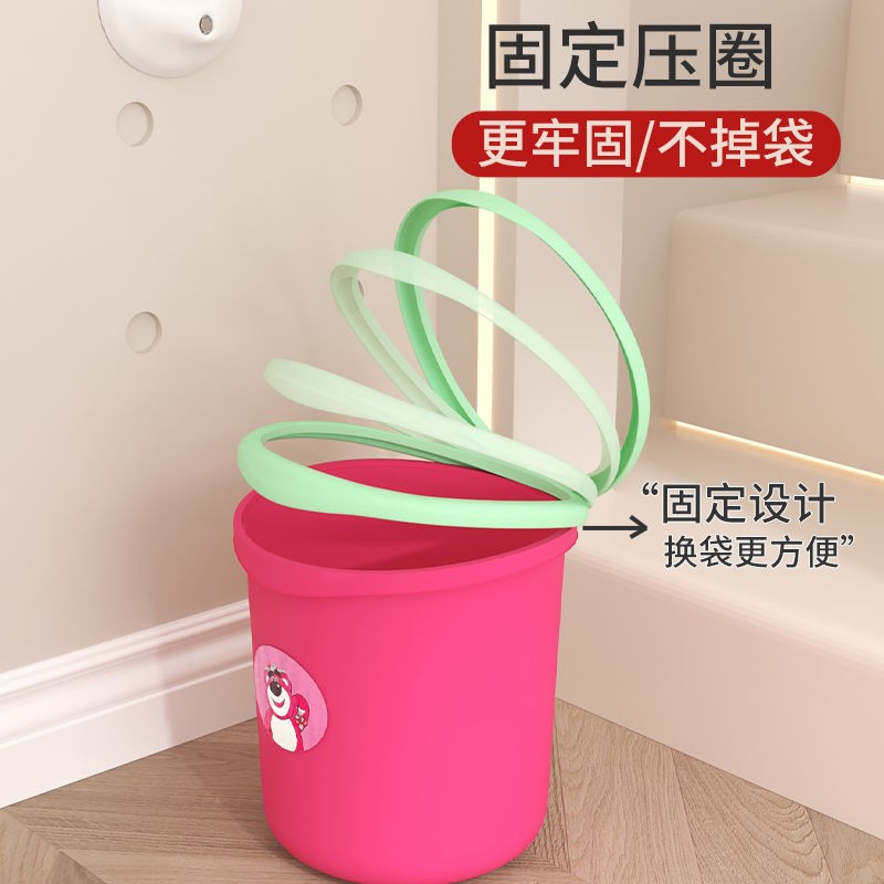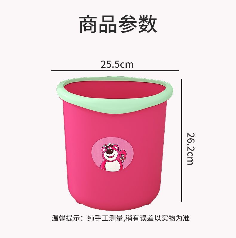 厂家直发 草莓熊垃圾桶大容量家用塑料加厚高颜值卧室圆形卡通