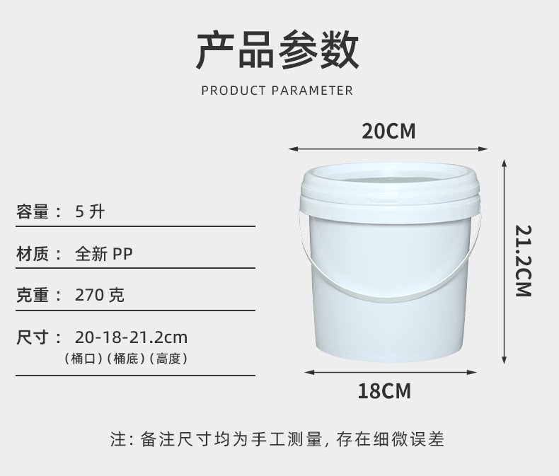 厂家批发5L升塑料桶食品级涂料洗衣粉包装桶加厚带盖白色5kg桶