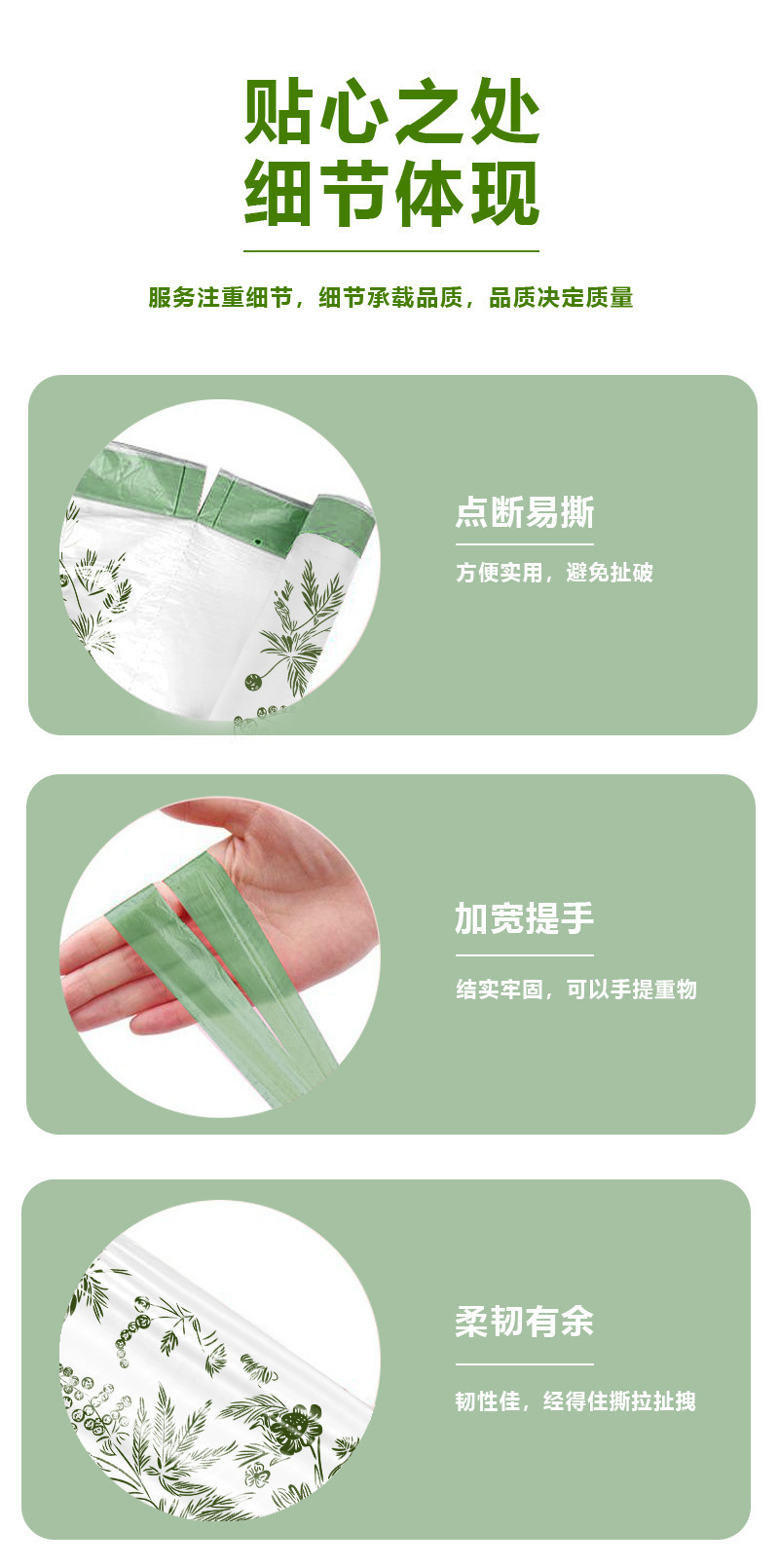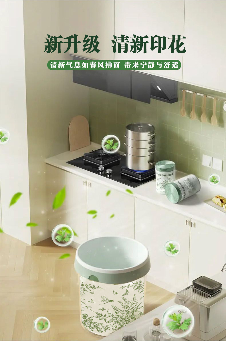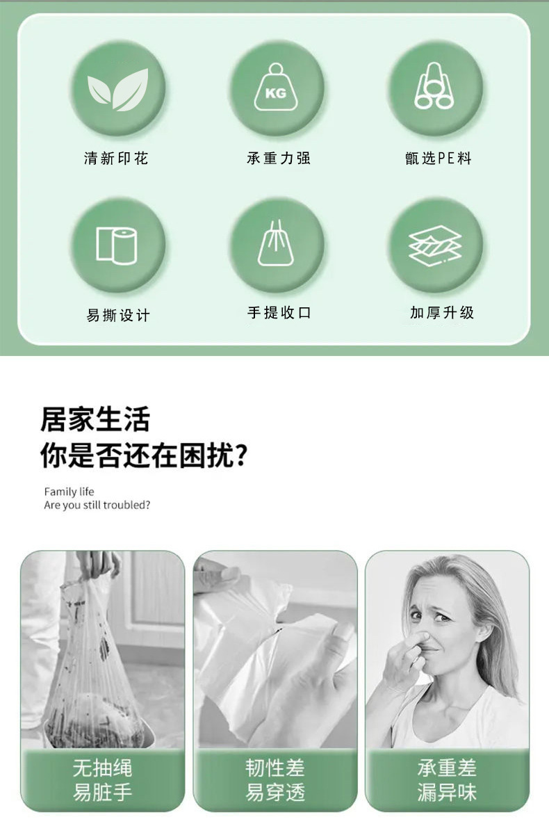 手提式特厚艾草免撕 垃圾袋家用加厚免撕抽绳垃圾袋 厨余厨房专用