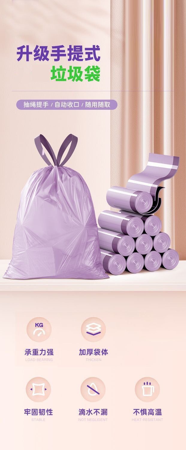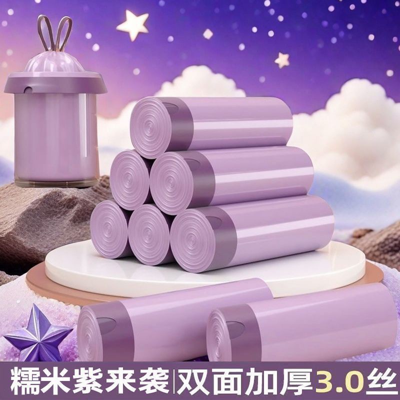 糯米紫垃圾袋手提式加厚大号一次性垃圾袋香薰厨房客厅家用塑料袋