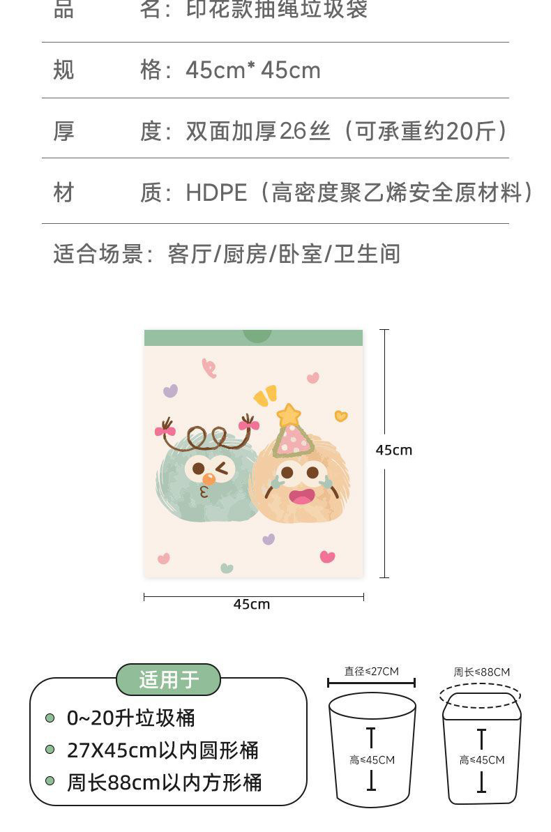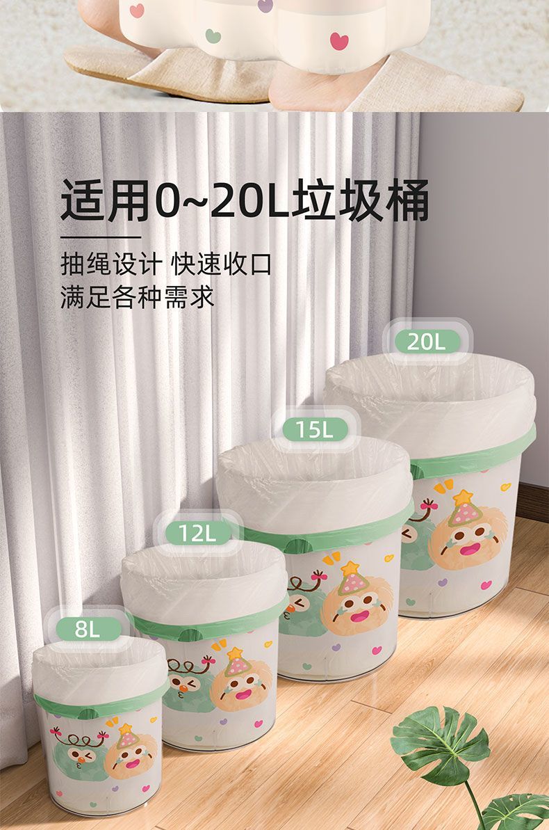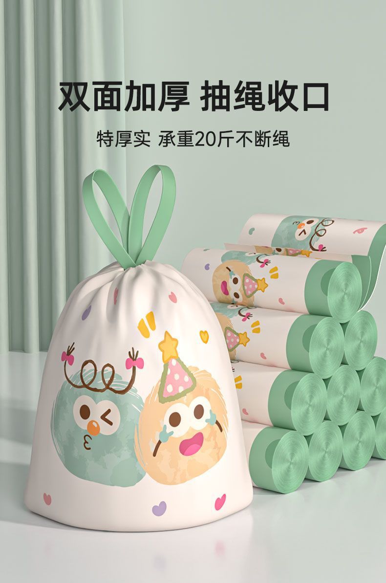印花垃圾袋加厚免撕家用抽绳手提式厨房大号特超厚宿舍卫生间清洁