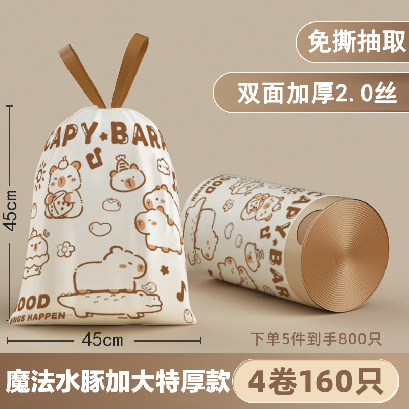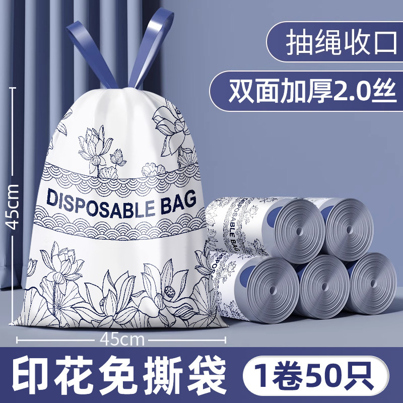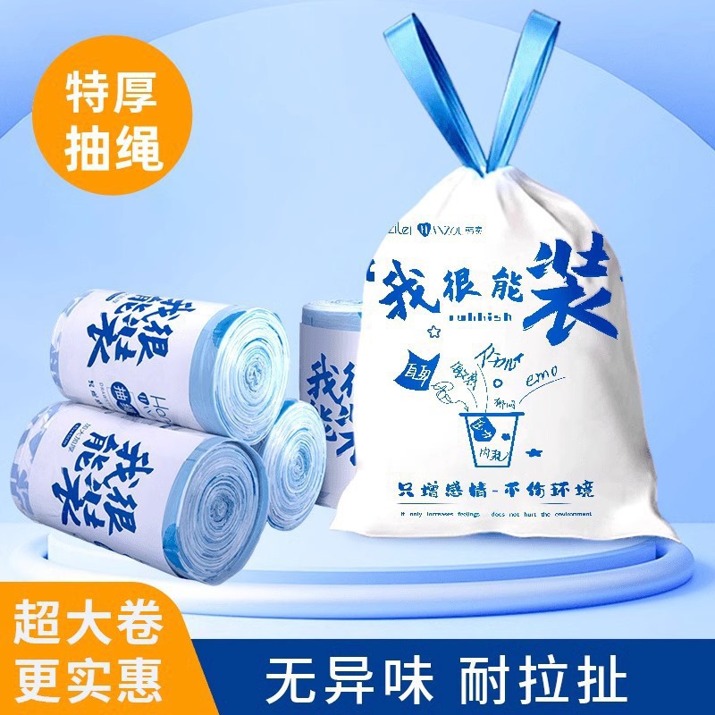 甜甜圈抽绳垃圾袋家用加厚抽绳手提式大号厨房塑料袋薰衣草袋子