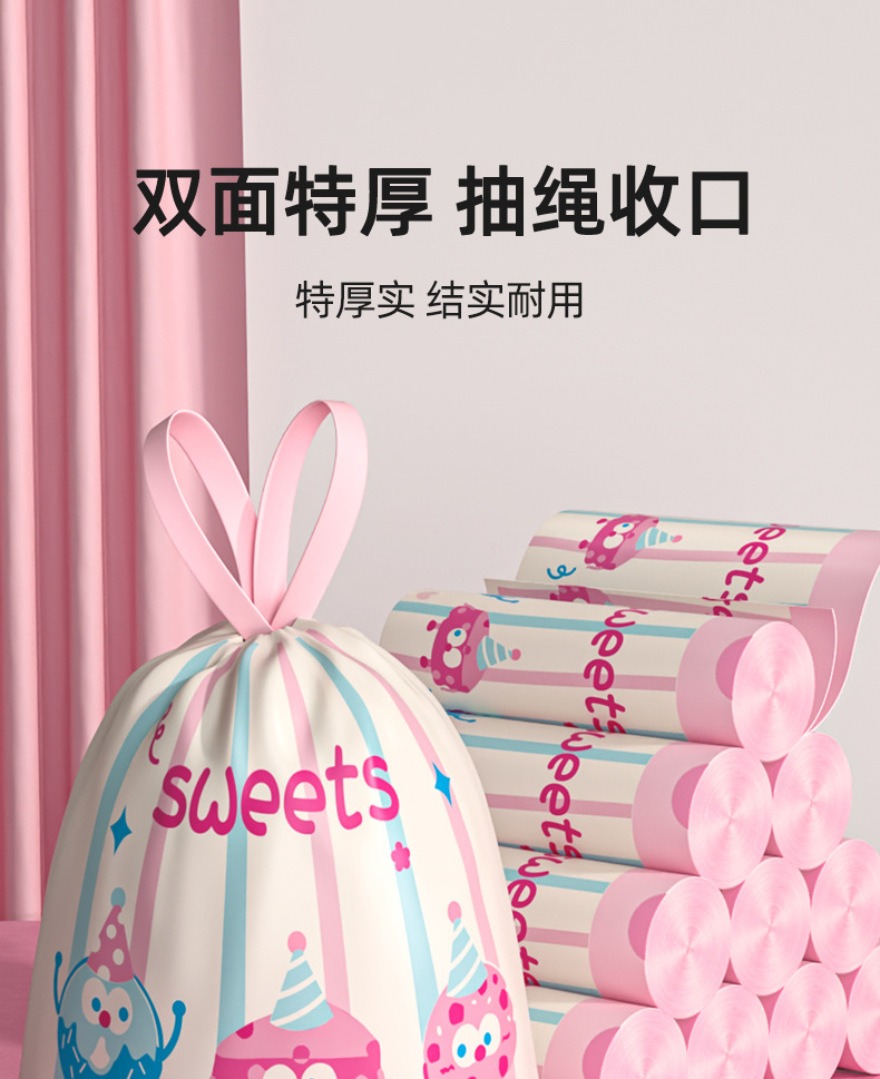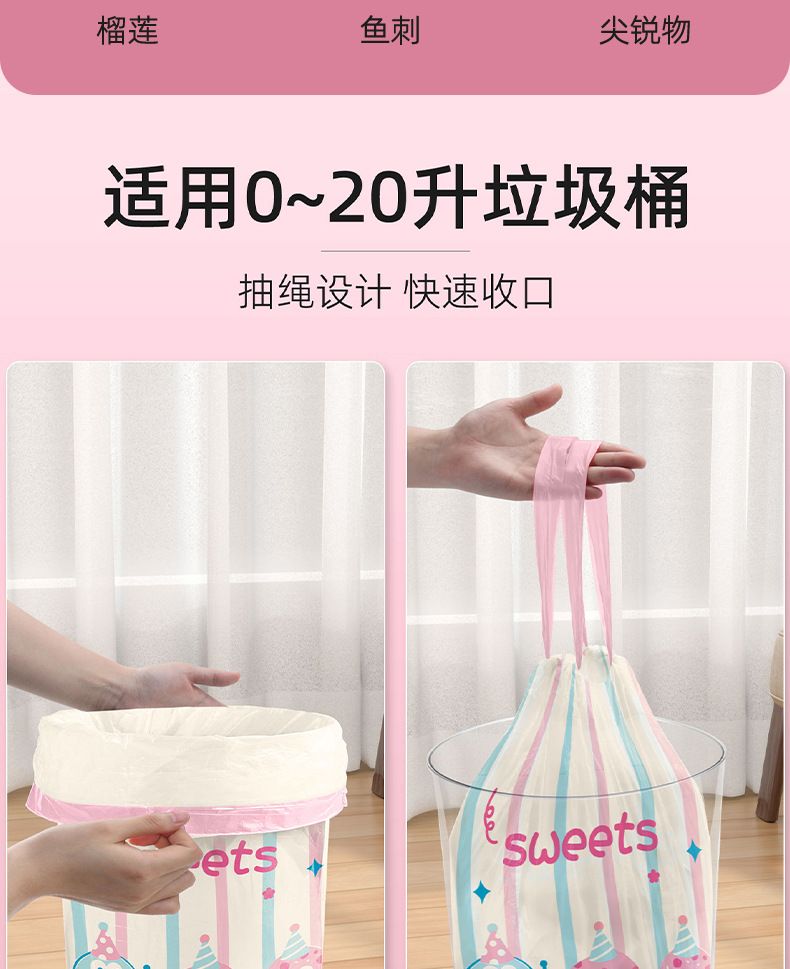 垃圾袋家用加厚手提式抽绳免撕大号厨房专用办公室学生宿舍清洁袋