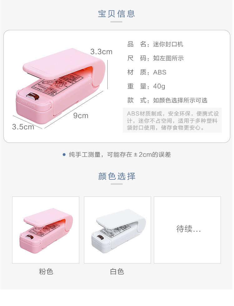 零食封口机小型迷你塑封机家用零食塑料包装袋食品保鲜真空封口机