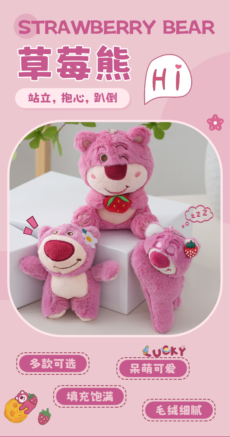 网红玫玫熊可爱玩偶摆件玫玫熊卡通毛绒包包挂件少女抱心熊钥匙扣