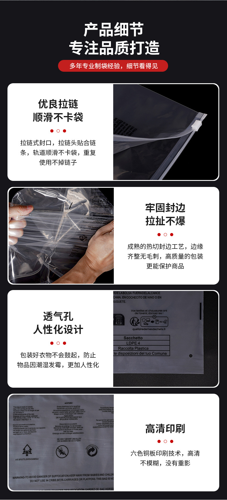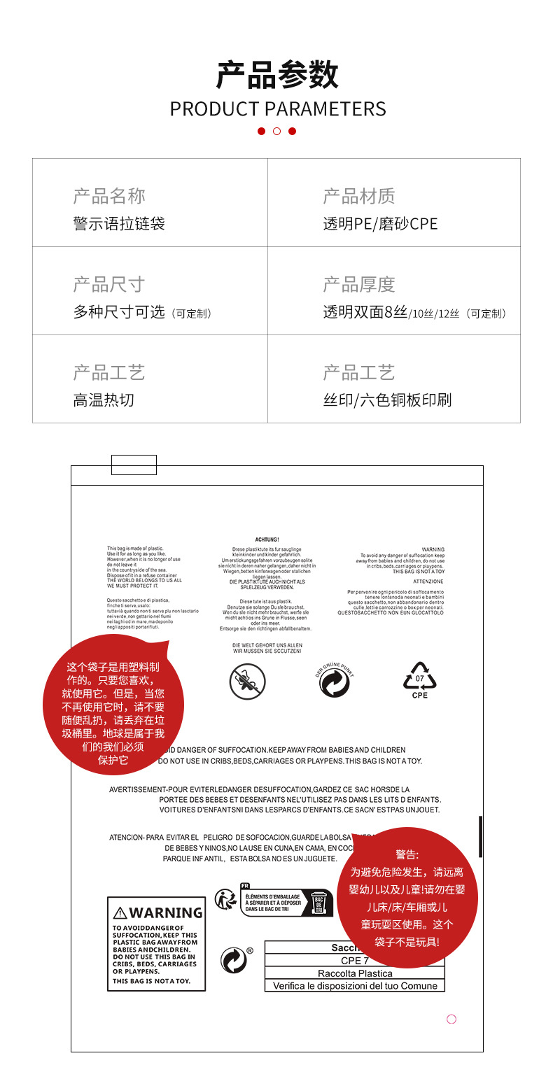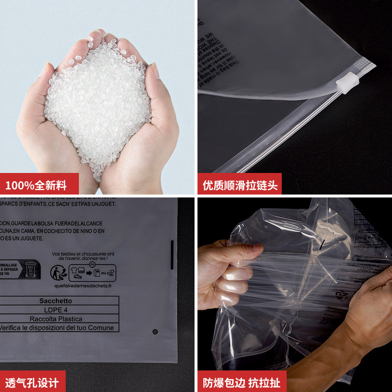 透明警示语拉链袋现货跨境外贸通用衣服内衣内裤收纳袋服装包装袋