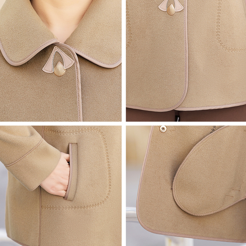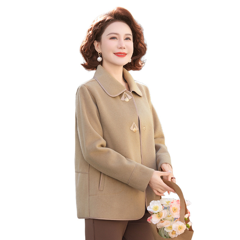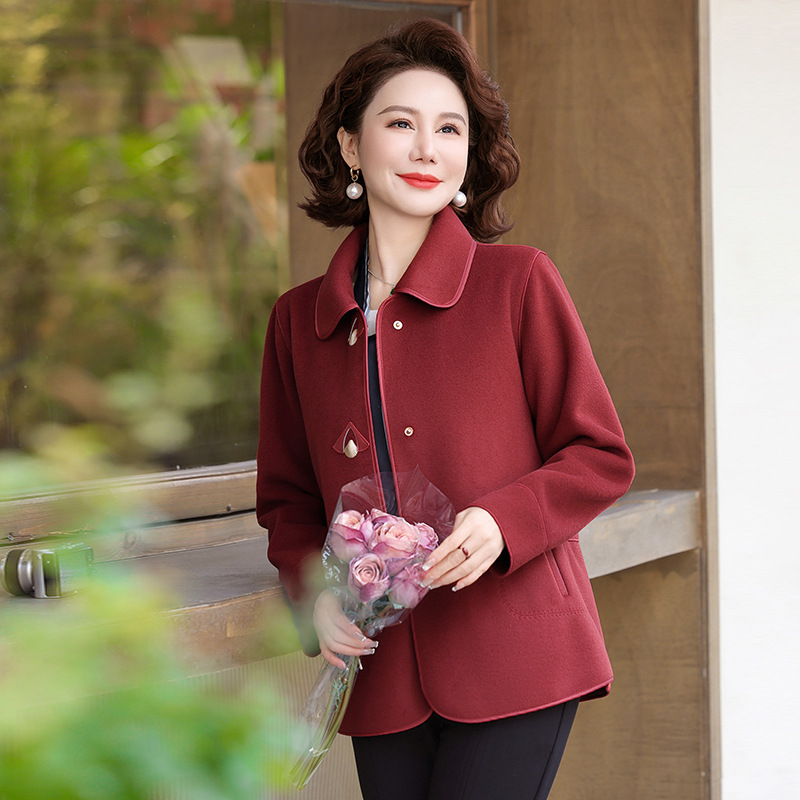 妈妈秋装双面呢大衣贵夫人短款上衣中老年女秋冬季气质翻领呢外套