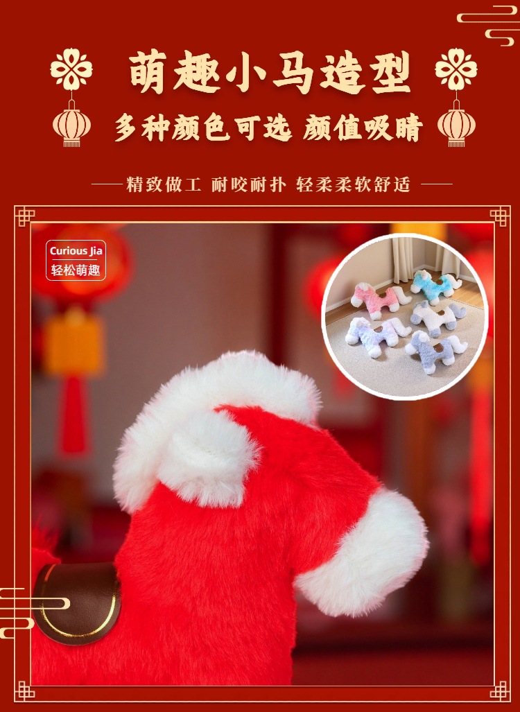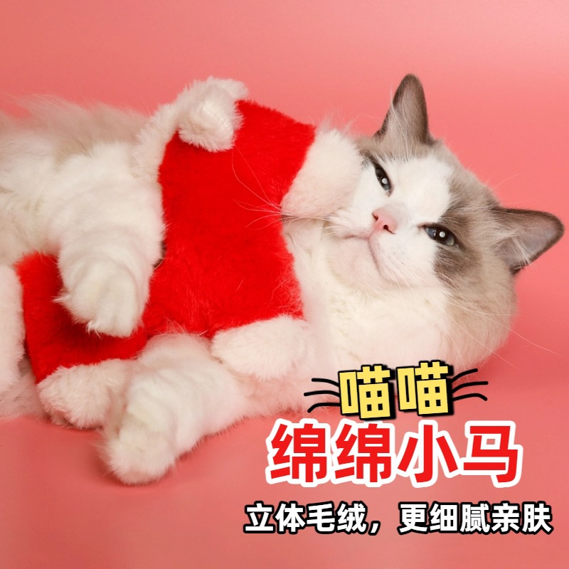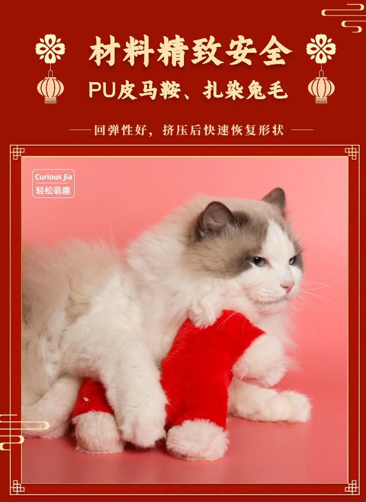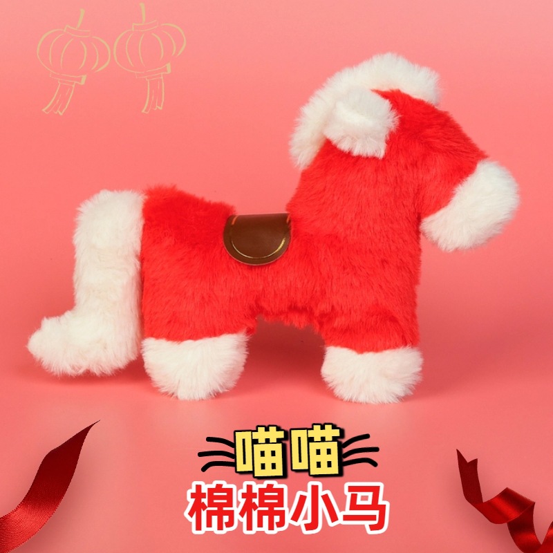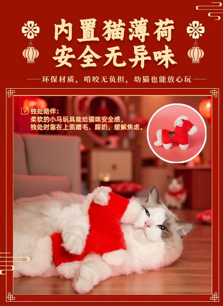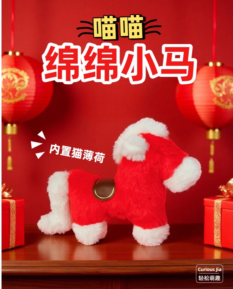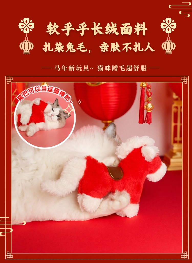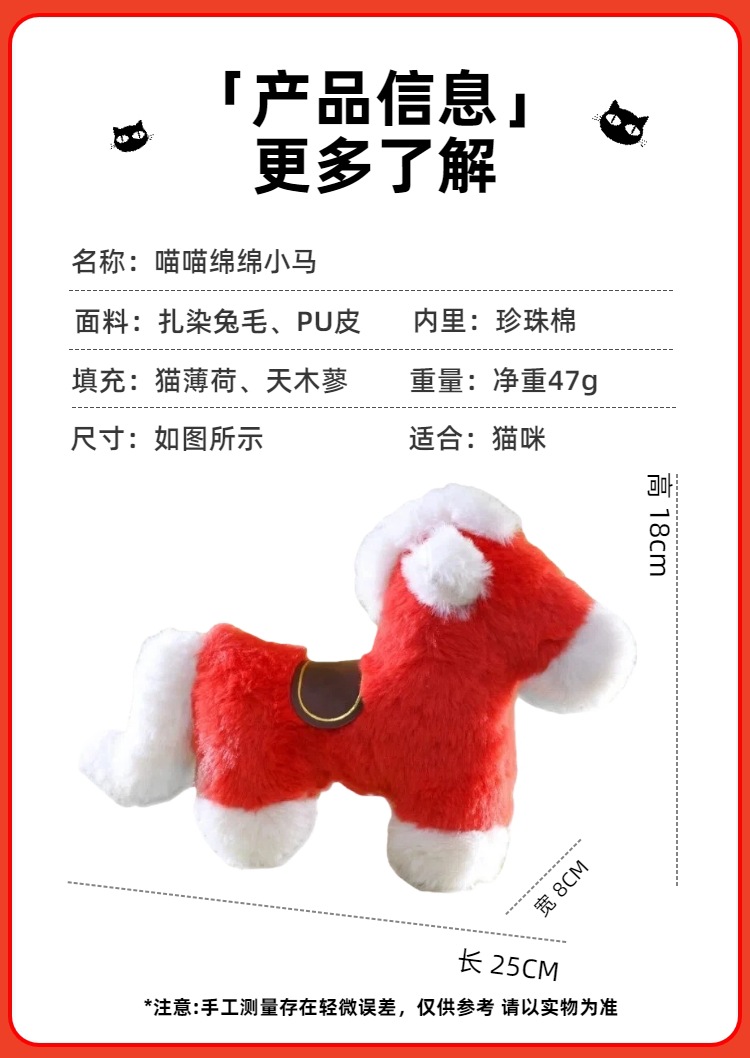 新品新年马年猫咪毛绒扎染渐变小马抱枕玩具啃咬逗猫棒磨牙猫薄荷