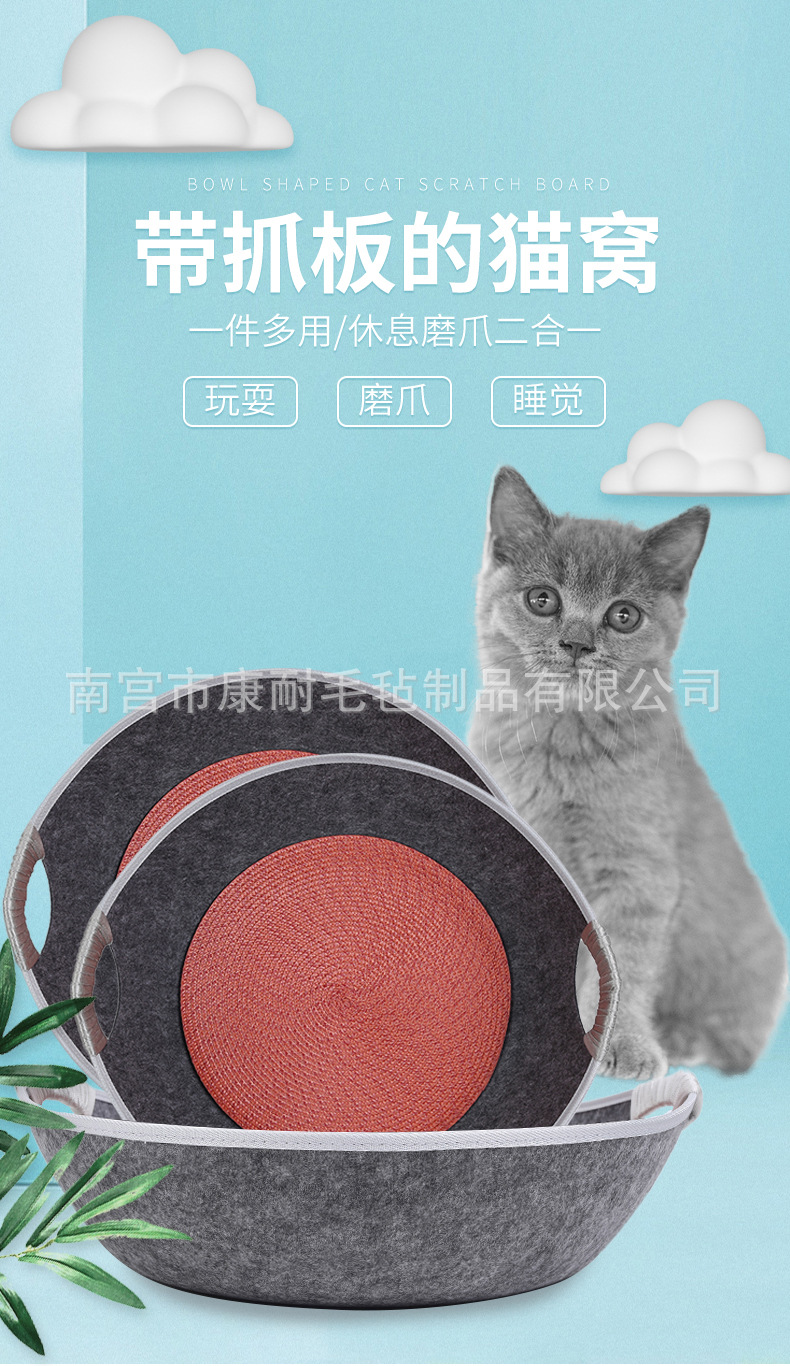 批发毛毡无盖猫窝 猫抓板猫窝一体 耐磨四季通用宠物窝猫咪